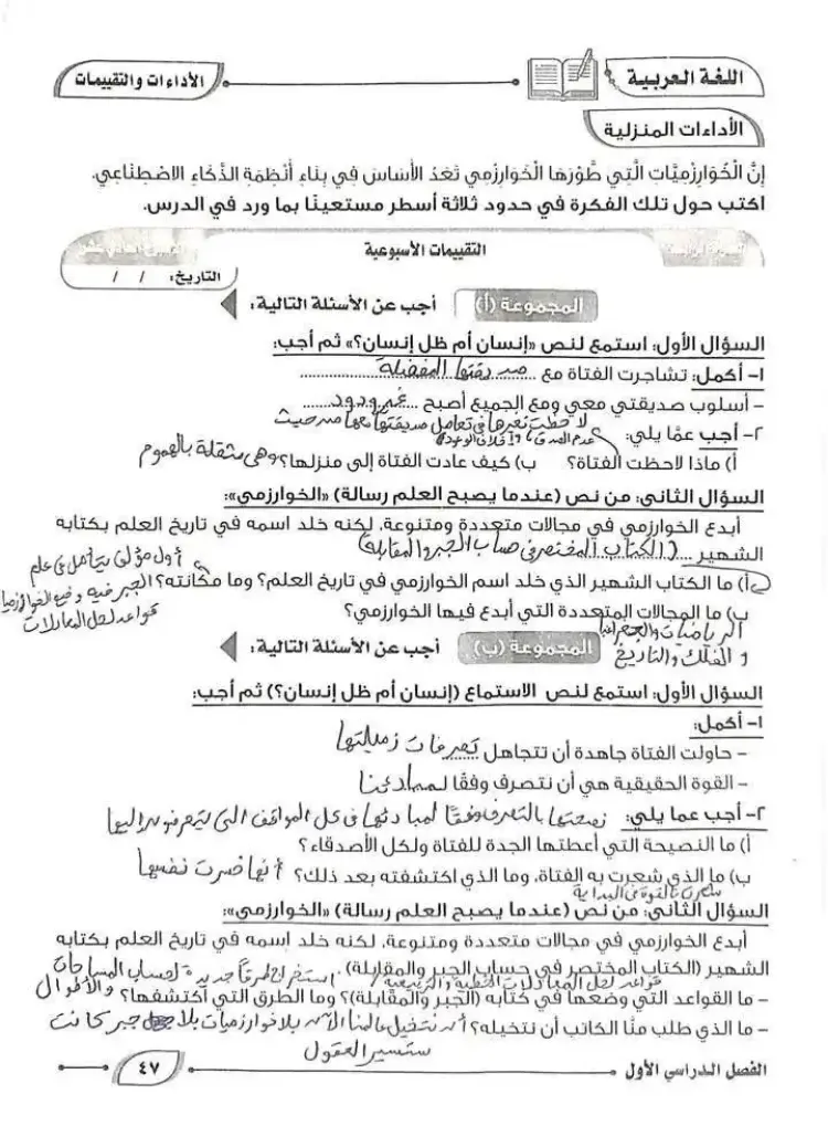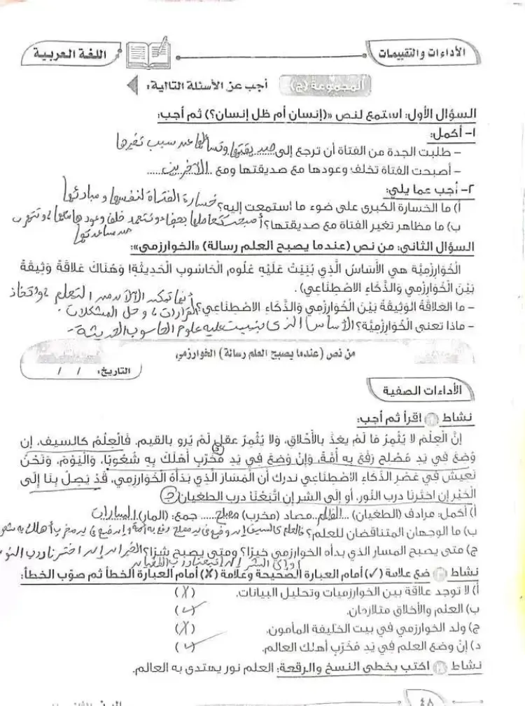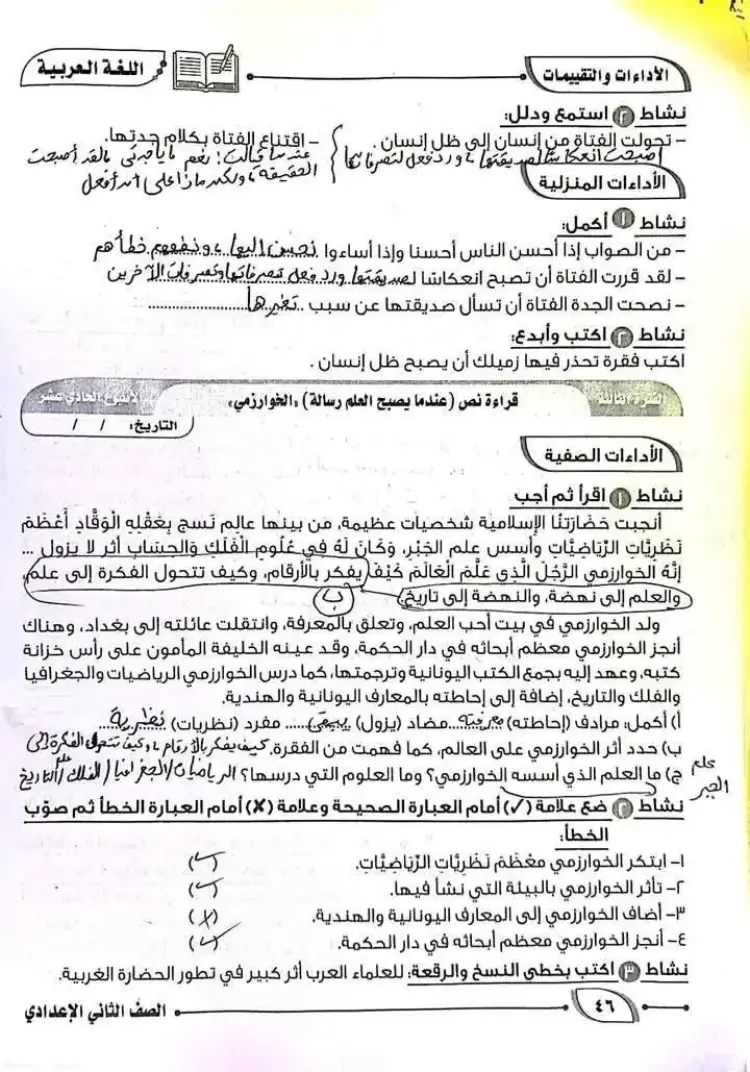 ولمتابعة باقي حل الأداء الصفي وواجب وتقييم الأسبوع الحادي عشر عربي للصف الثاني الإعدادي ترم أول 2026 يستطيع الطلاب الرجوع إلى الصور المرفقة التي تشمل جميع الإجابات الواردة داخل الملف وهي كالتالي:
