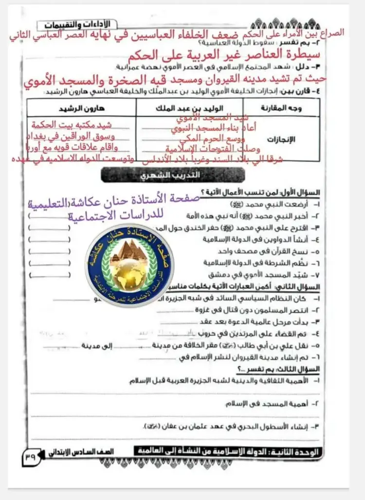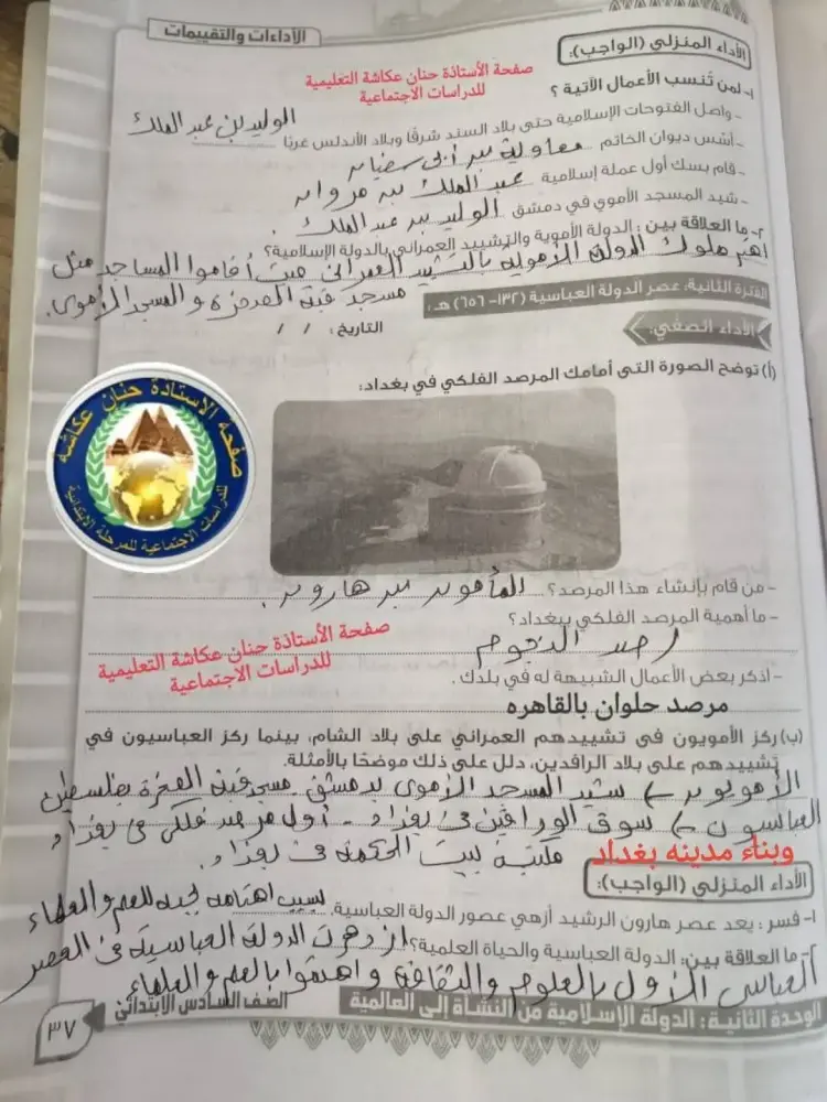 لمتابعة حل الأداء الصفي وواجب وتقييم الأسبوع الحادي عشر دراسات للصف السادس الابتدائي ترم أول 2026 يمكنك الإطلاع على الأسئلة والإجابات من خلال الصور التالية: