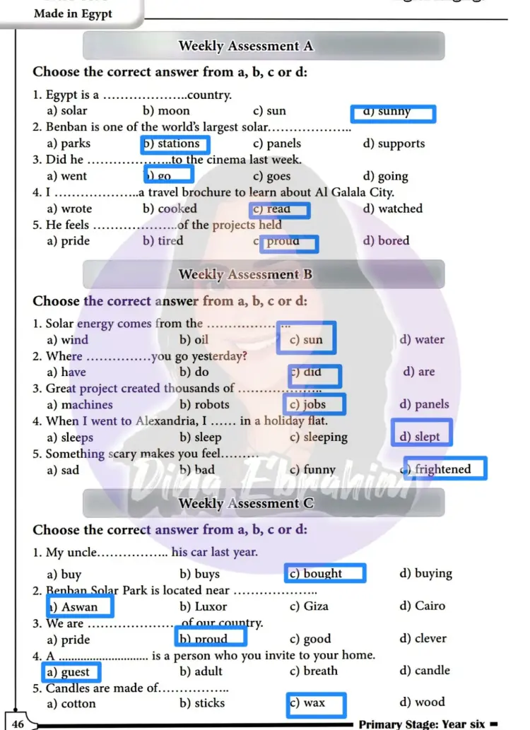حل تقييمات الوحدة الخامسة انجليزي للصف السادس الابتدائي ترم أول 2026