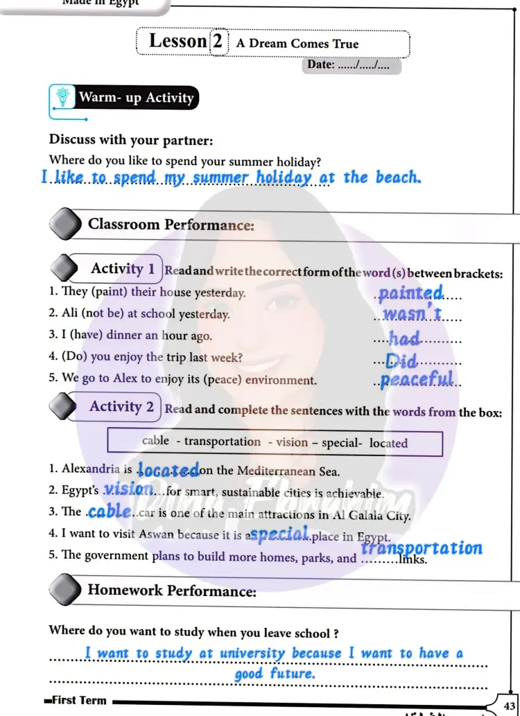 حل الأداء الصفي الوحدة الخامسة إنجليزي سادسة ابتدائ ترم أول 2026