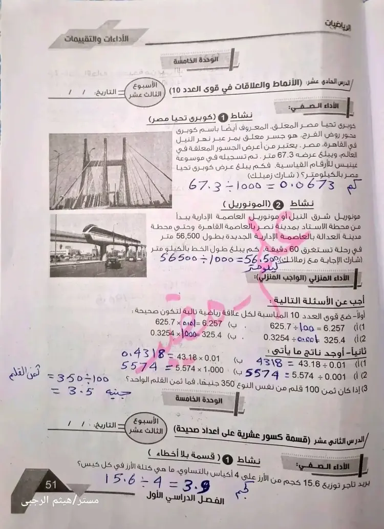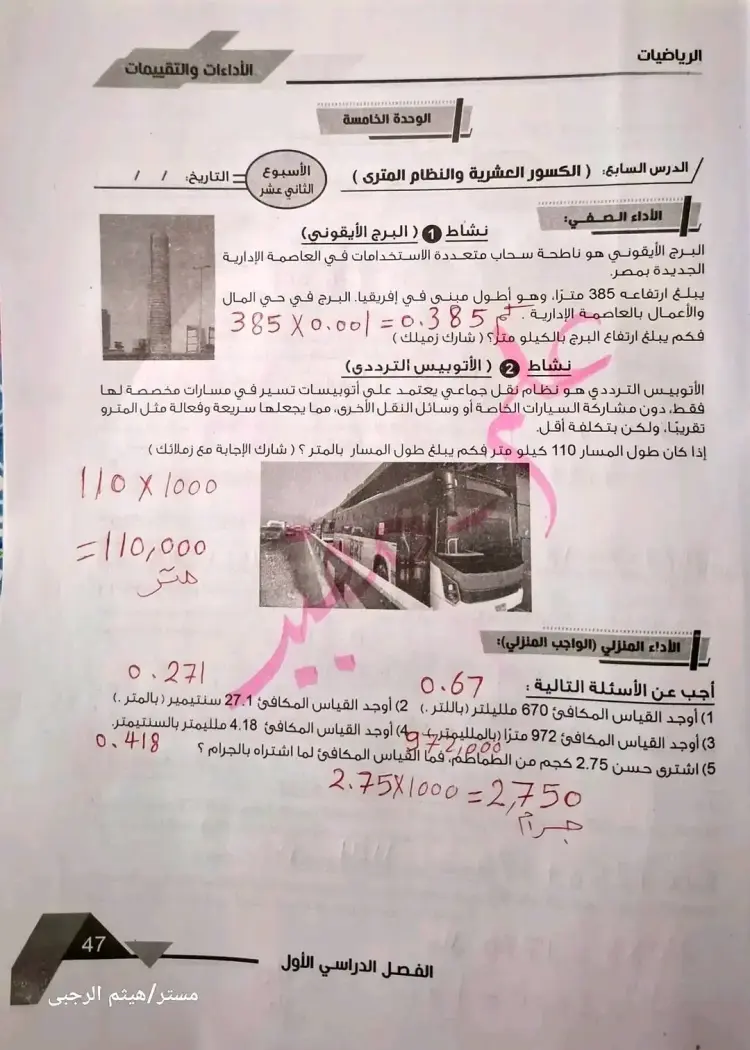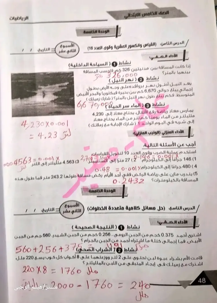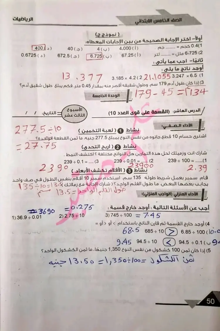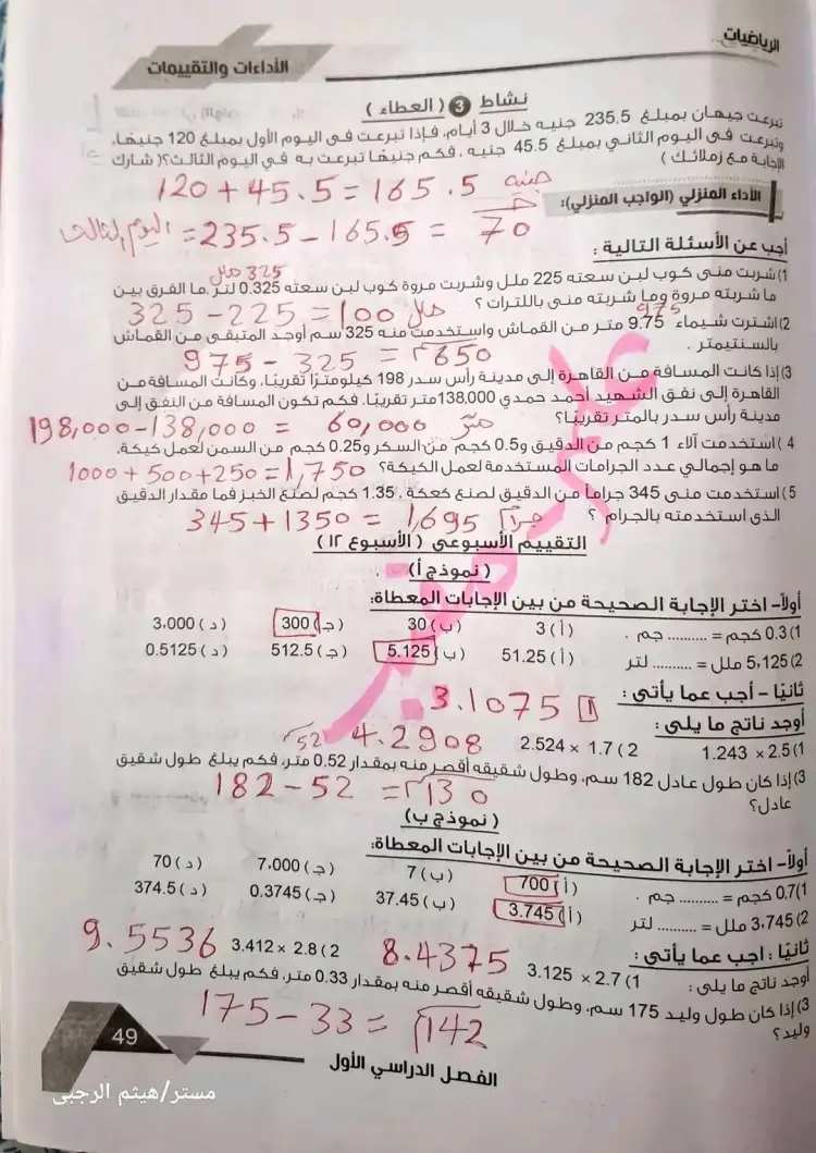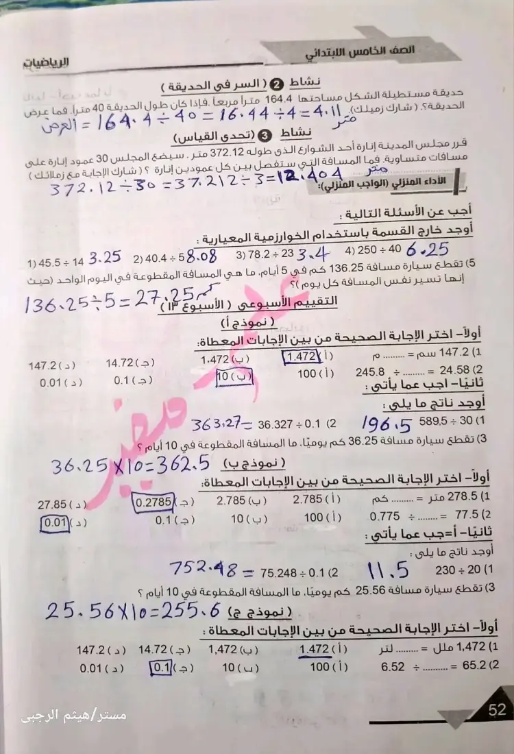 لمتابعة باقي حل الأداء الصفي وواجب وتقييم الأسبوع الثاني عشر رياضيات للصف الخامس الابتدائي ترم أول 2026 يمكن الإطلاع على الصور التالية: