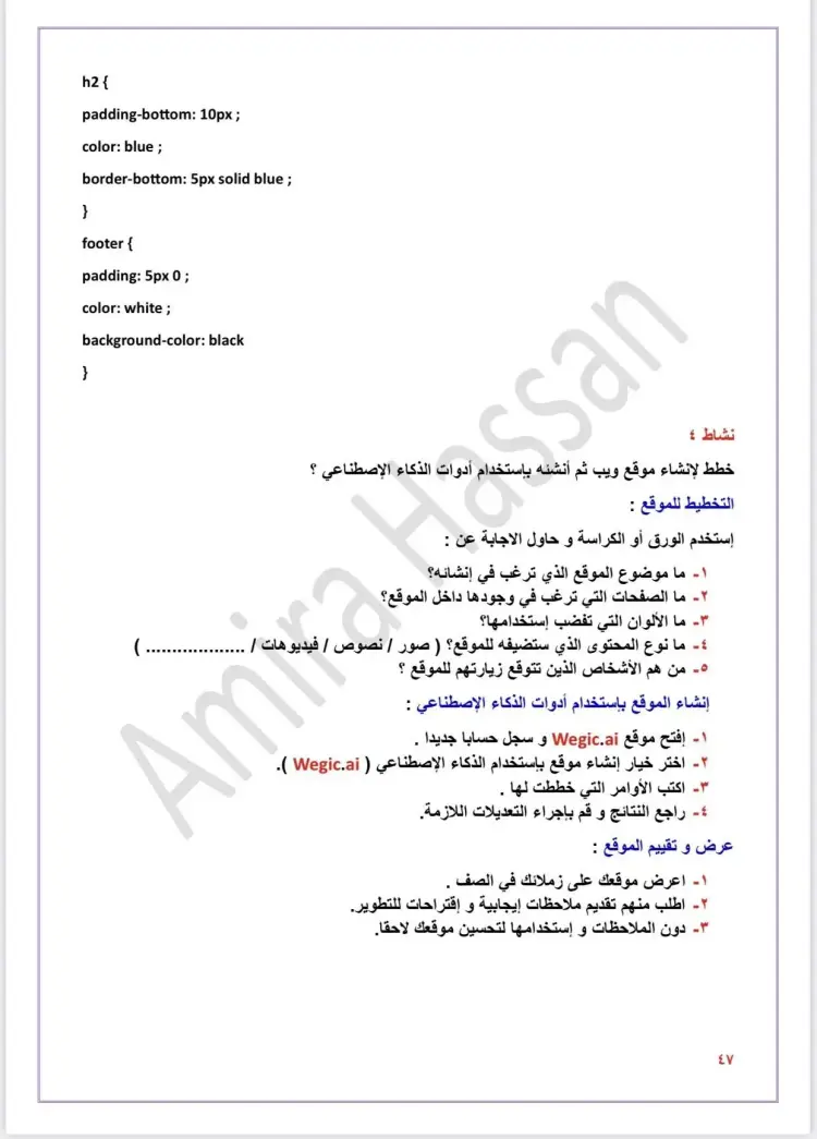 نشاط ٤: خطط لإنشاء موقع ويب ثم أنشئه بإستخدام أدوات الذكاء الإصطناعي؟