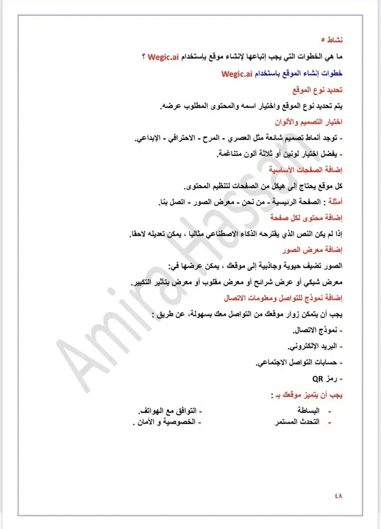 نشاط ٥: ما هي الخطوات التي يجب إتباعها لإنشاء موقع ويب باستخدام Wegic.ai ؟