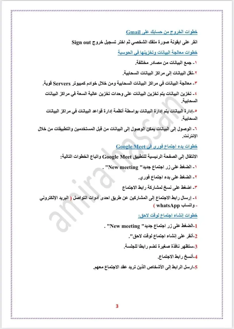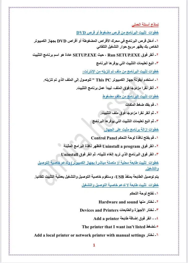 جاءت الأسئلة التي وردت بملزمة عملي تكنولوجيا المعلومات على النحو التالي: