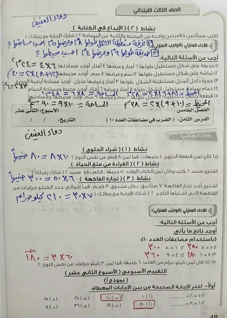 لمتابعة باقي أسئلة وحل الأداء الصفي وواجب وتقييم الأسبوع الثاني عشر رياضيات للصف الثالث الابتدائي ترم أول 2026 يمكن للطلاب تحميل والإطلاع على الصور التالية: