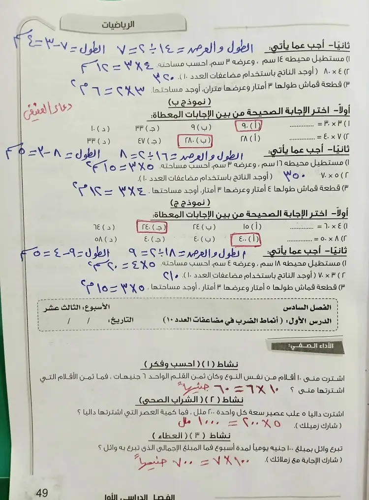 يحتوي حل الأداء الصفي رياضيات ثالثة ابتدائي الأسبوع الثاني عشر ترم أول 2026 على مختلف أنواع الأسئلة والتي أجاب عنها المدرسون، ومن بينها كان الآتي: