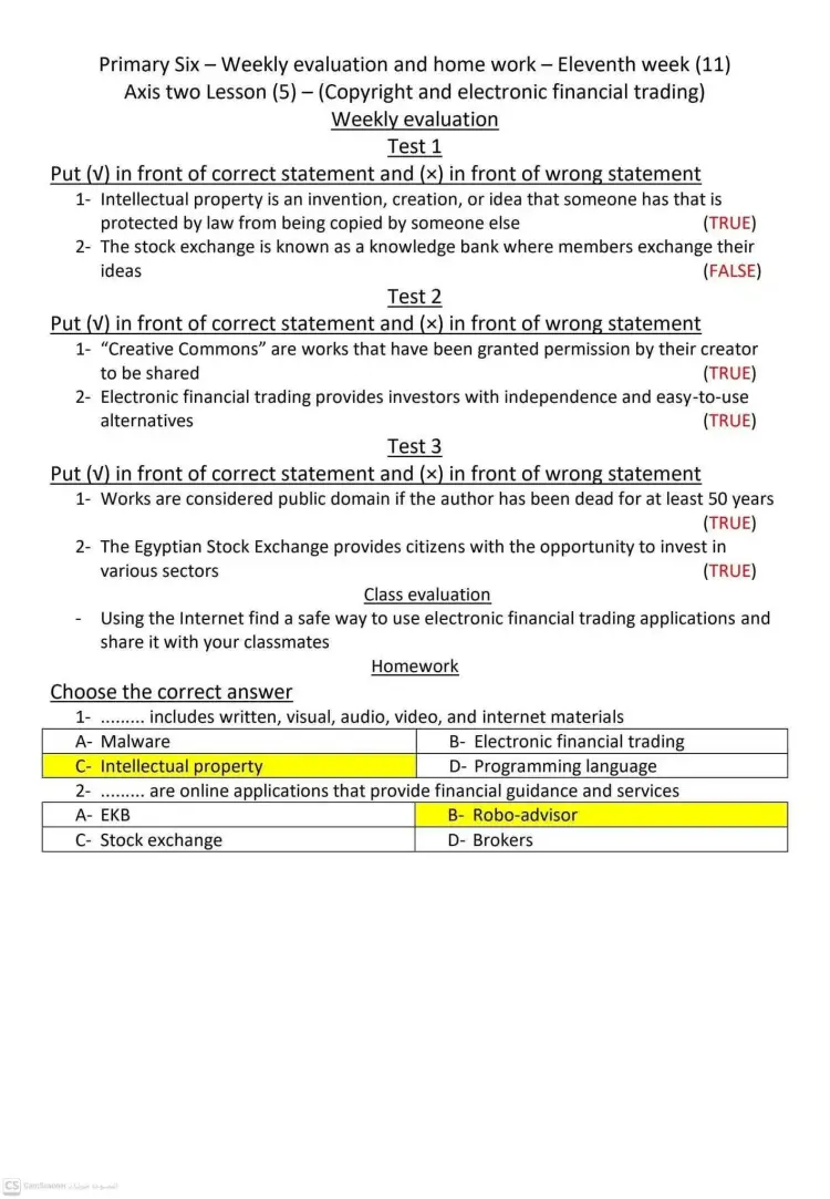 يتكون حل التقييم الأسبوعي ict سادسة ابتدائي الأسبوع الثاني عشر ترم أول 2026 من الأسئلة والتي أجاب عنها المدرسون، ومن بينها كان الآتي: