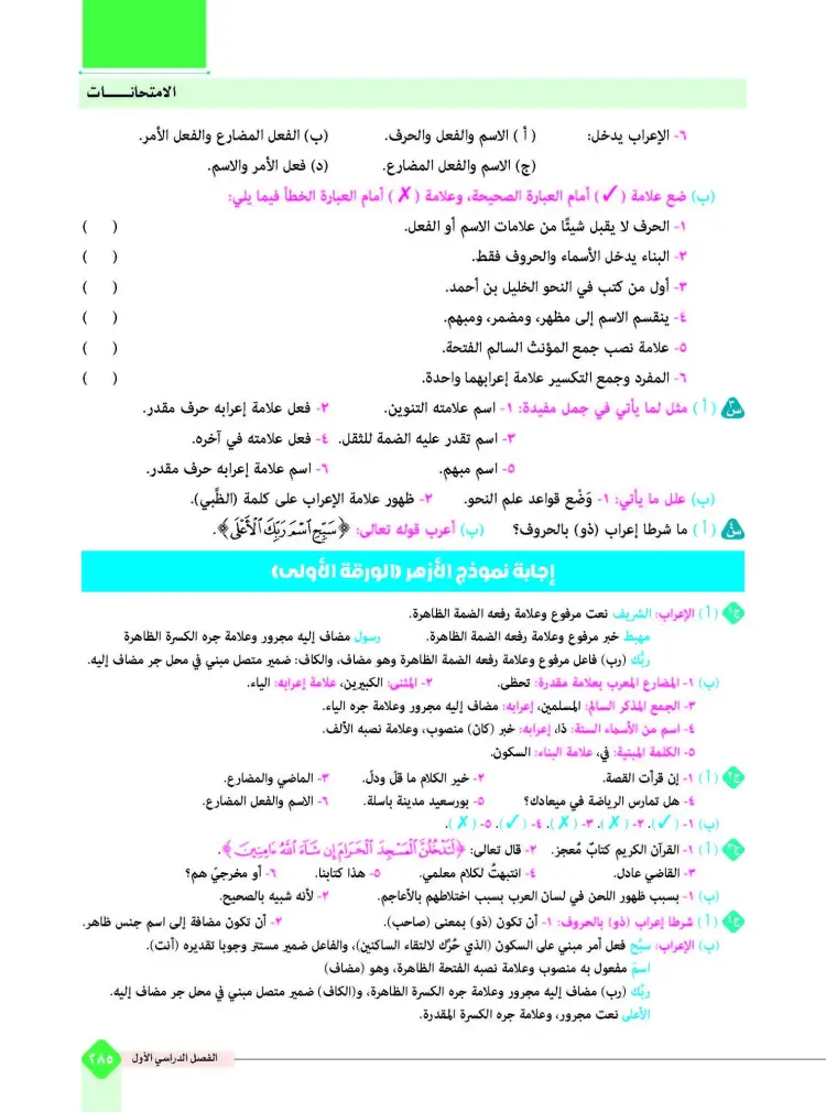 السؤال الأول (أ): أعرب ما فوق الخط في الفقرة السابقة.