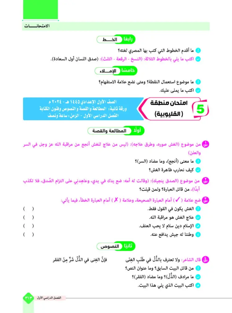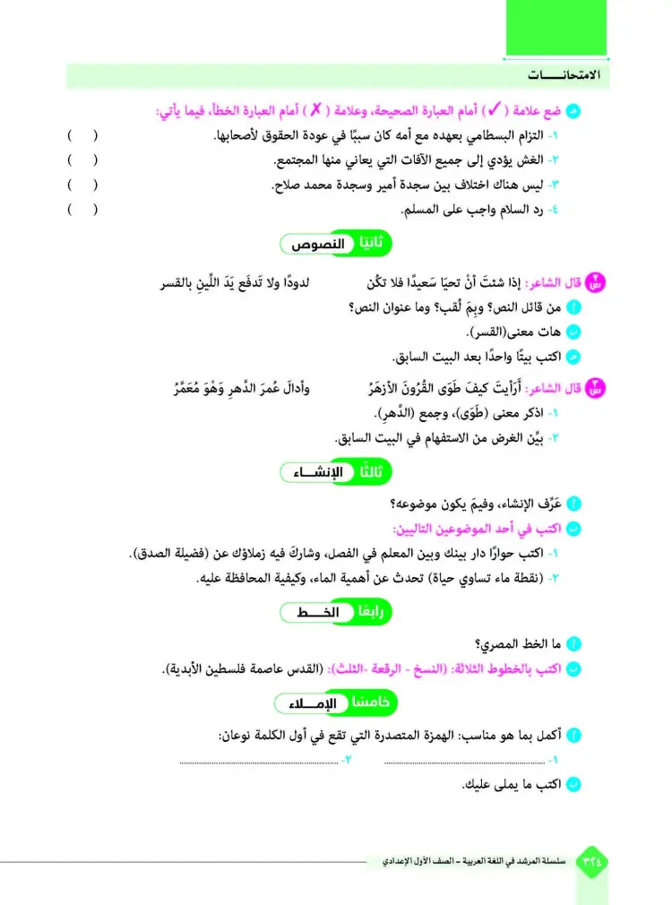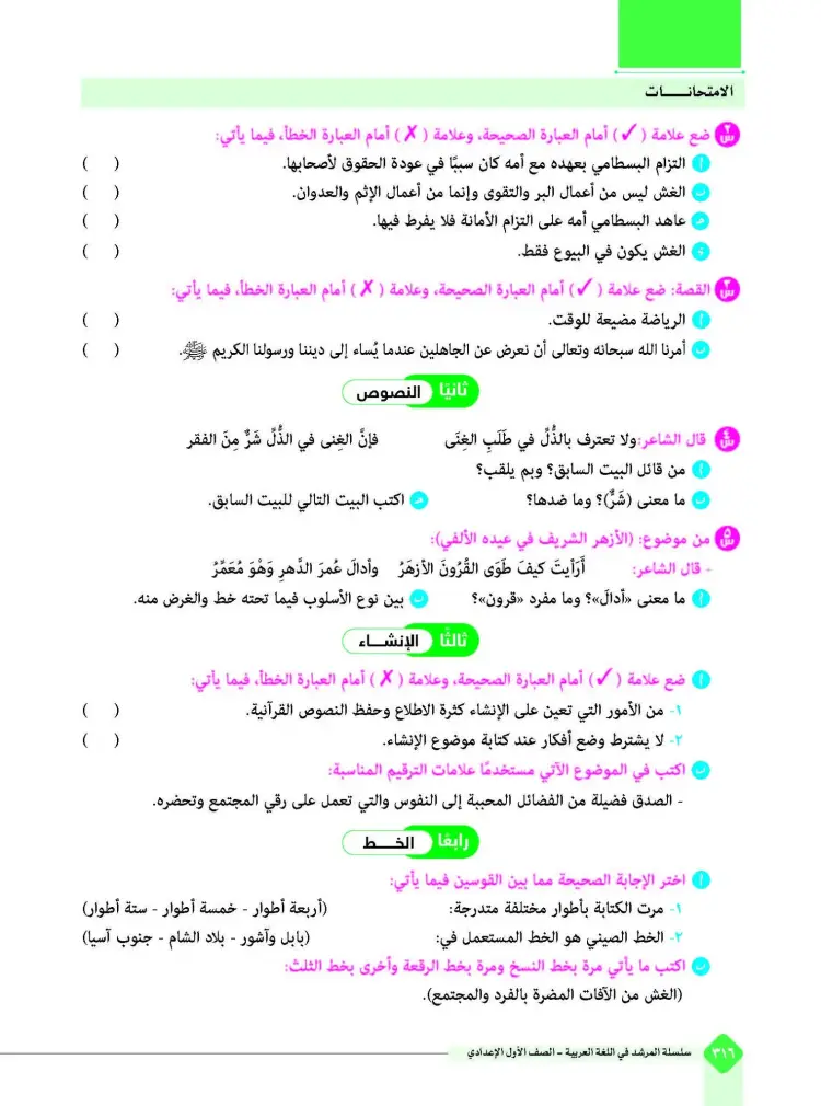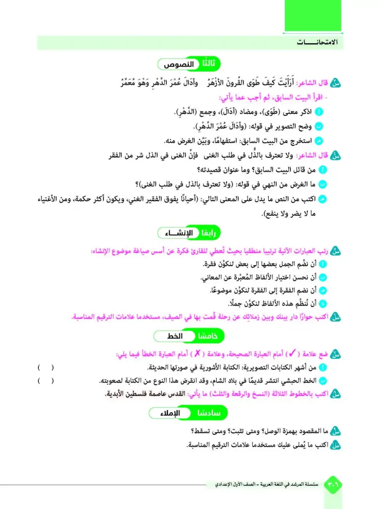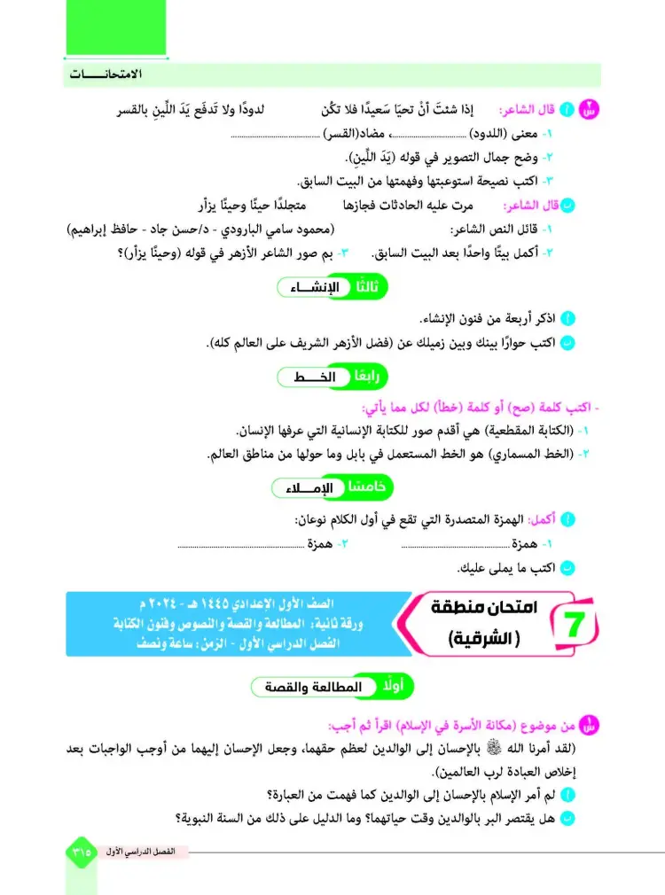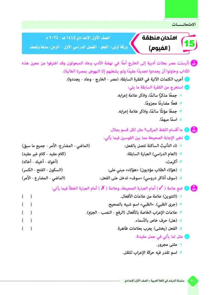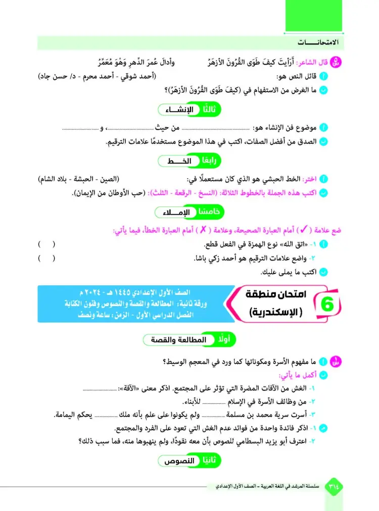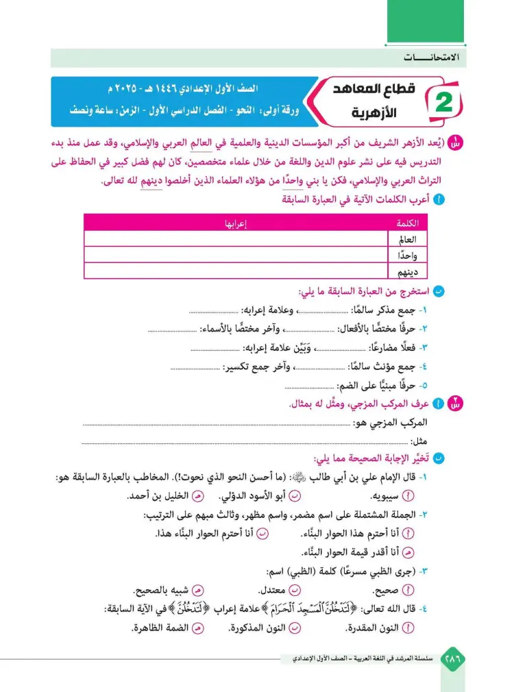 ينشر «شبابيك» امتحانات كتاب المرشد في مقرر اللغة العربية لطلاب الصف الأول الإعدادي الأزهري بالفصل الدراسي الأول للعام 2025 2026، حتى يتثنى للطلاب التدرب على حلها.