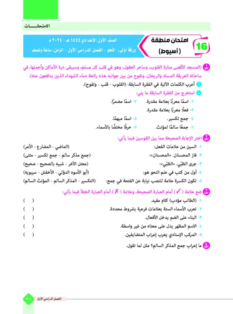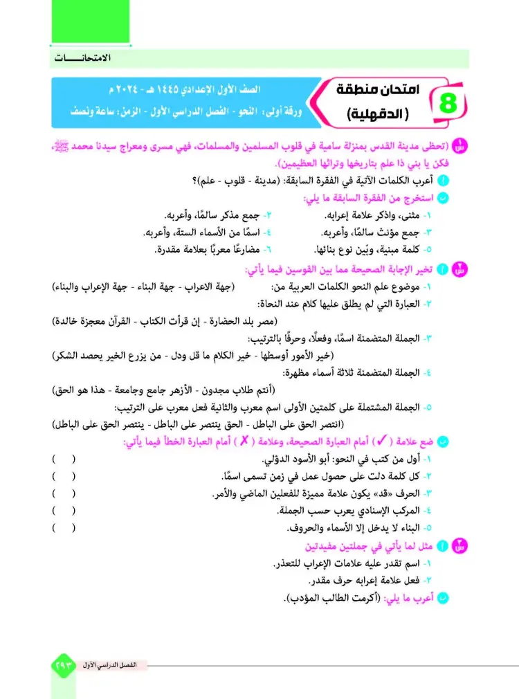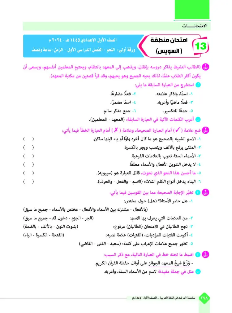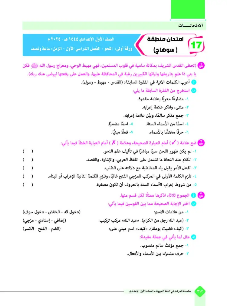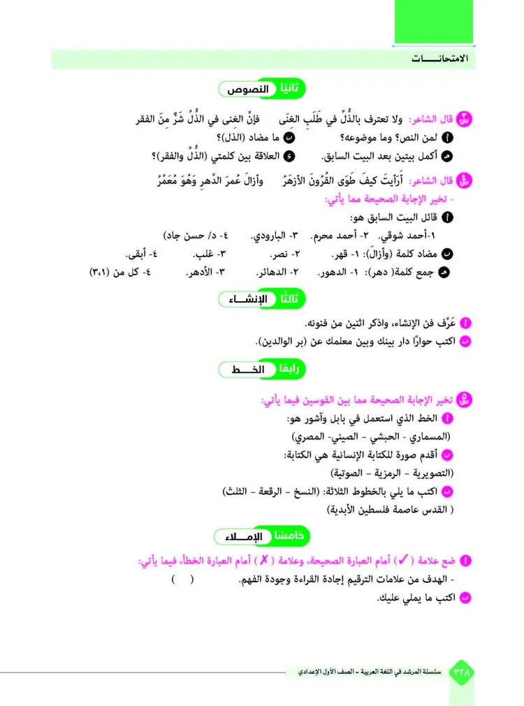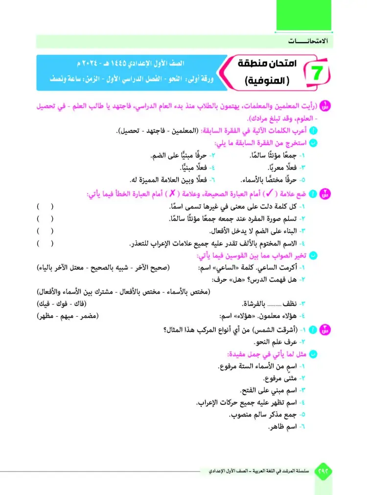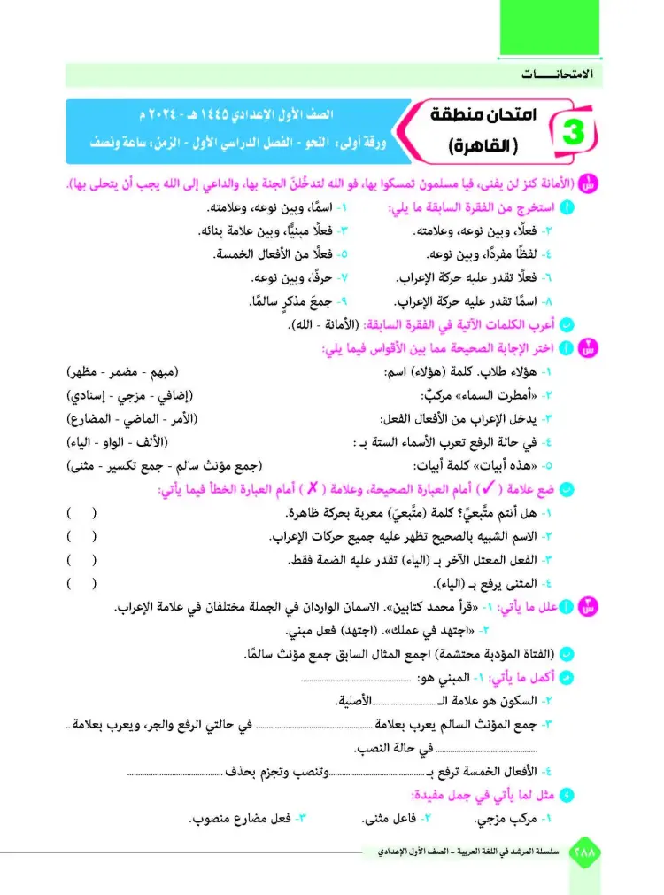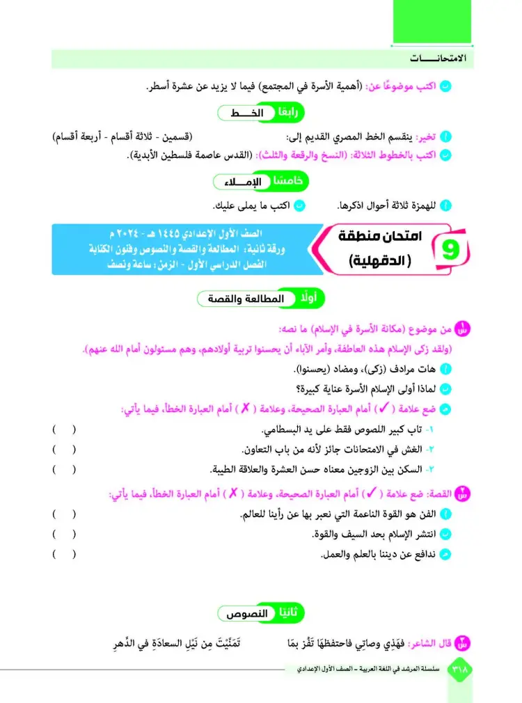 ينشر «شبابيك» امتحانات كتاب المرشد في مقرر اللغة العربية لطلاب الصف الأول الإعدادي الأزهري بالفصل الدراسي الأول للعام 2025 2026، حتى يتثنى للطلاب التدرب على حلها.