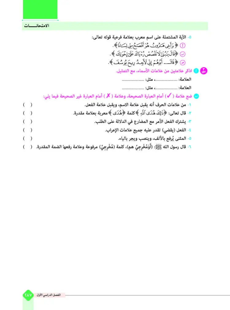 السؤال الثالث: ضع علامة (✓) أمام العبارة الصحيحة، وعلامة (✗) أمام العبارة الخطأ فيما يلي: