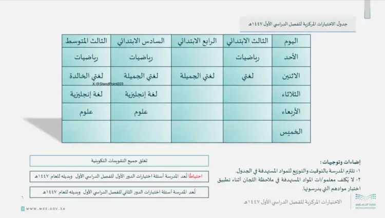 جدول الاختبارات المركزية في جدة 1447 لكل الصفوف