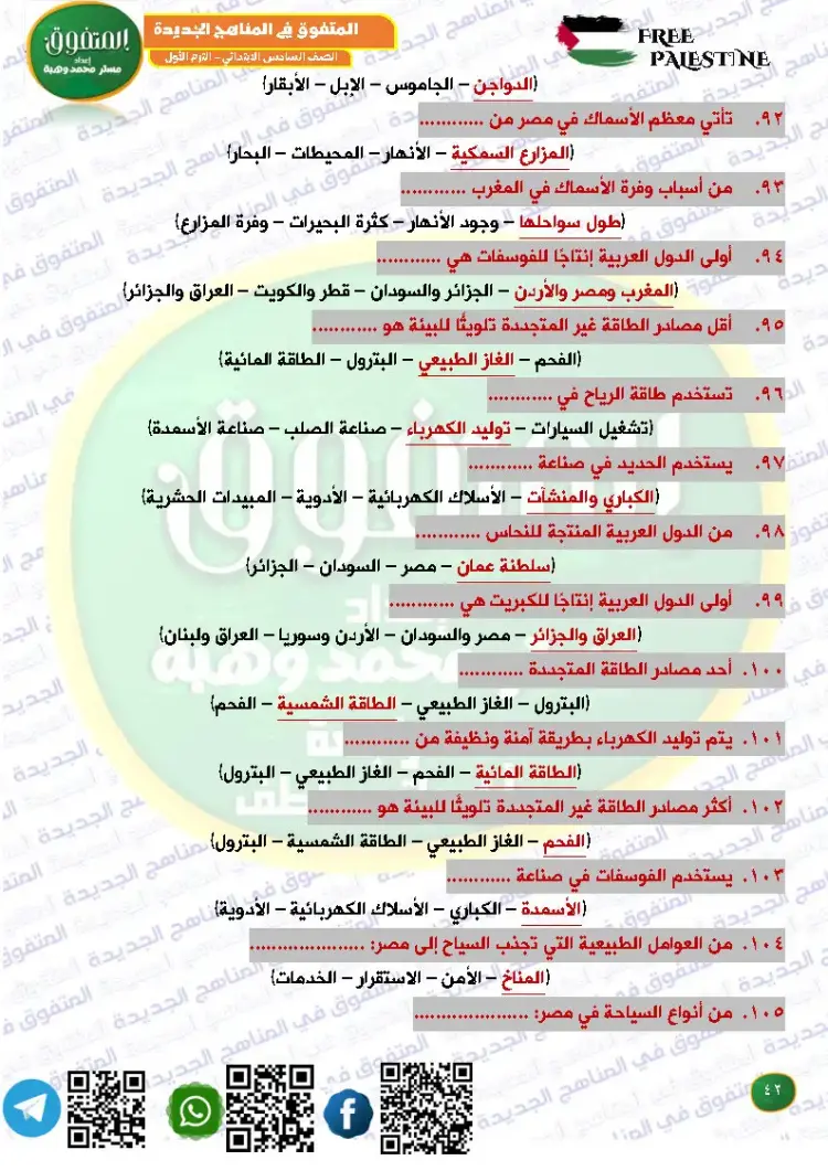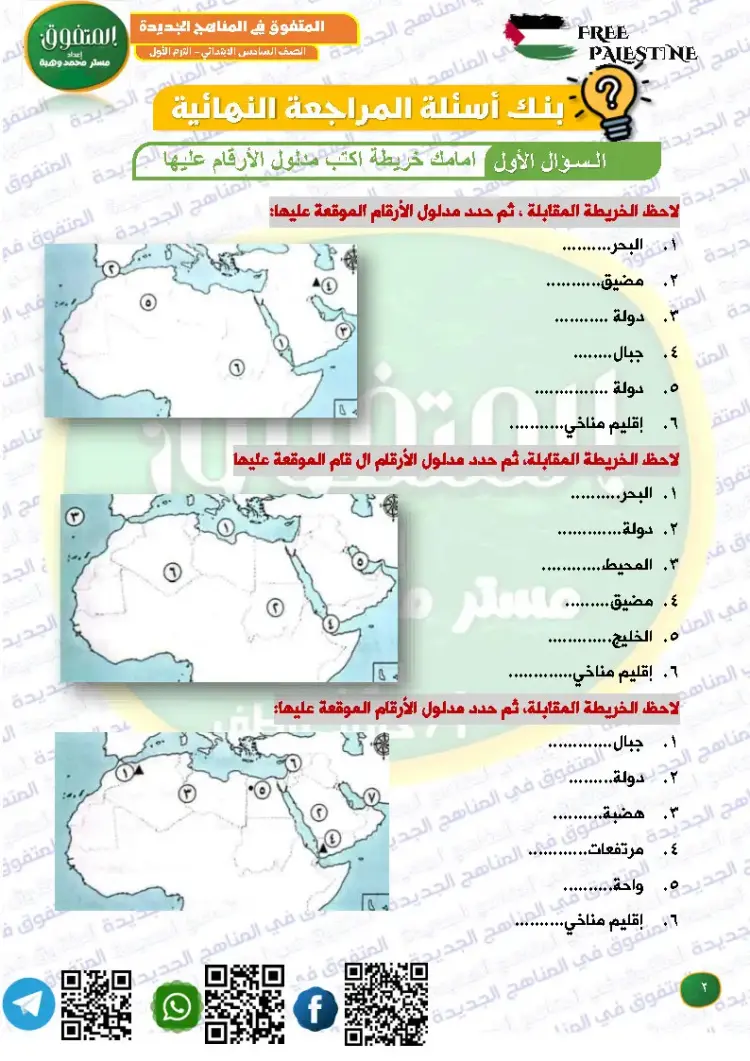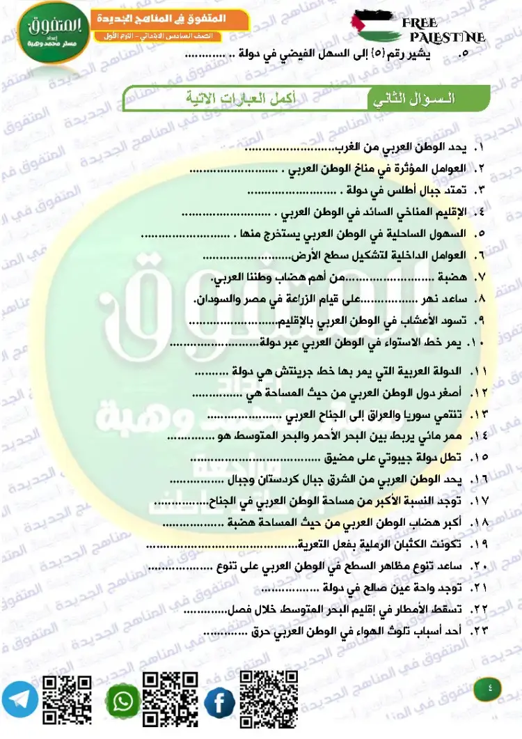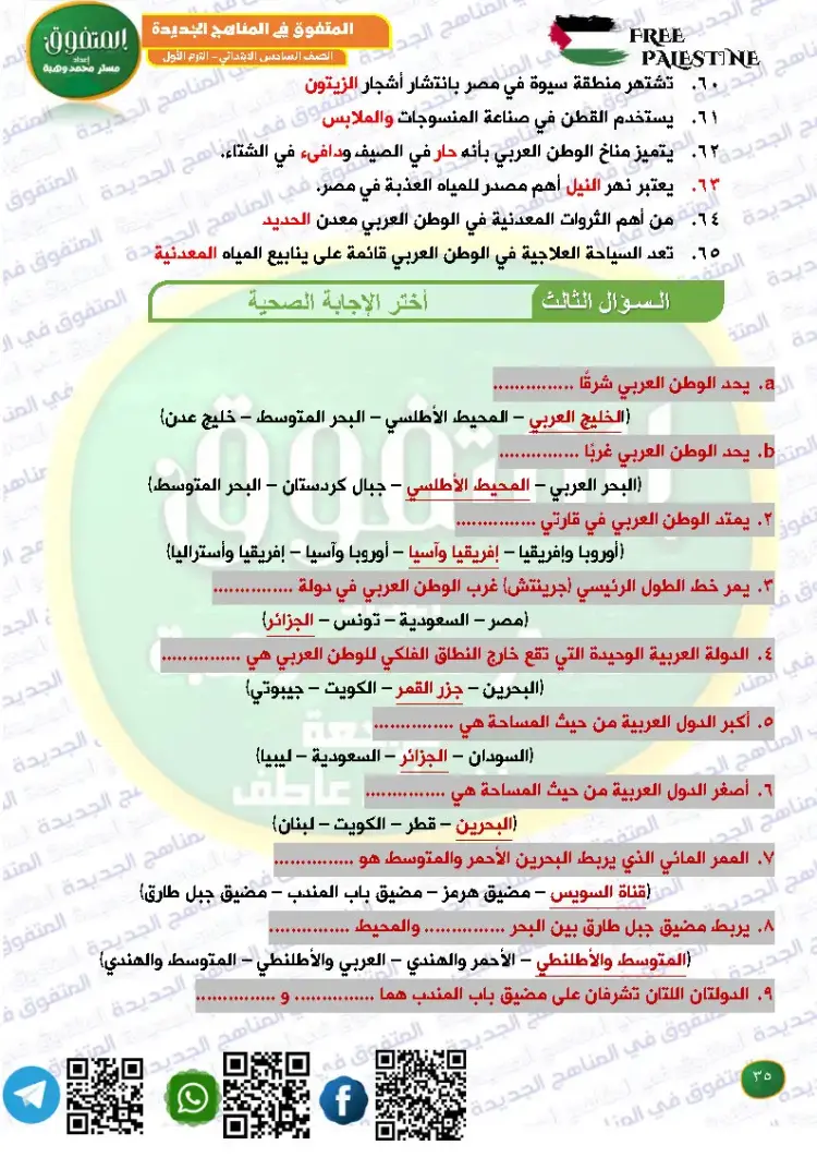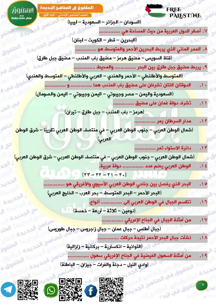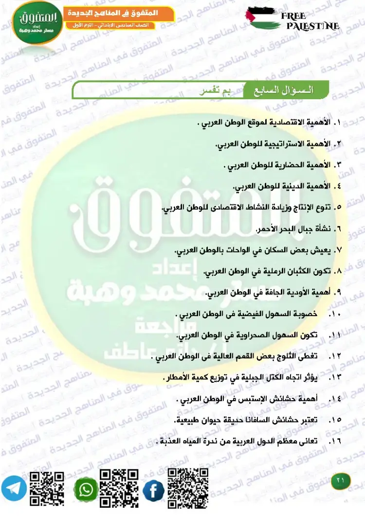 ويوفر المتفوق دراسات الصف السادس الابتدائي ترم اول 2026 pdf مراجعة نهائية عددًا كبيرًا من الأسئلة، كان من بينها الآتي: