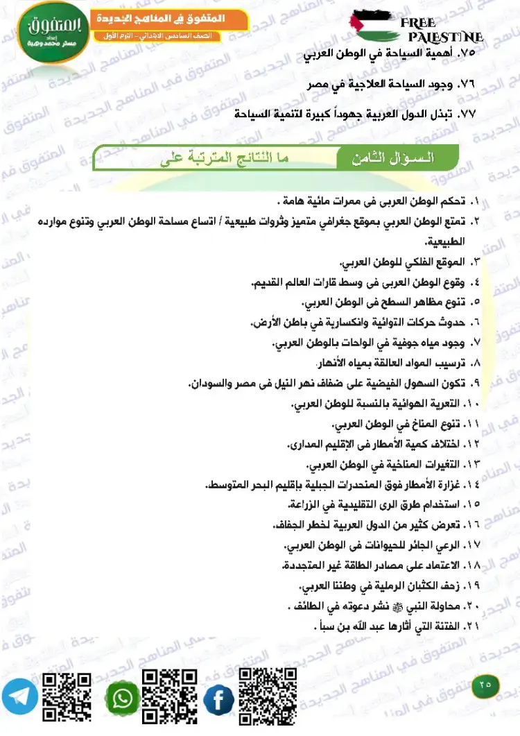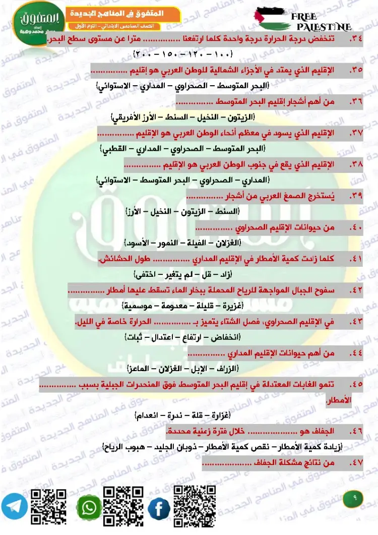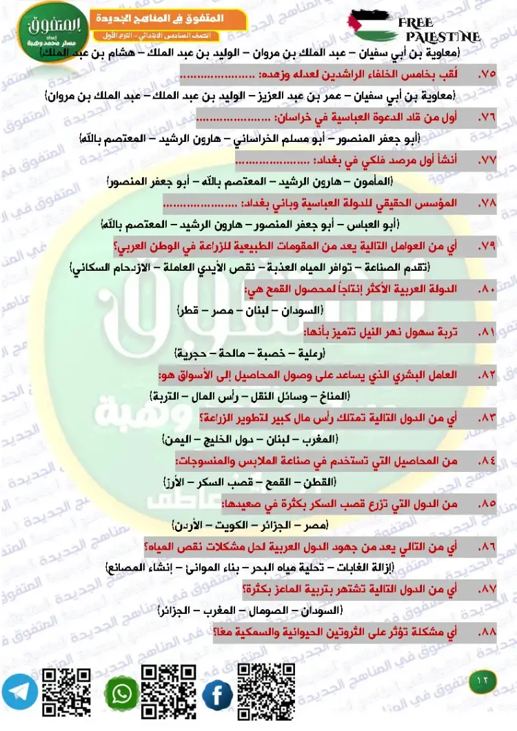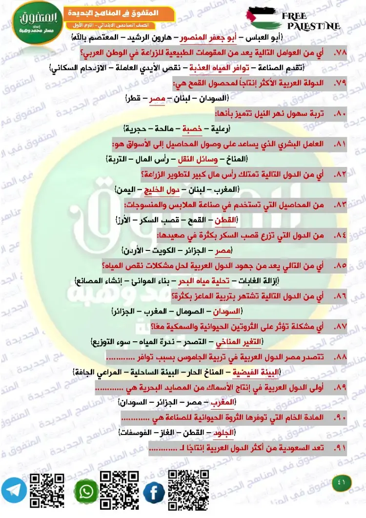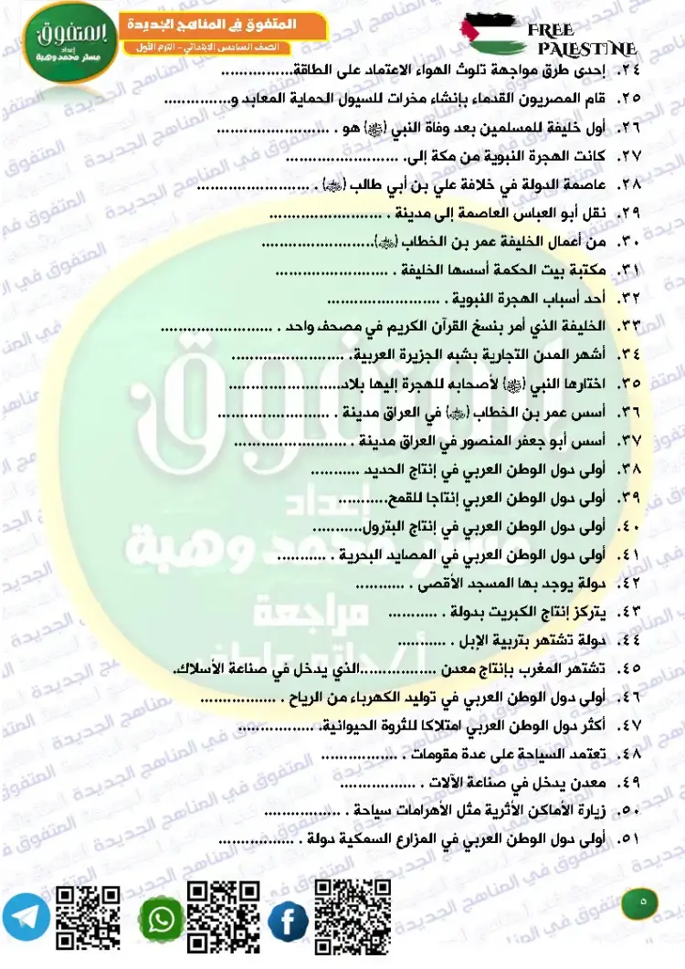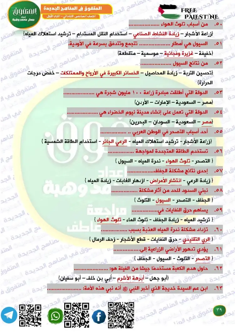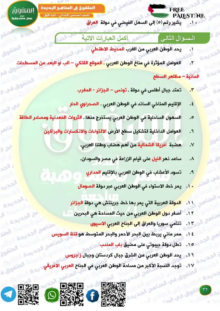 ويوفر المتفوق دراسات الصف السادس الابتدائي ترم اول 2026 pdf مراجعة نهائية عددًا كبيرًا من الأسئلة، كان من بينها الآتي:
