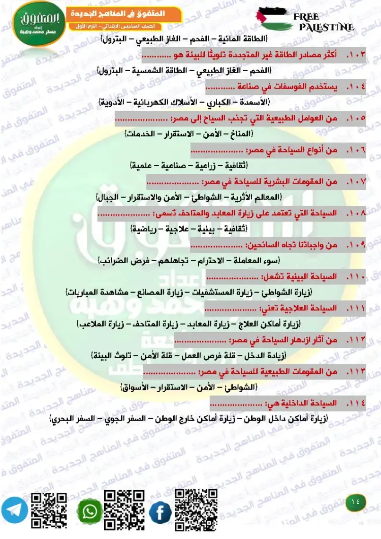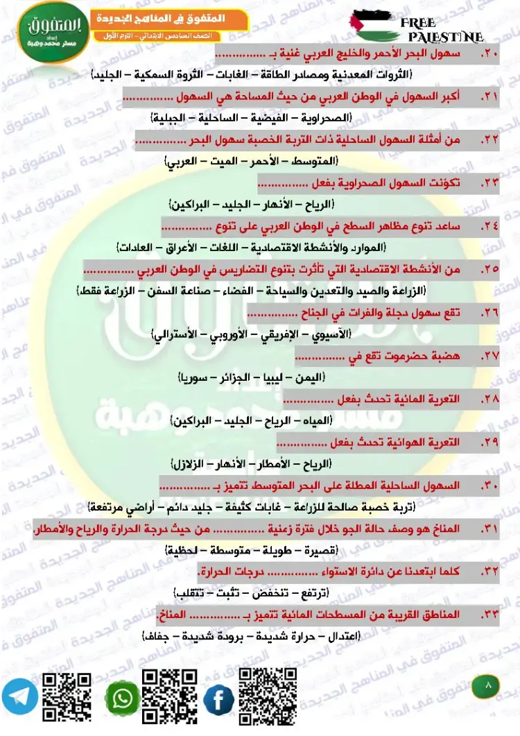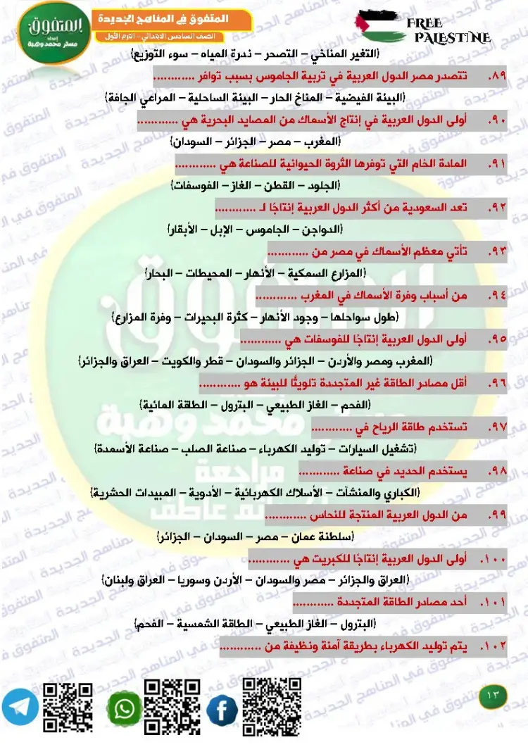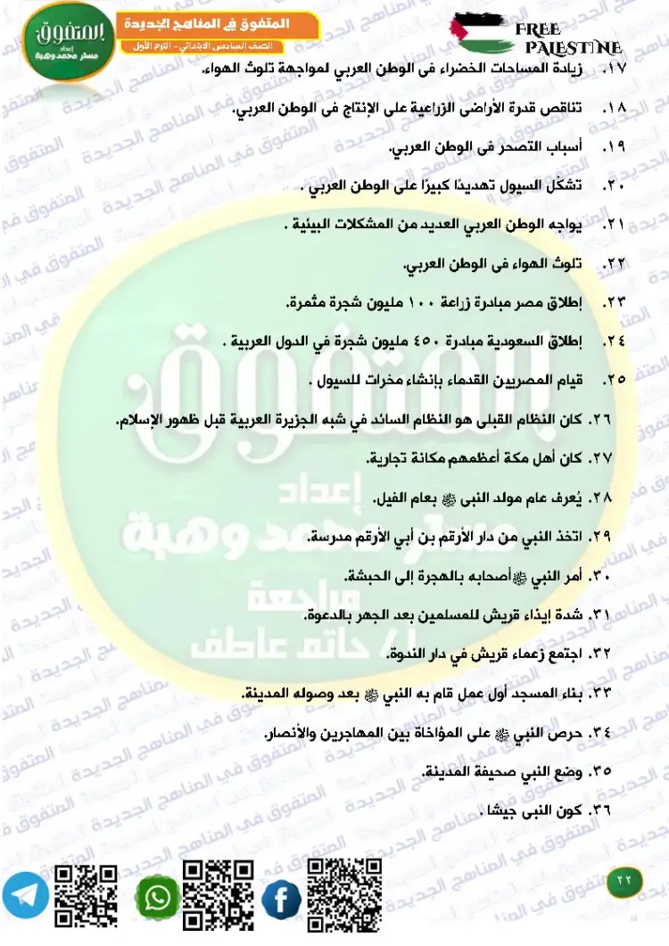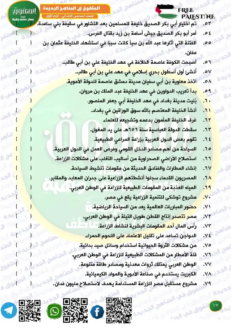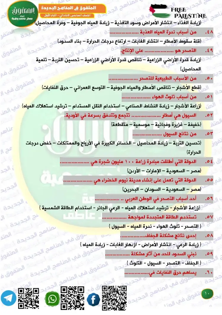 ويوفر المتفوق دراسات الصف السادس الابتدائي ترم اول 2026 pdf مراجعة نهائية عددًا كبيرًا من الأسئلة، كان من بينها الآتي:
