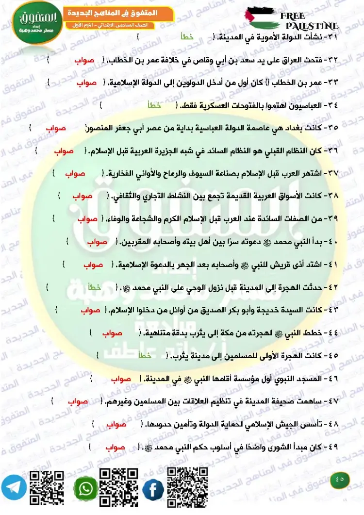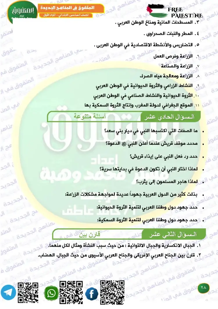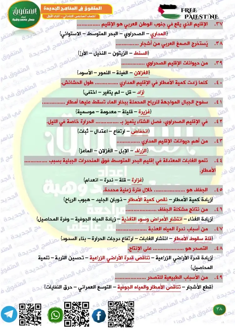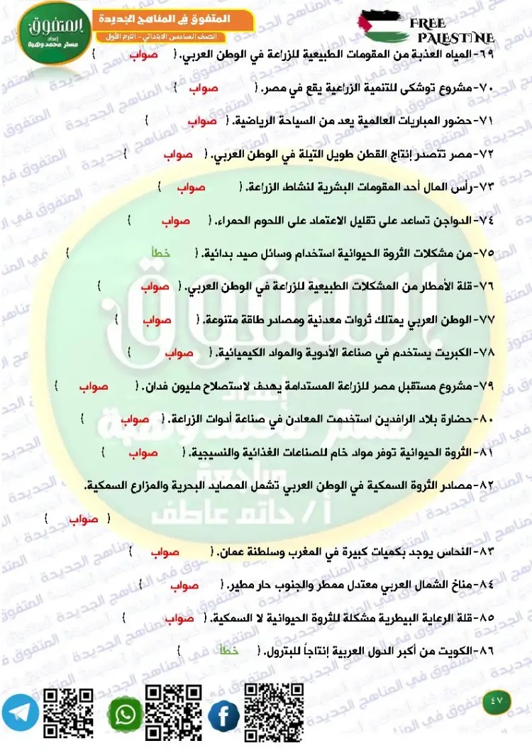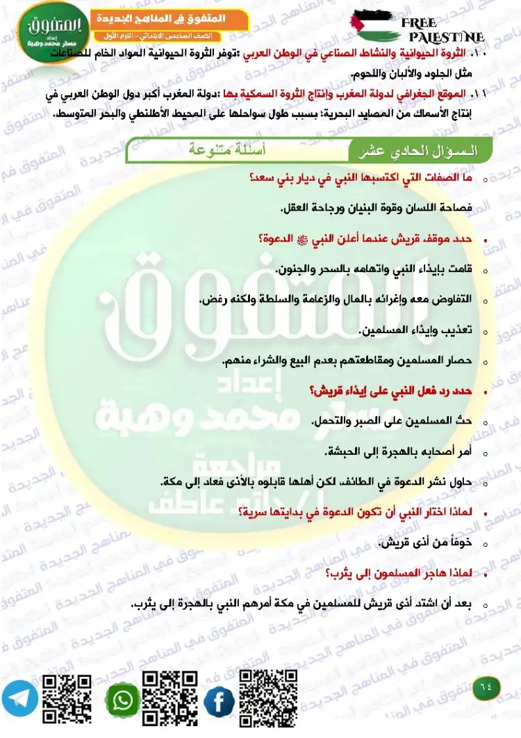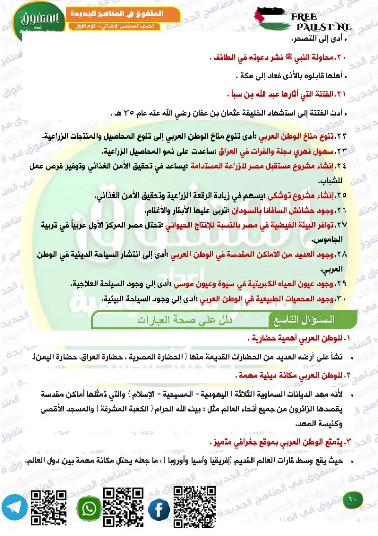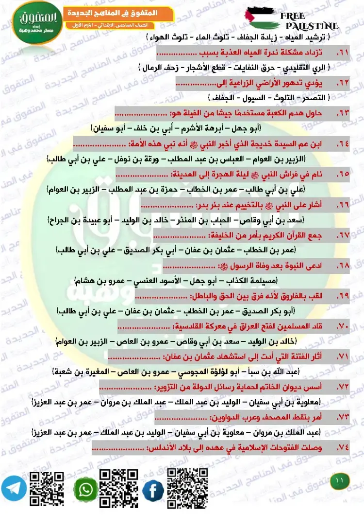 ويوفر المتفوق دراسات الصف السادس الابتدائي ترم اول 2026 pdf مراجعة نهائية عددًا كبيرًا من الأسئلة، كان من بينها الآتي: