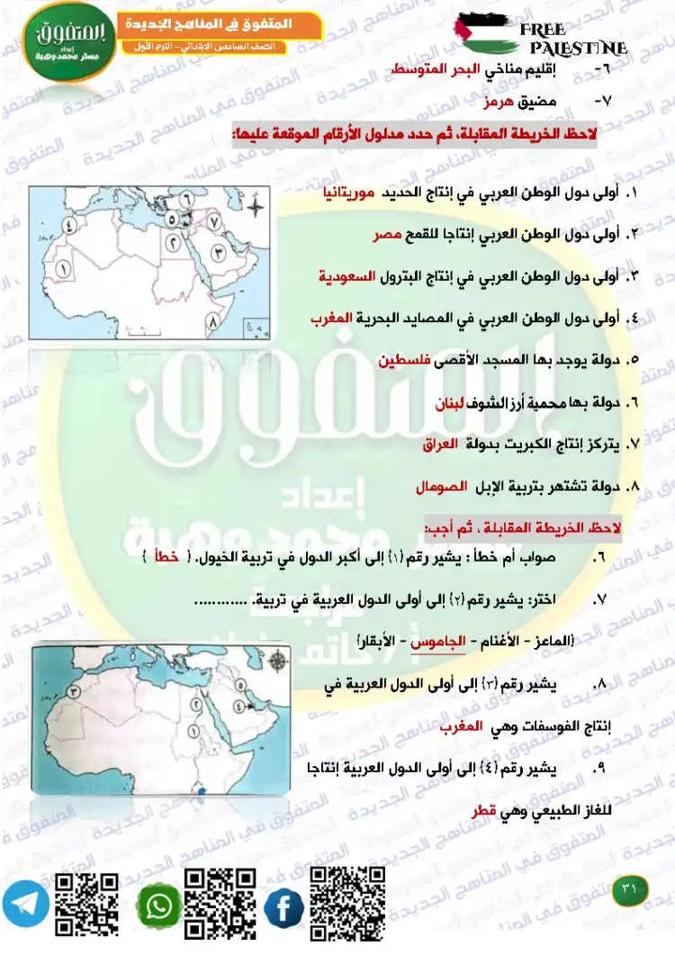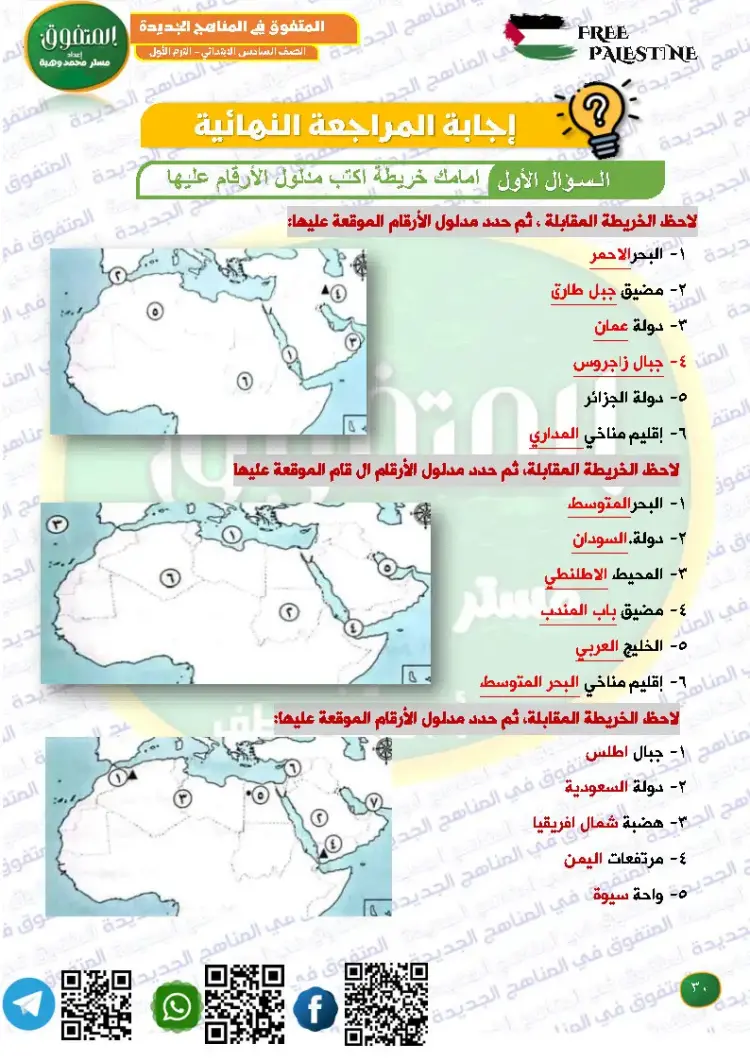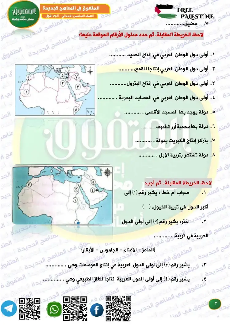 «لاحظ الخريطة المقابلة، ثم حدد مدلول الأرقام الموقعة عليها» أو «اكتب مدلول الأرقام عليها» (أسئلة الخرائط) [4، 33].