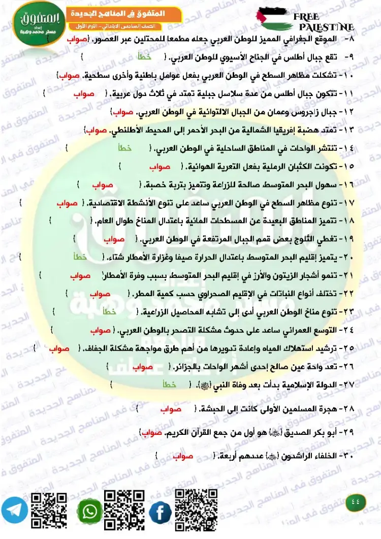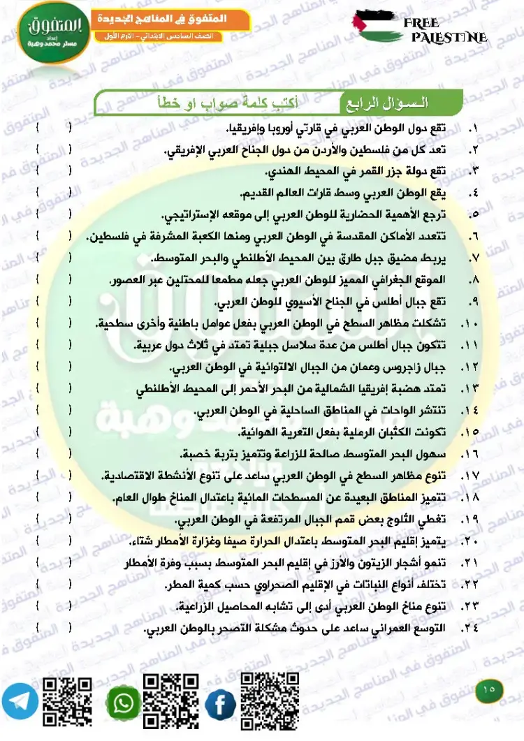 سؤال: «تقع دول الوطن العربي في قارتي أوروبا وأفريقيا. (خطأ)» [1، 22].