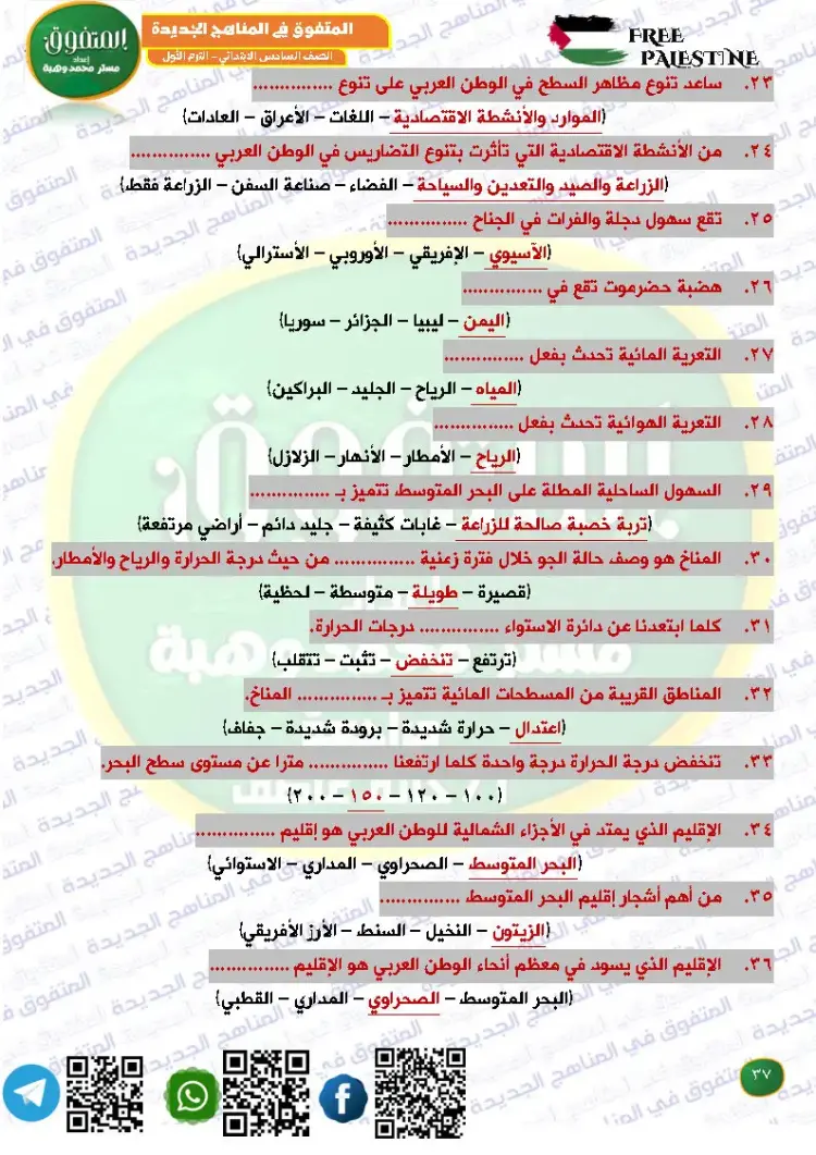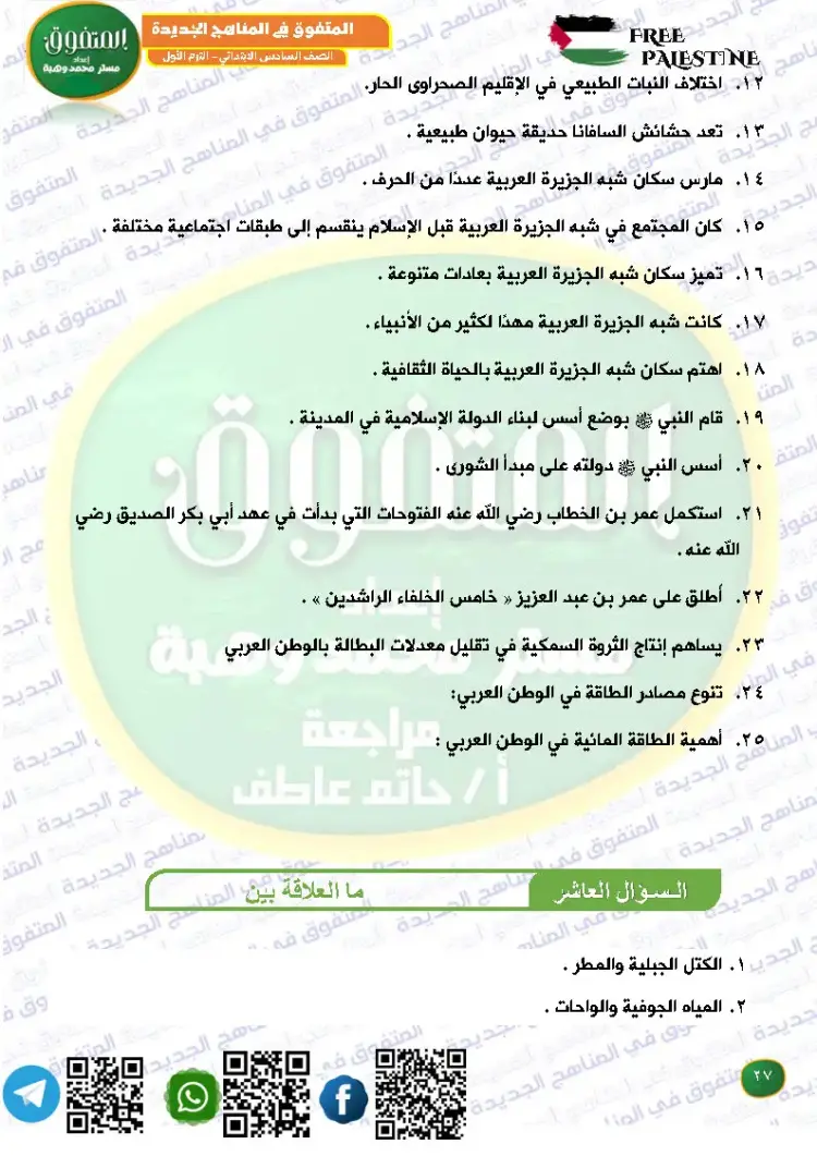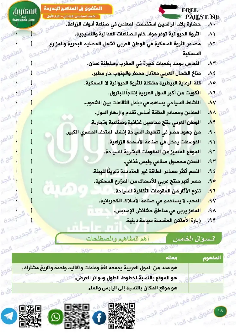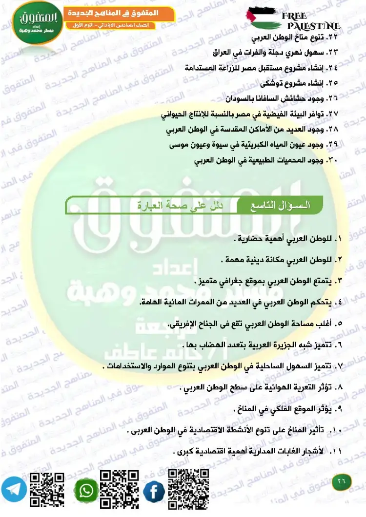 يمكن تحميل المتفوق دراسات الصف السادس الابتدائي ترم اول 2026 pdf مراجعة نهائية بالإجابات من خلال الصور التالية: