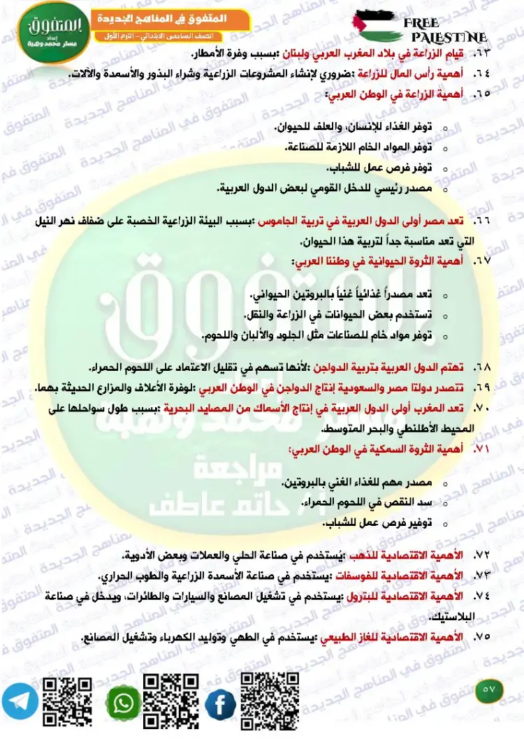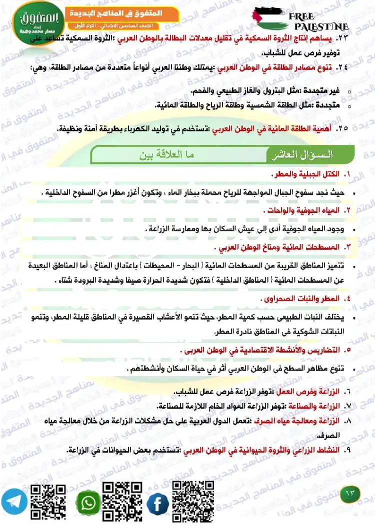 سؤال: «بم تفسر: «تنوع الإنتاج وزيادة النشاط الاقتصادي للوطن العربي: ...............»» الإجابة الصحيحة: «بسبب اتساع مساحته وتنوع الموارد الطبيعية به مثل المعادن والبترول والأقاليم المناخية والنباتية.».
