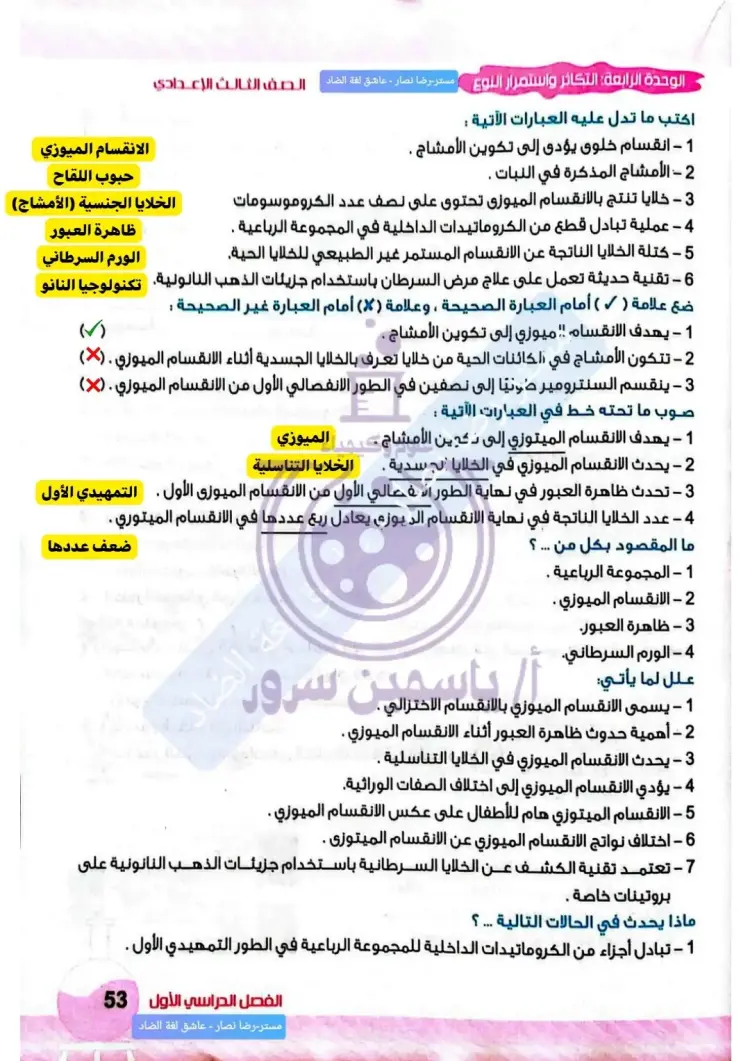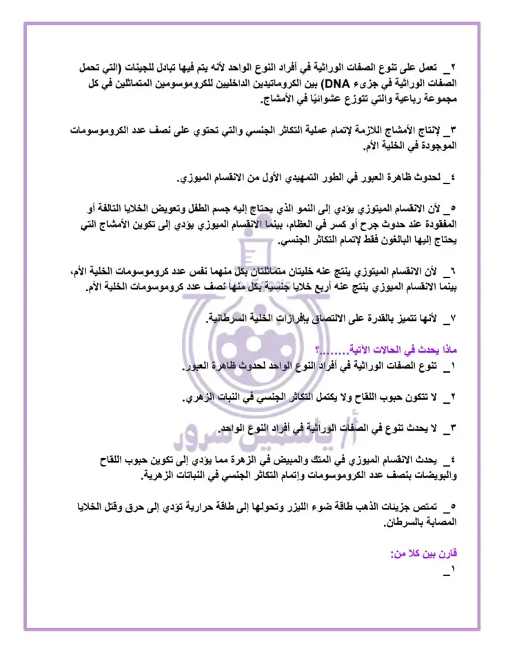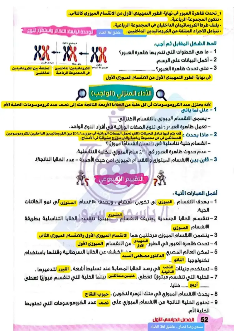 س 3: ما أهمية حدوث ظاهرة العبور أثناء الانقسام الميوزي؟