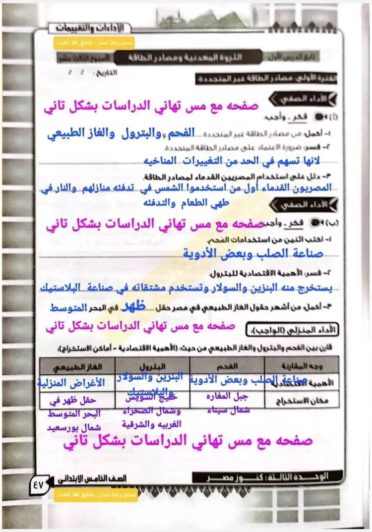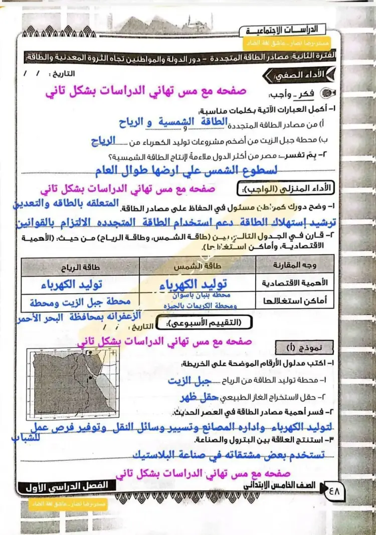 حل الأداء الصفي دراسات خامسة ابتدائي الأسبوع الثالث عشر ترم أول 2026