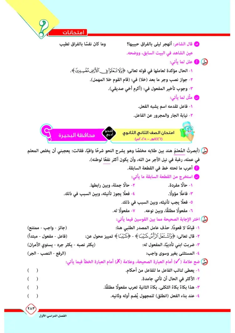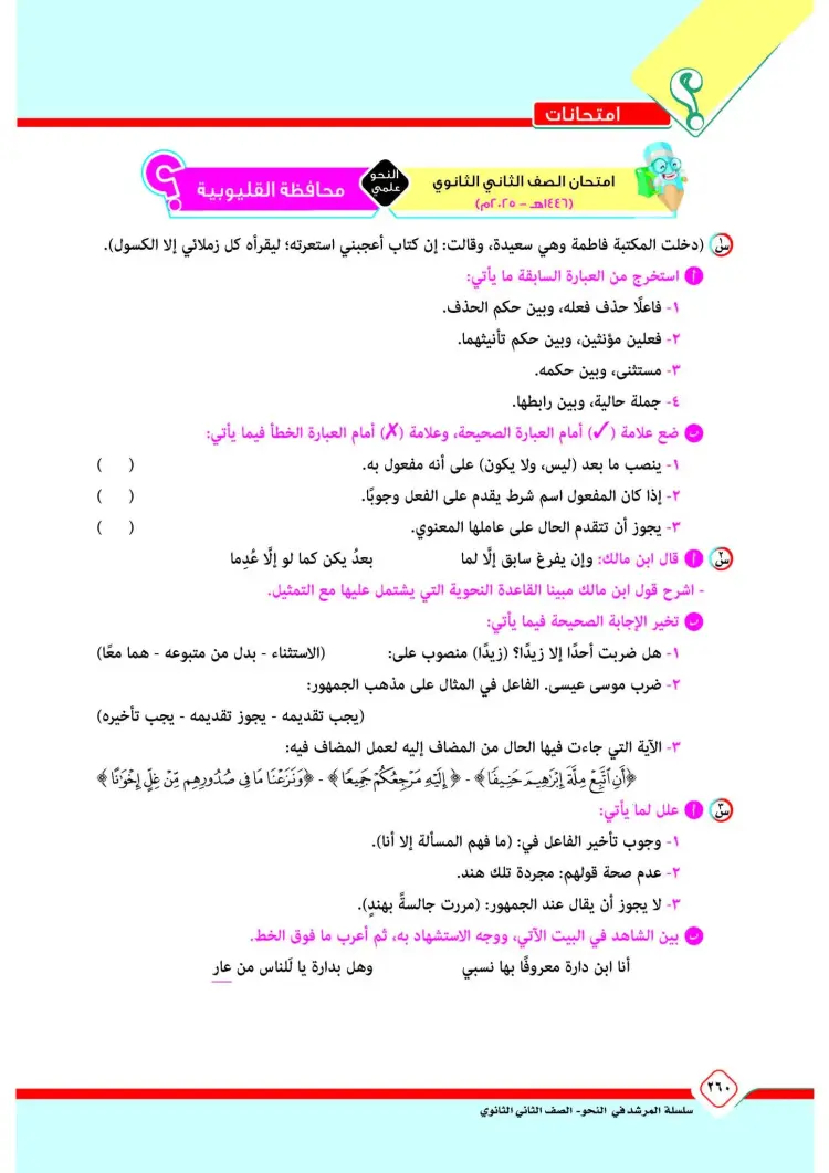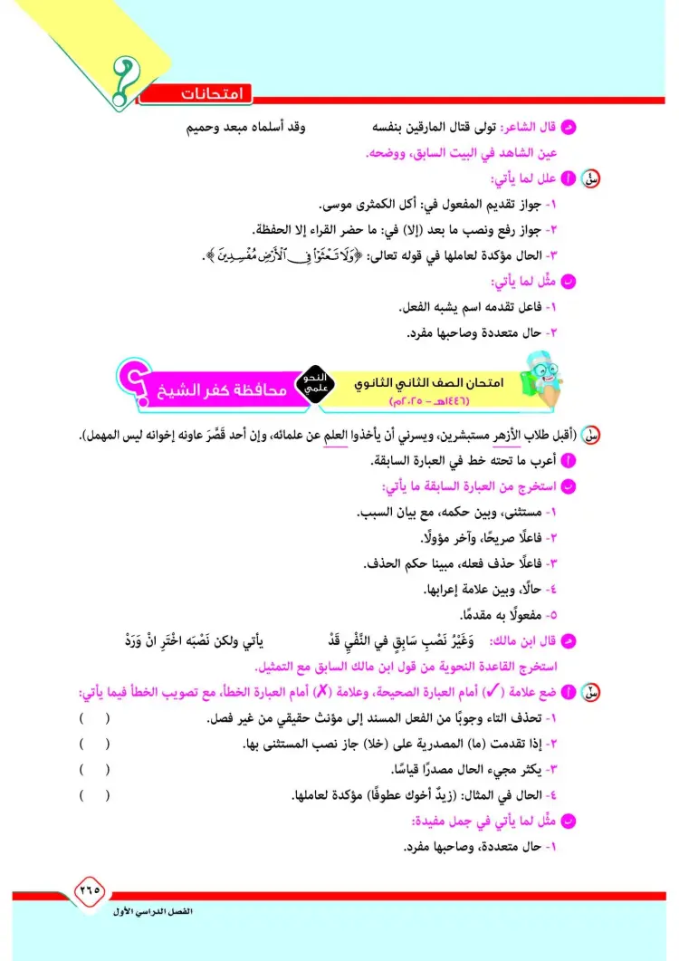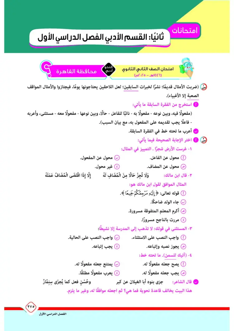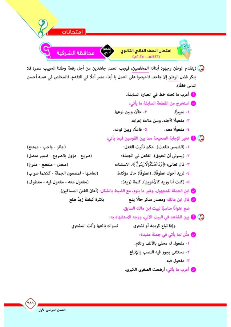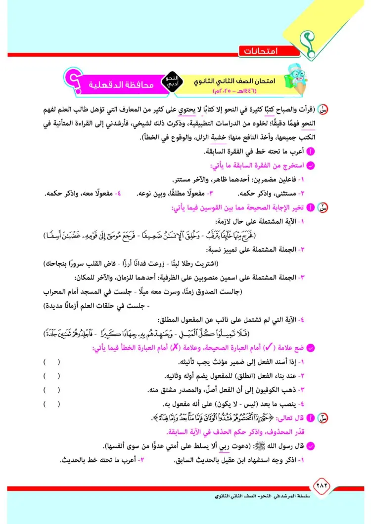 ينشر «شبابيك» امتحانات كتاب المرشد في مقرر النحو لطلاب الصف الثاني الثانوي الأزهري علمي وأدبي بالفصل الدراسي الأول للعام 2025 2026، حتى يتثنى للطلاب التدرب على حلها.