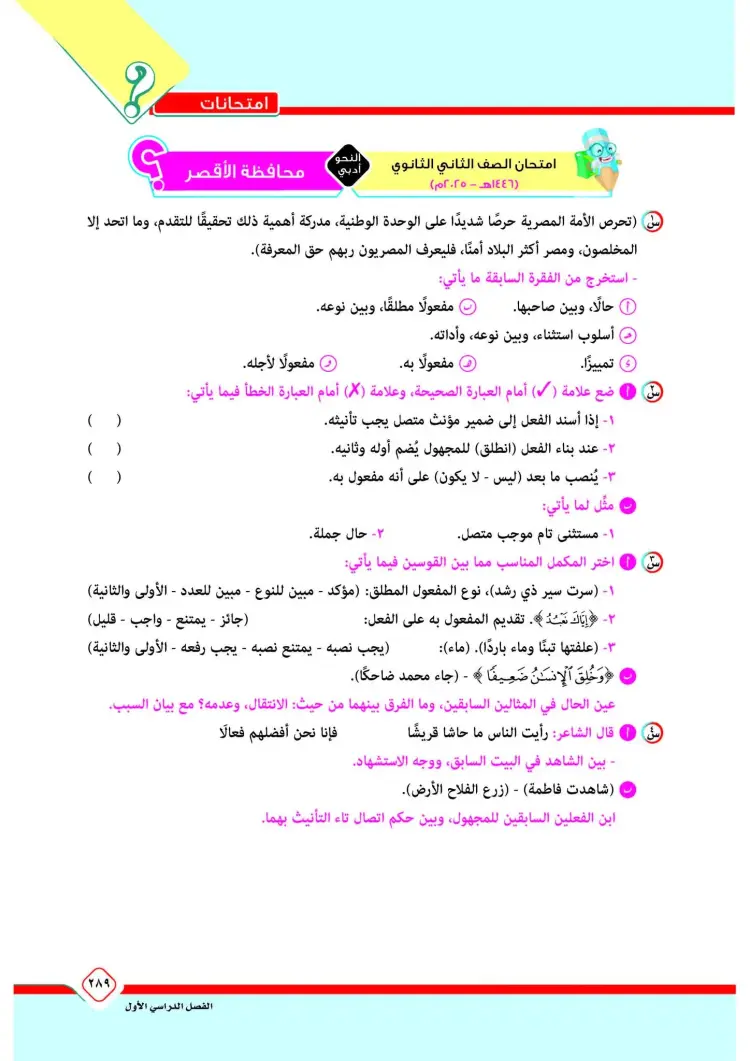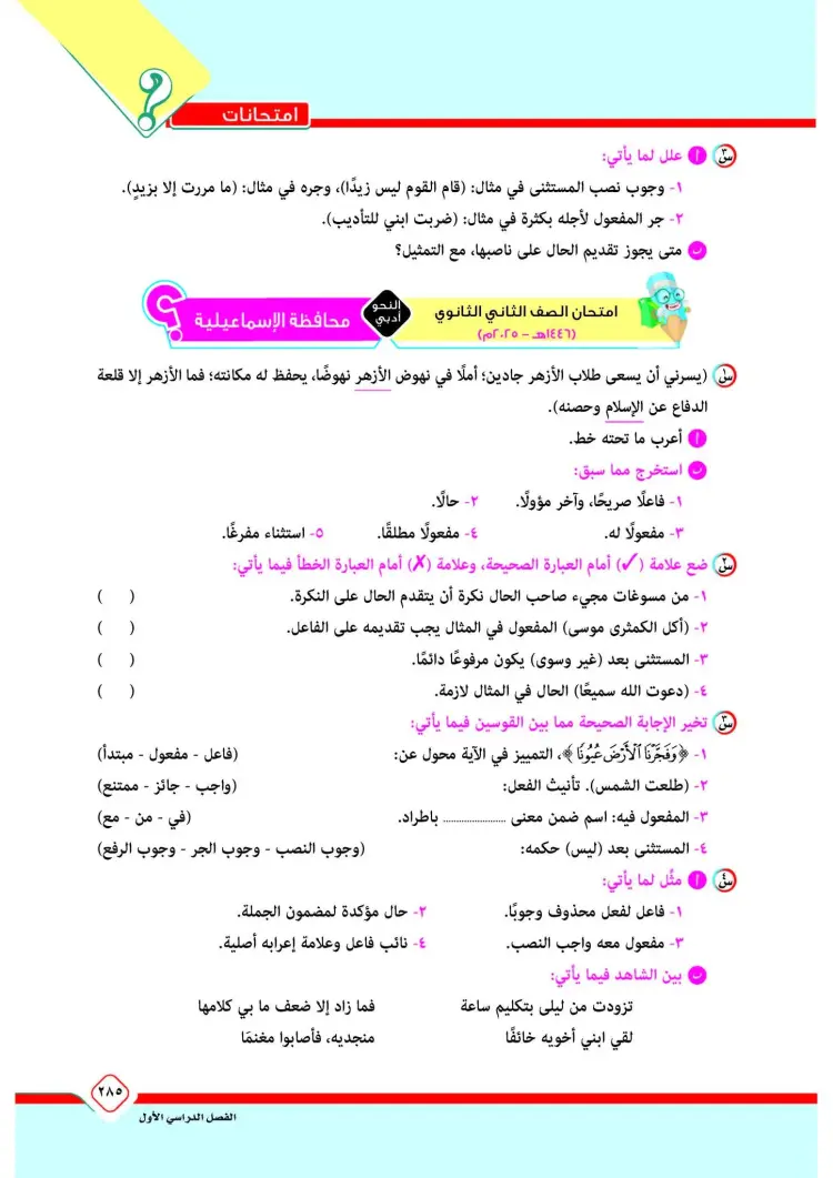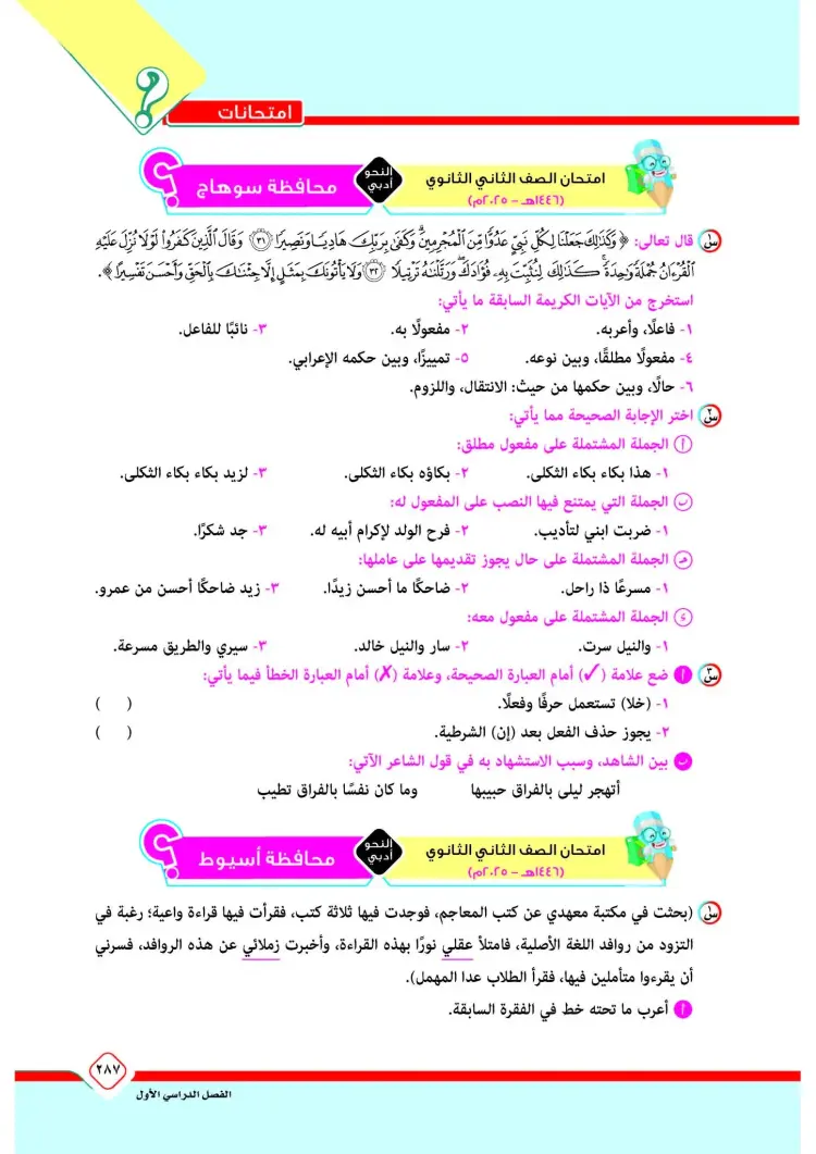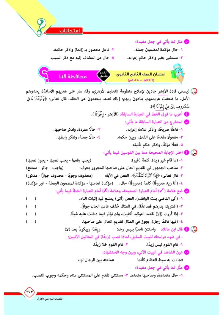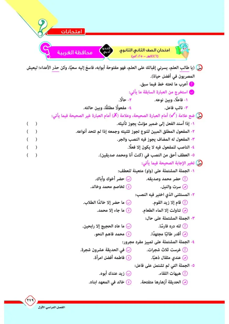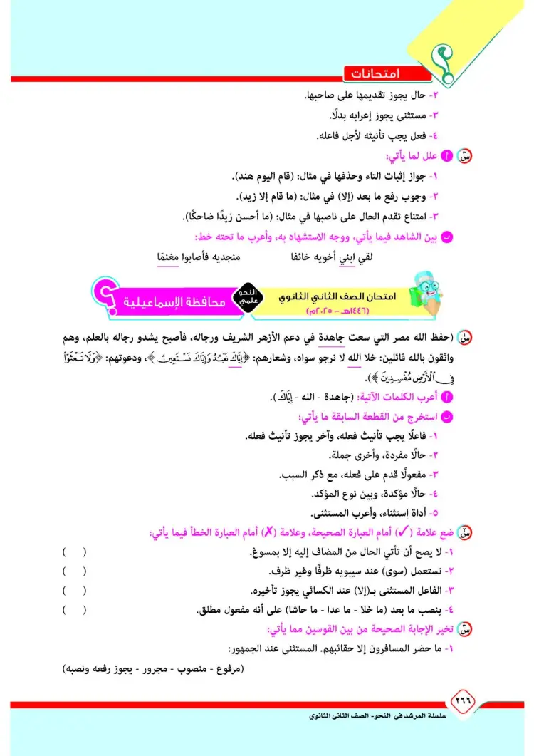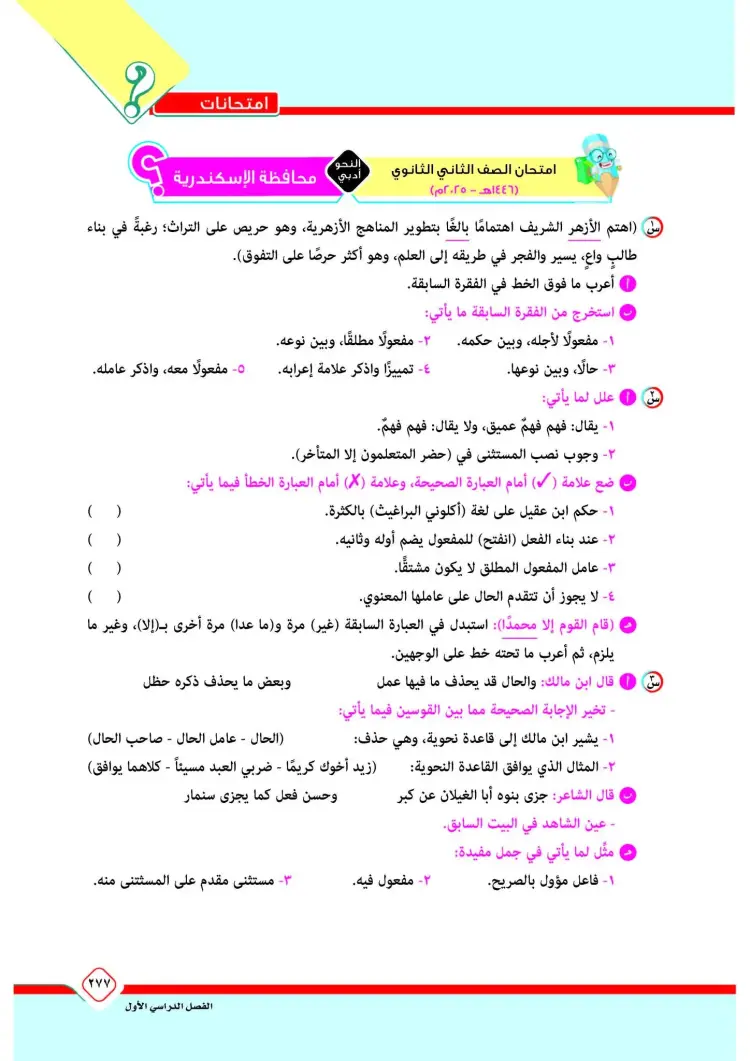ينشر «شبابيك» امتحانات كتاب المرشد في مقرر النحو لطلاب الصف الثاني الثانوي الأزهري علمي وأدبي بالفصل الدراسي الأول للعام 2025 2026، حتى يتثنى للطلاب التدرب على حلها.