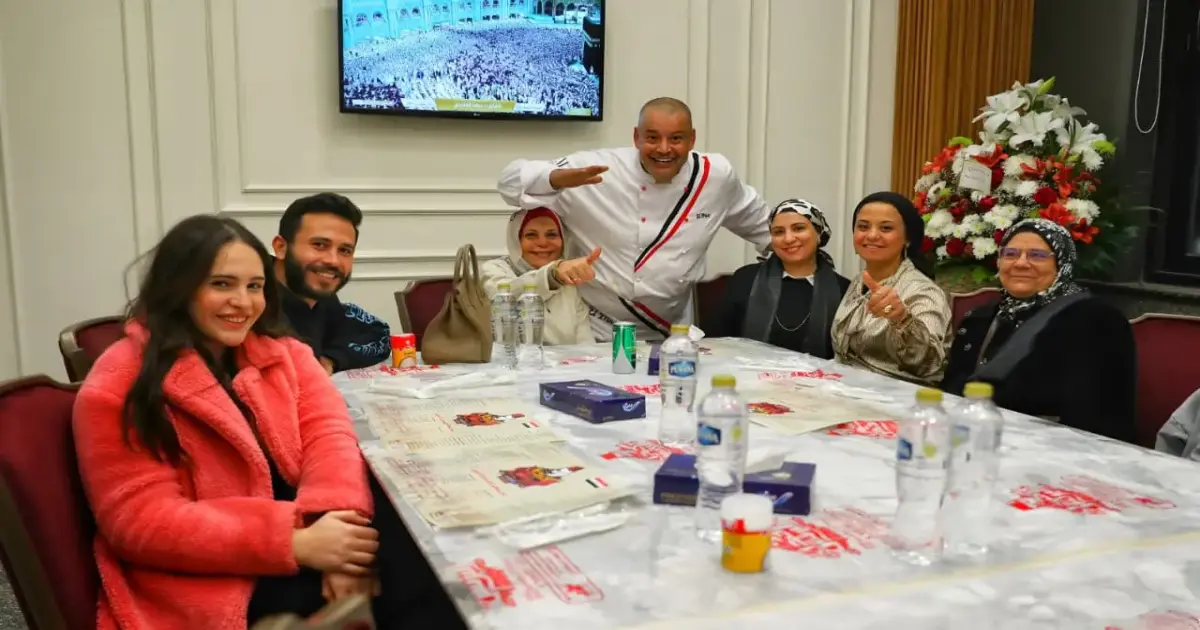 ناصر البرنس يتوسط أسرة تزور مطعمه الجديد