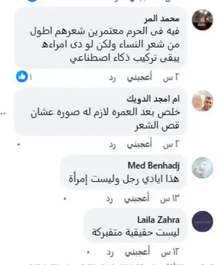 وجزم المستخدم Med Benhadj بالهوية قائلا: «هذا أيادي رجل وليست إمرأة».