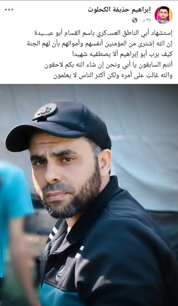 منشورات نعي نجل أبو عبيدة لوالده عبر فيسبوك
