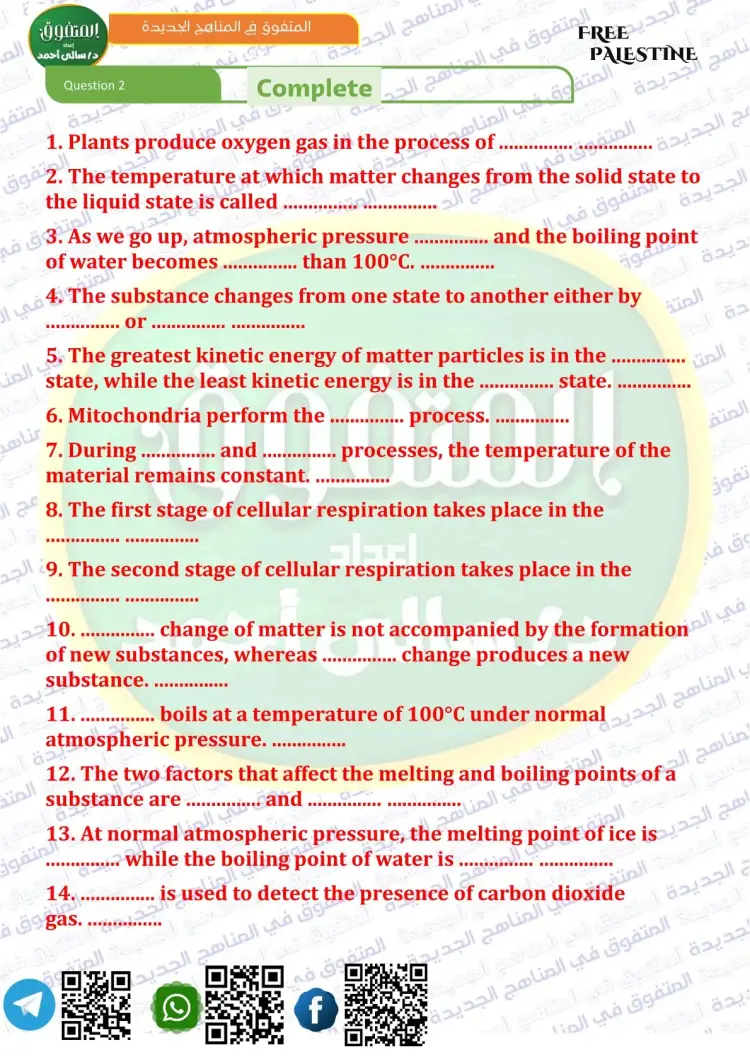 بنك أسئلة المتفوق ساينس ثانية إعدادي ترم أول 2026 مراجعة نهائية