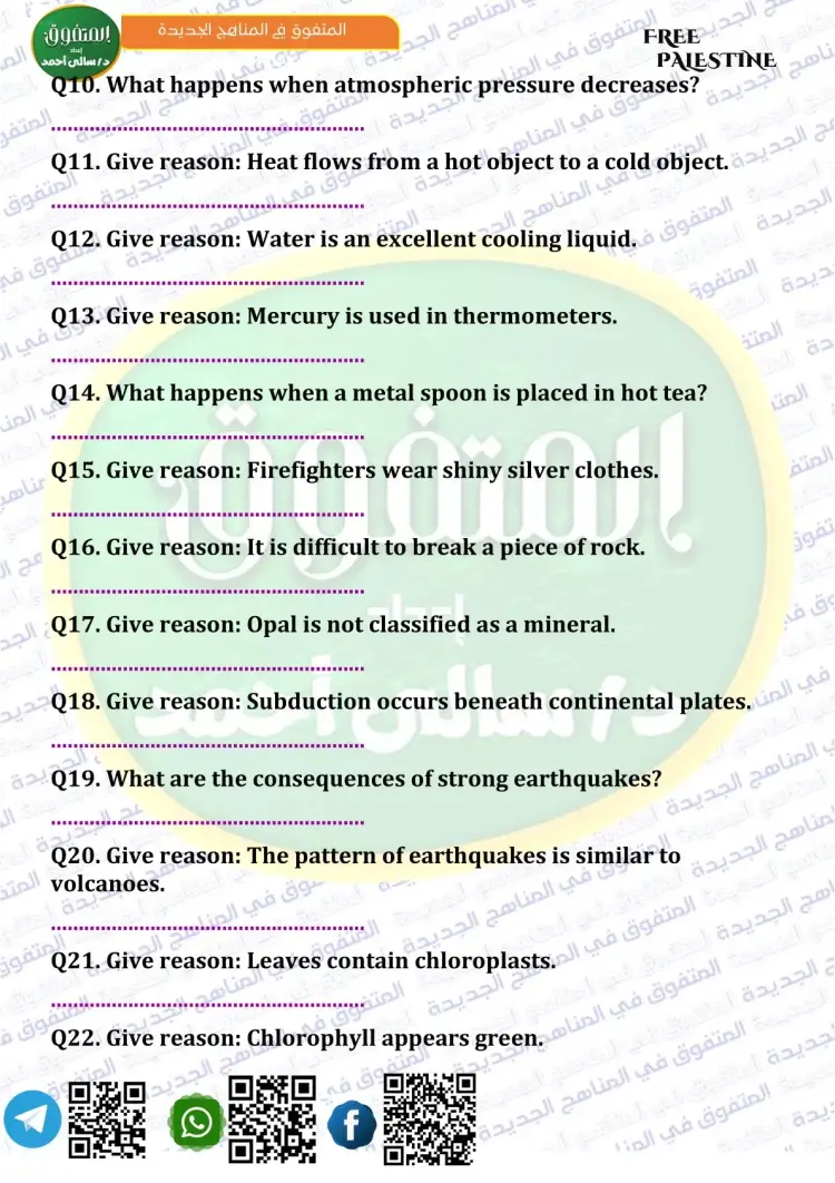 يحتوي ملف المتفوق ساينس الصف الثاني الإعدادي ترم أول 2026 مراجعة نهائية على بنك أسئلة شامل لكافة أنواع الأسئلة المقالية والموضوعية، حيث يضم مجموعة متنوعة من أنماط الأسئلة المقررة، ومن بين الأسئلة كان الآتي: