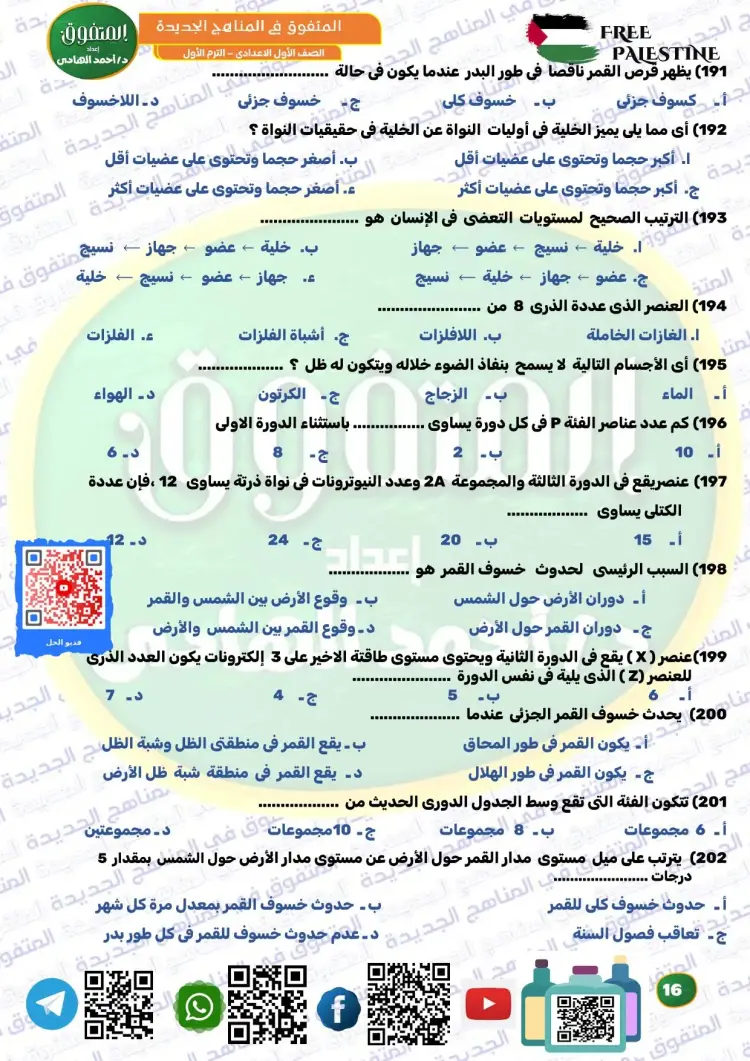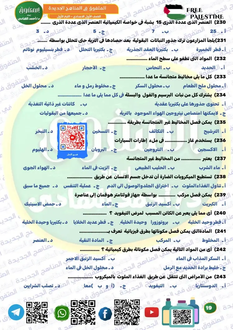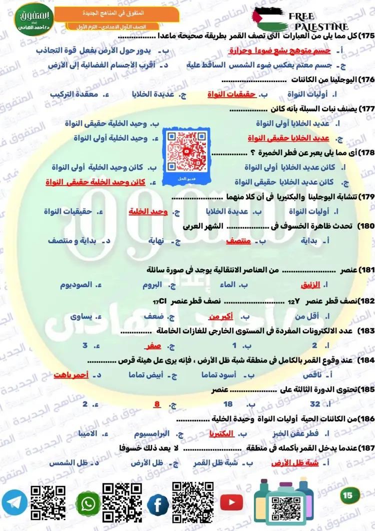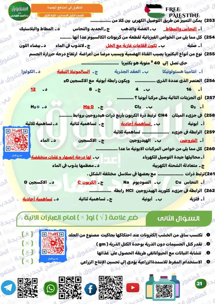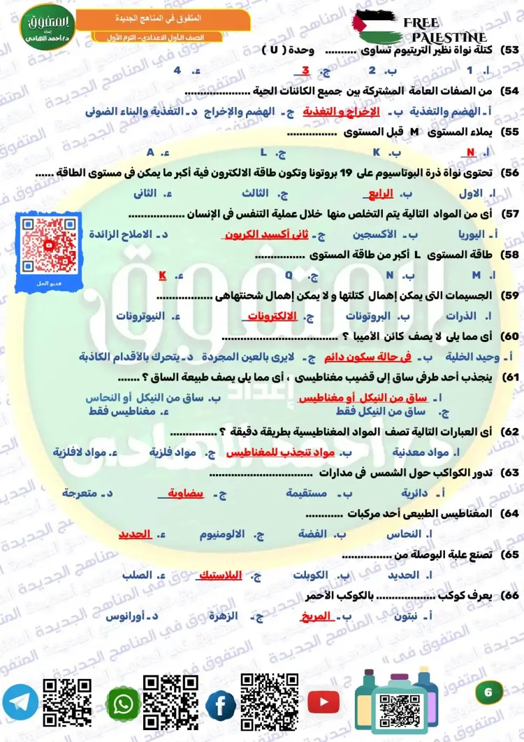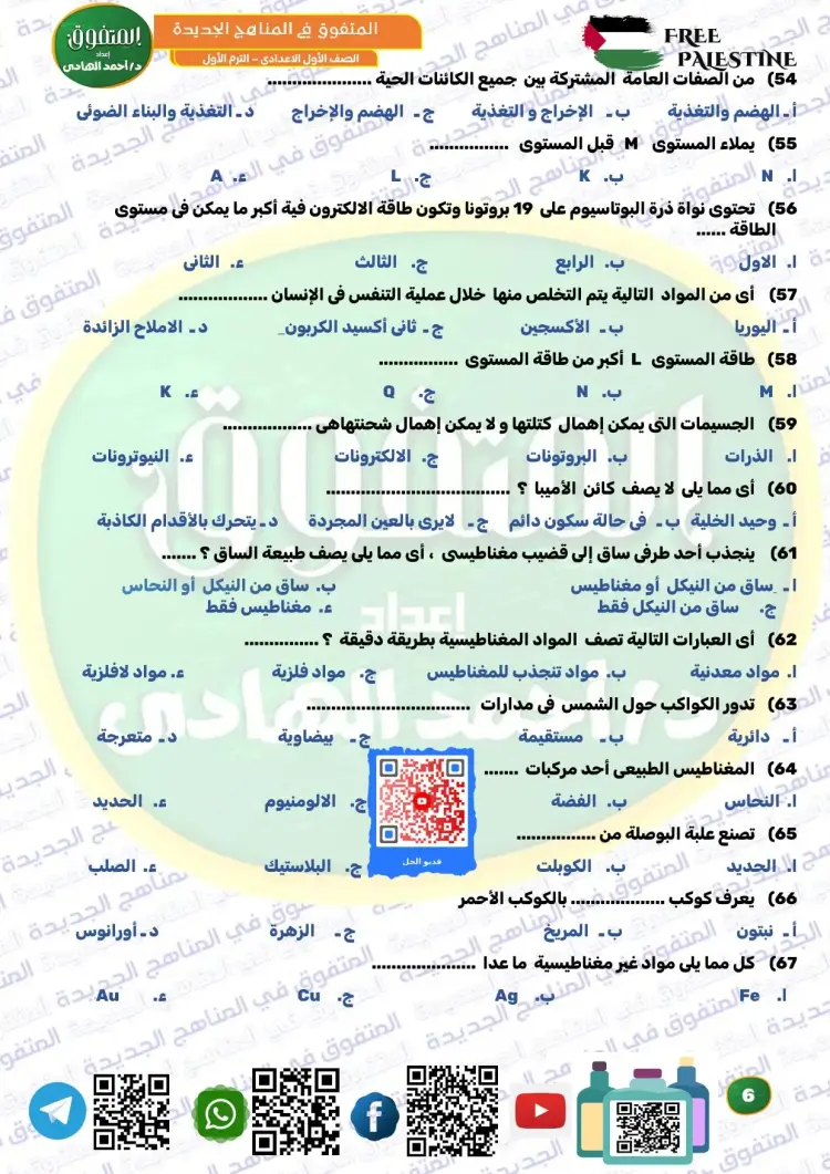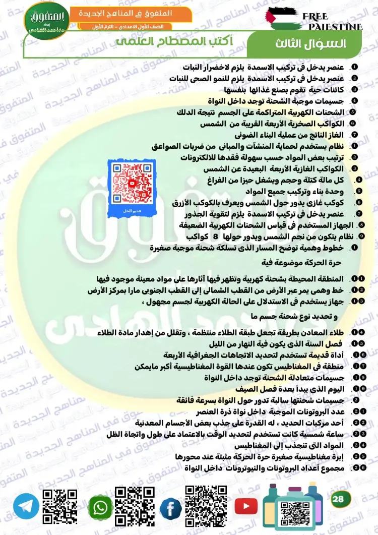 ويوفر المتفوق علوم الصف الأول الإعدادي ترم أول 2026 مراجعة نهائية مجموعة كبيرة ومتنوعة من الأسئلة، من بينها نماذج تدريبية متعددة، تساعد الطلاب على تثبيت المعلومات، وقياس مستوى الفهم، والتدرب على الحل قبل موعد الامتحانات، وكان من بين أسئلة الملف الآتي: