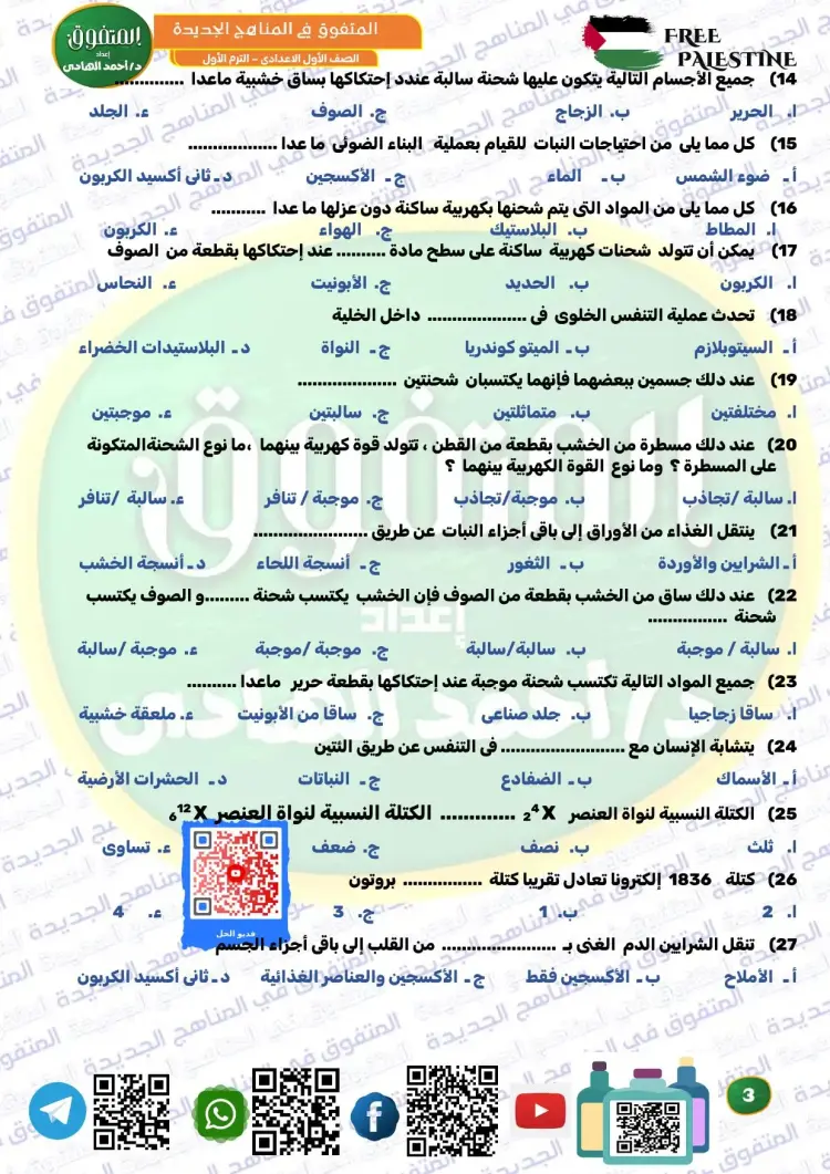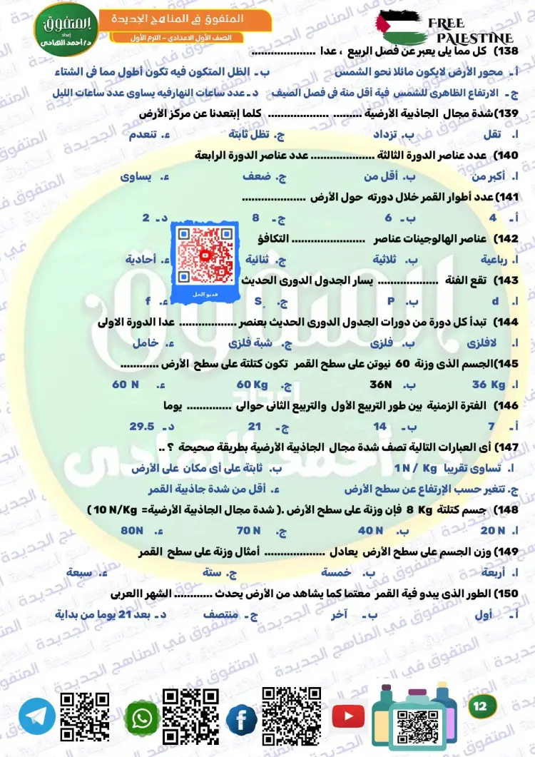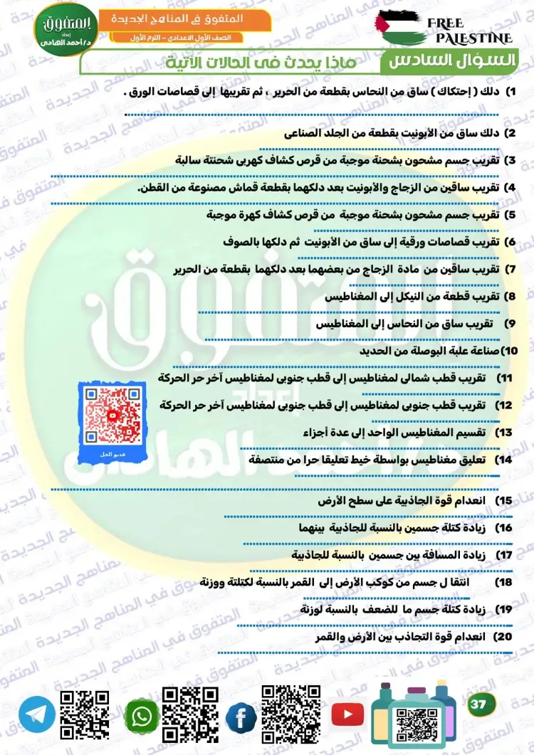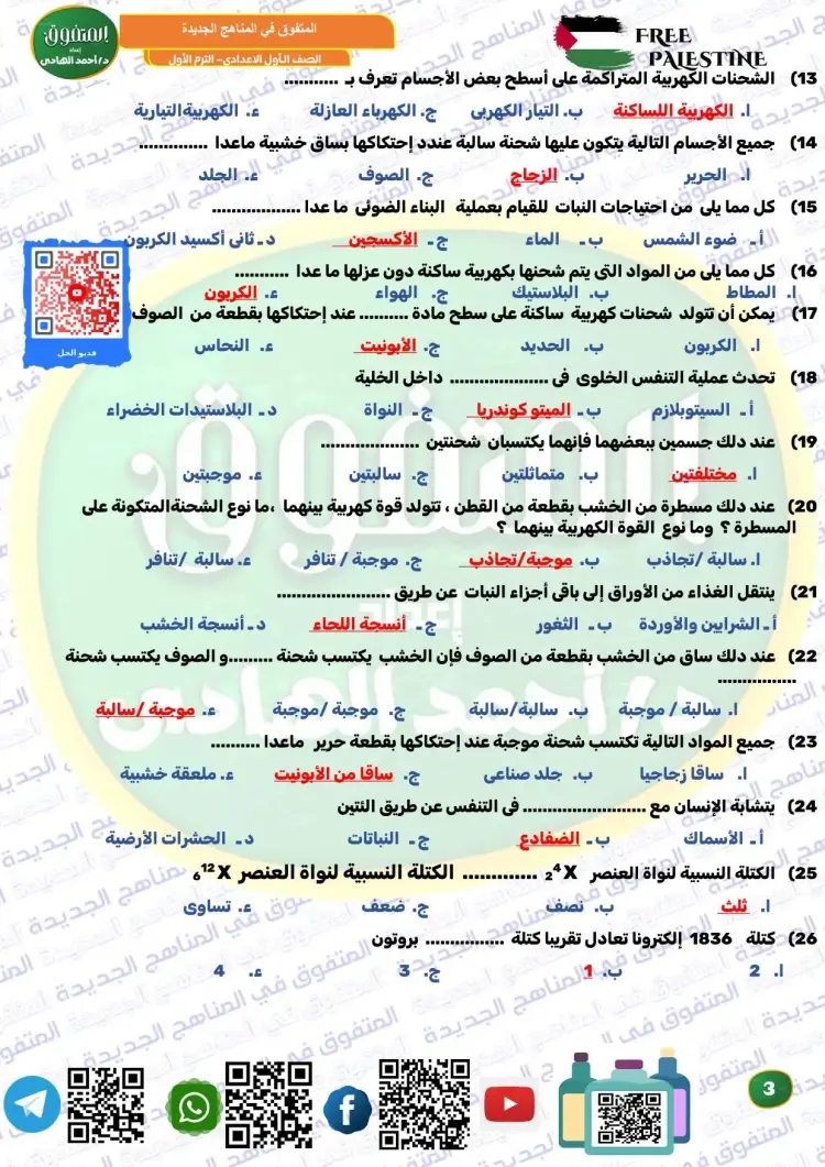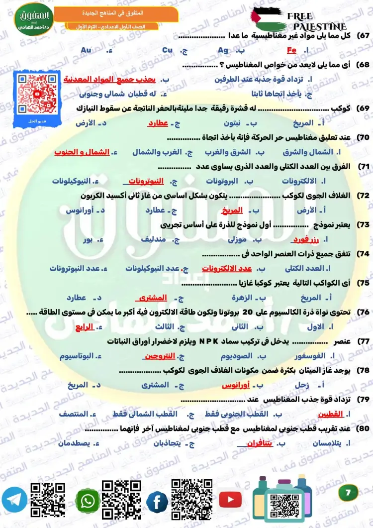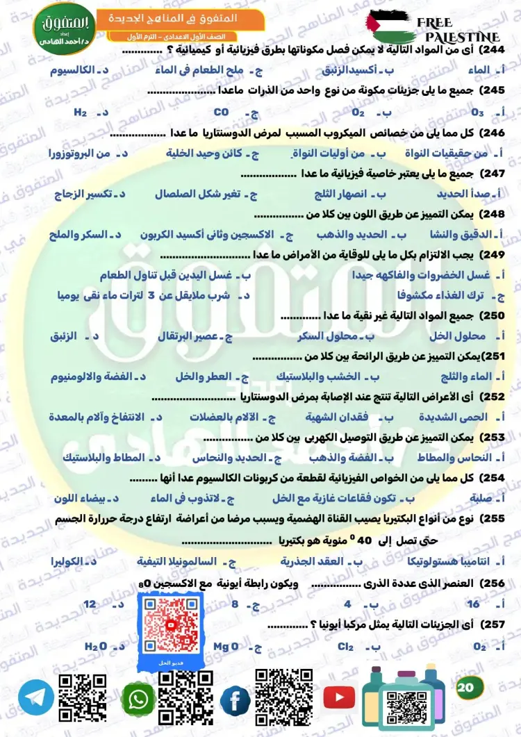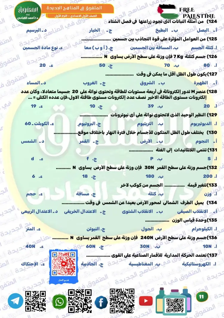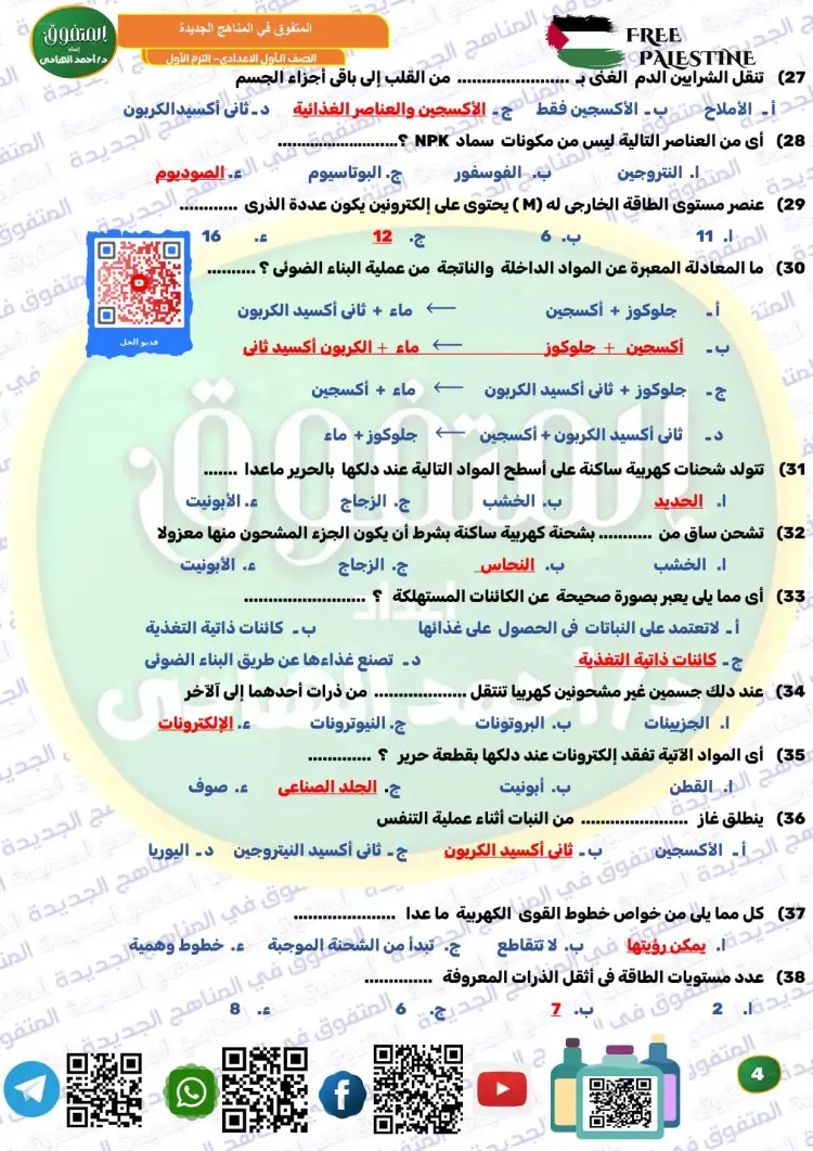 ويوفر المتفوق علوم الصف الأول الإعدادي ترم أول 2026 مراجعة نهائية مجموعة كبيرة ومتنوعة من الأسئلة، من بينها نماذج تدريبية متعددة، تساعد الطلاب على تثبيت المعلومات، وقياس مستوى الفهم، والتدرب على الحل قبل موعد الامتحانات، وكان من بين أسئلة الملف الآتي: