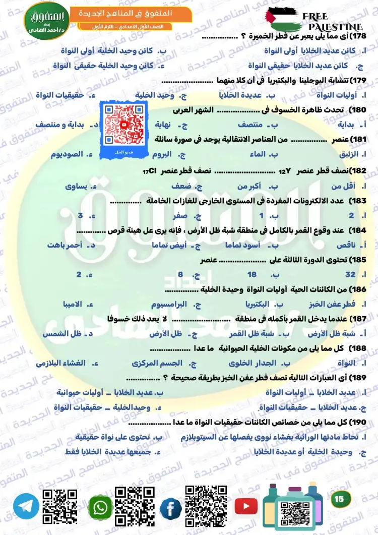 بنك أسئلة المتفوق علوم أولى الإعدادي ترم أول 2026 مراجعة نهائية