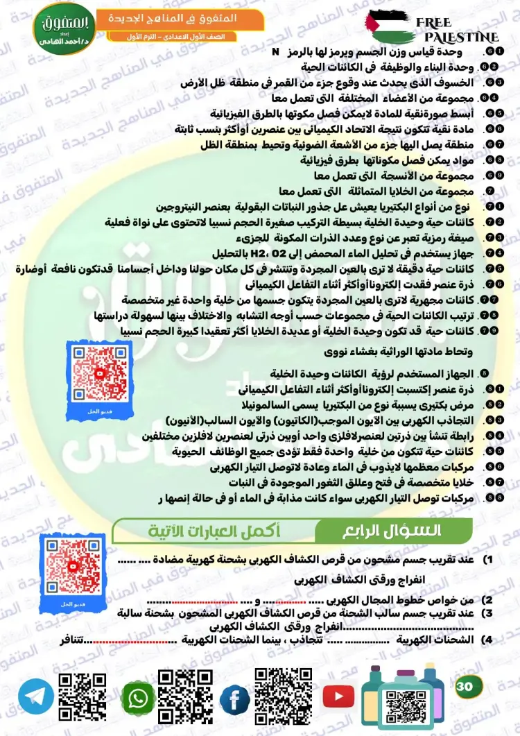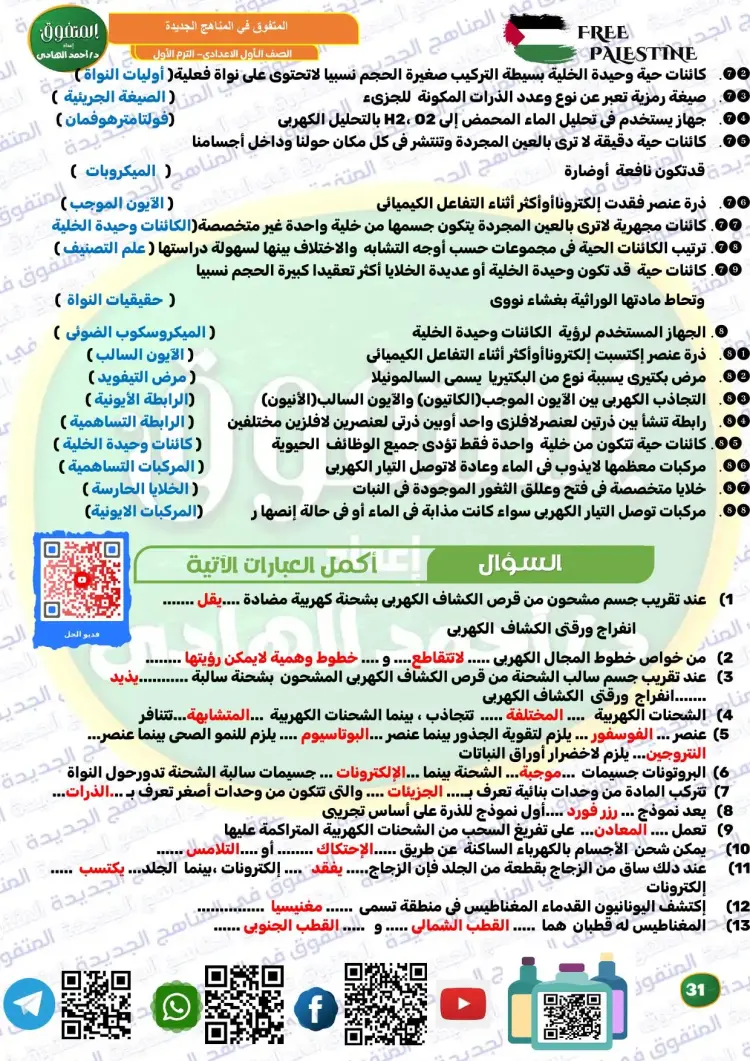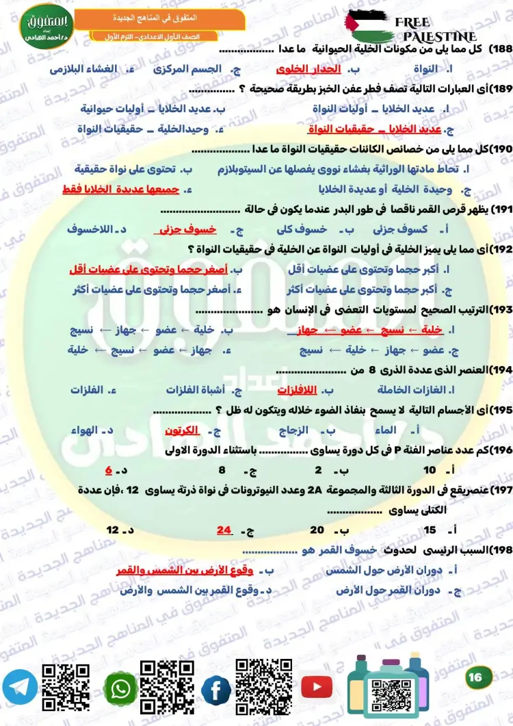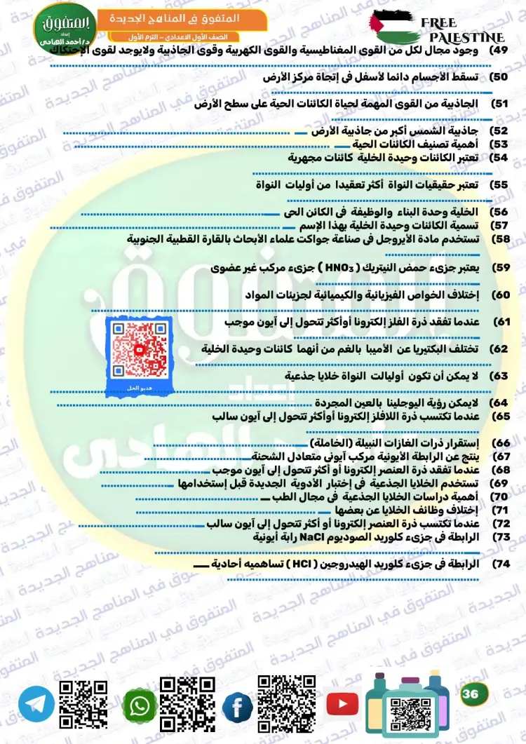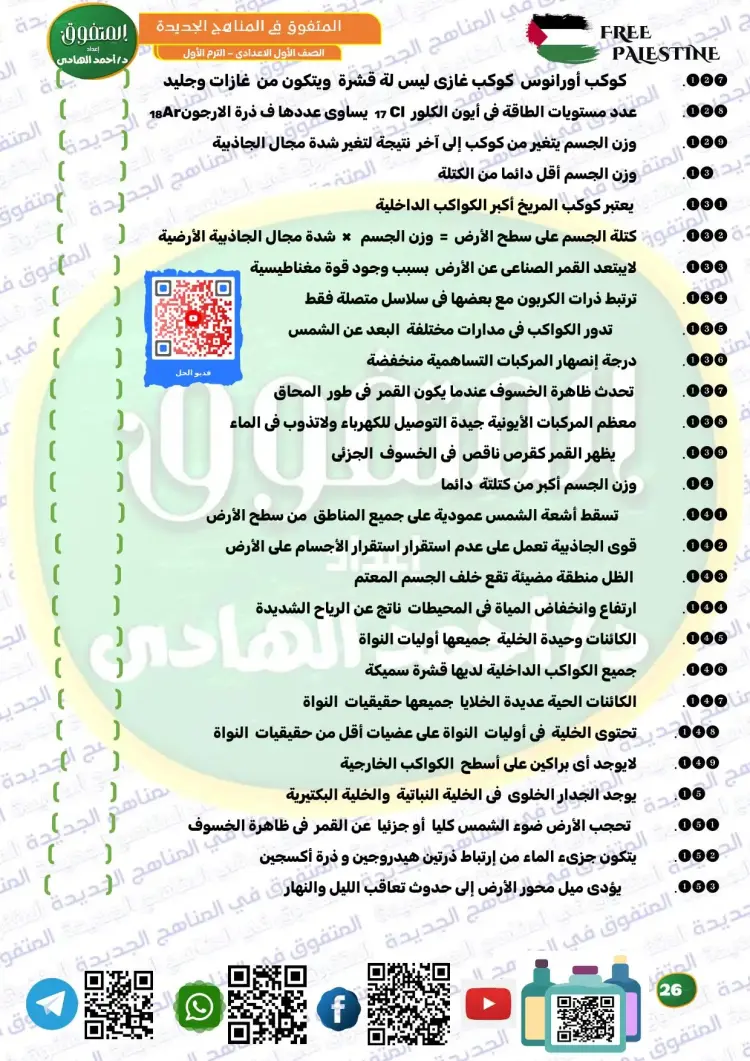 المتفوق علوم الصف الأول الإعدادي ترم أول 2026 مراجعة نهائية