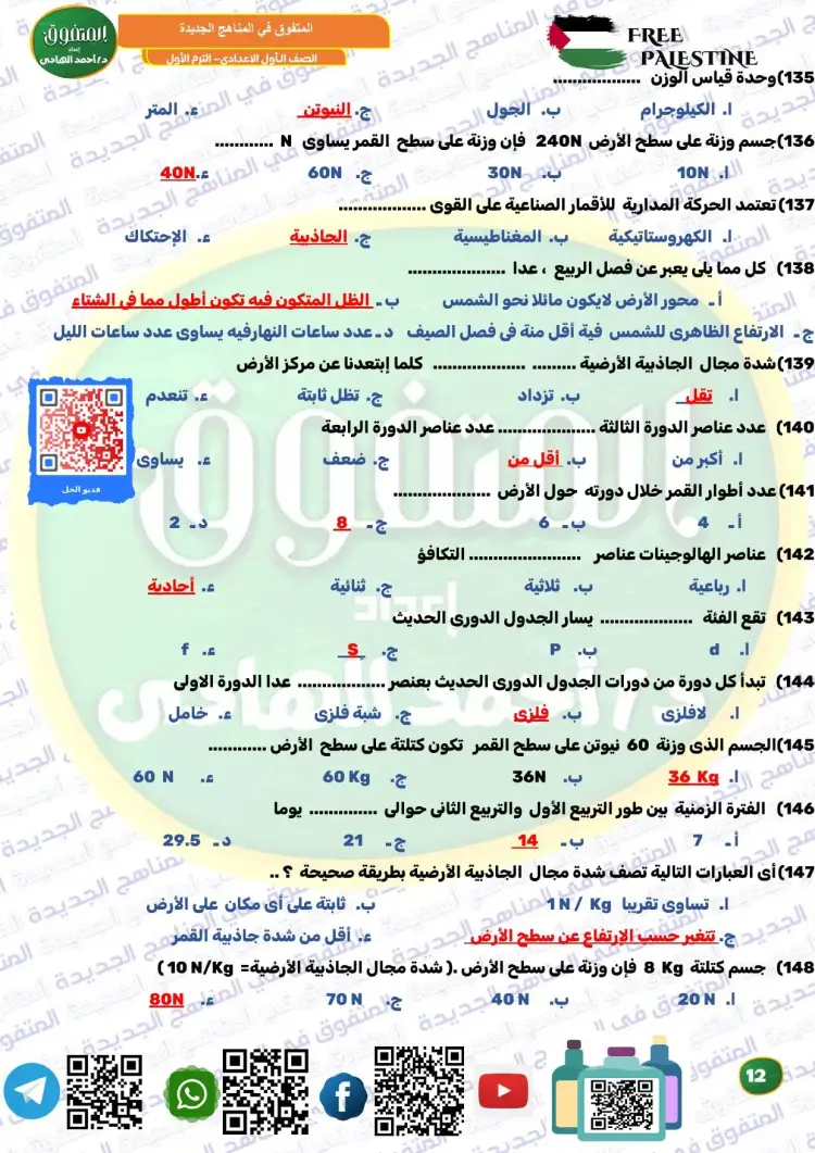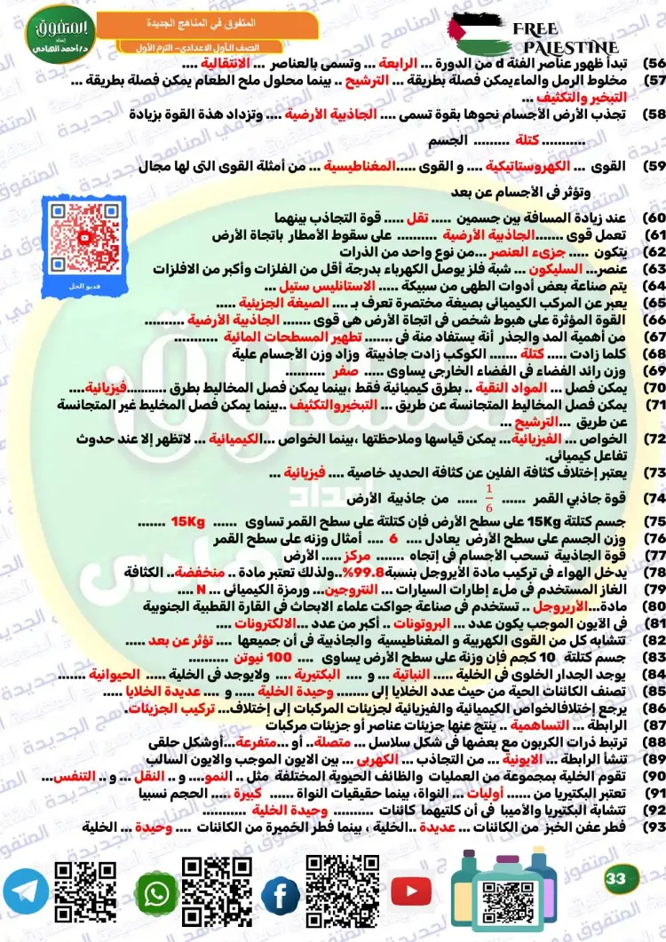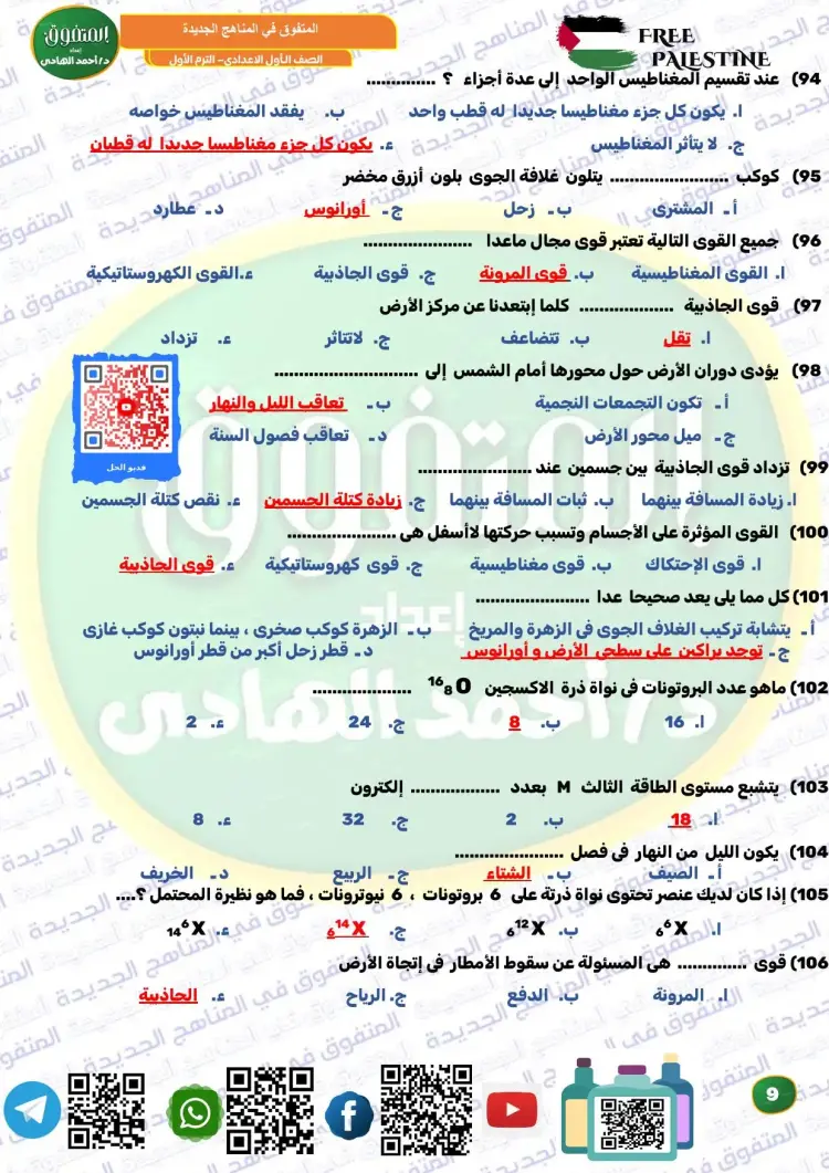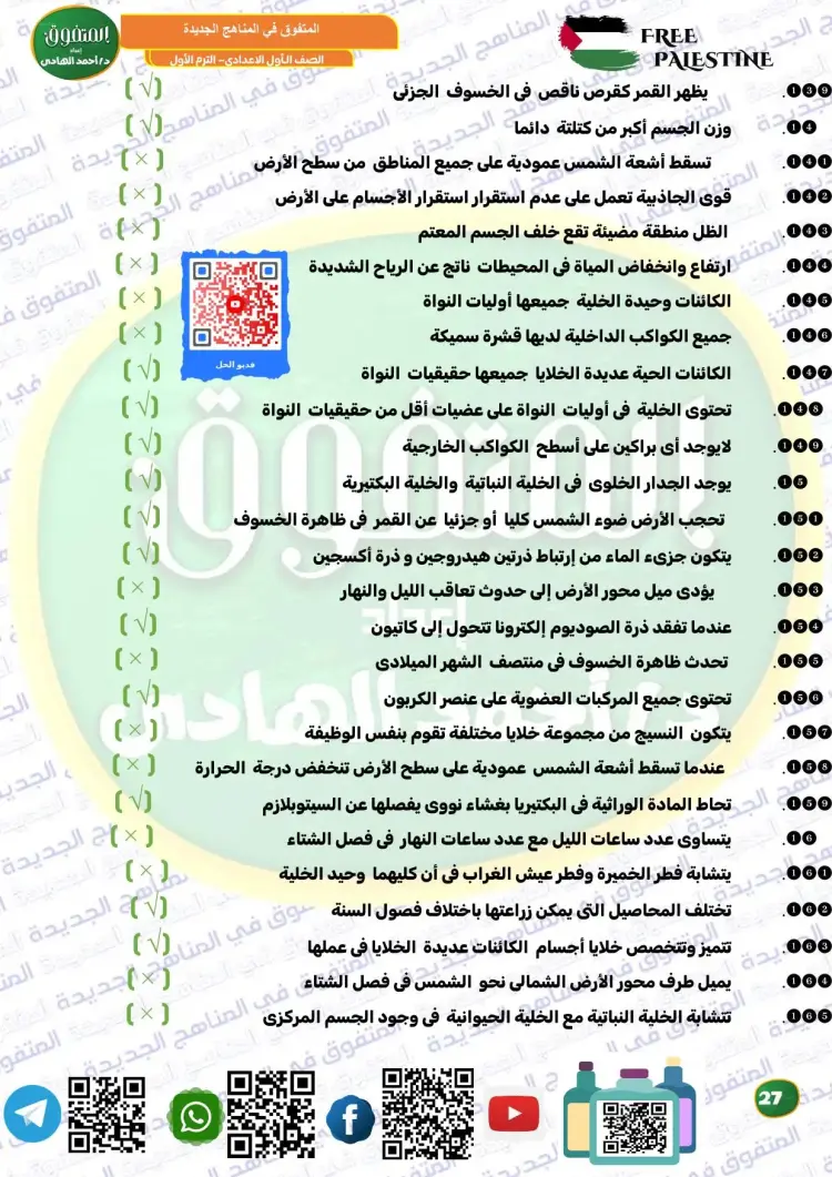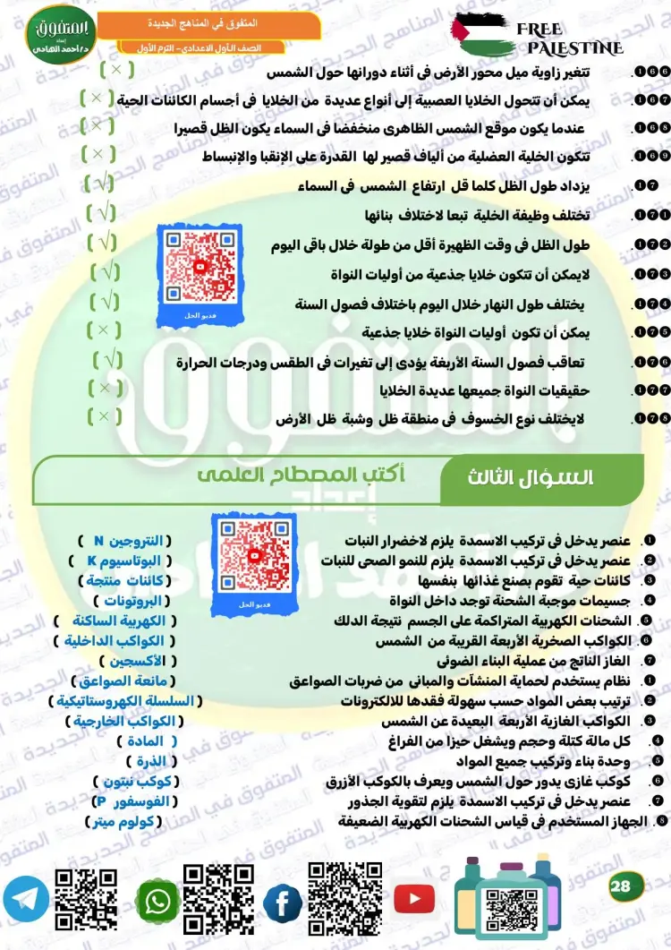 المتفوق علوم الصف الأول الإعدادي ترم أول 2026 مراجعة نهائية