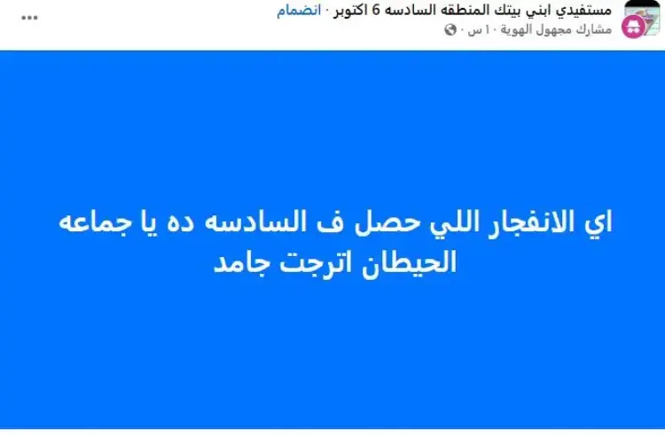 وأكدت غرفة عمليات أكتوبر، أنها لم تتلق أي بلاغات رسمية تفيد بوقوع انفجار أو حوادث طارئة داخل نطاق المدينة أو المناطق المجاورة، مشيرة إلى أن المتابعة الأولية لم تسفر عن تسجيل أي خسائر بشرية أو مادية.