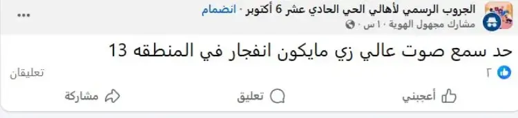 وكشف العديد من سكان كل من منطقة أكتوبر والشيخ زايد عن سماع دوي انفجار في الساعات الأولى من اليوم، صاحبه اهتزاز ملحوظ في بعض العقارات.