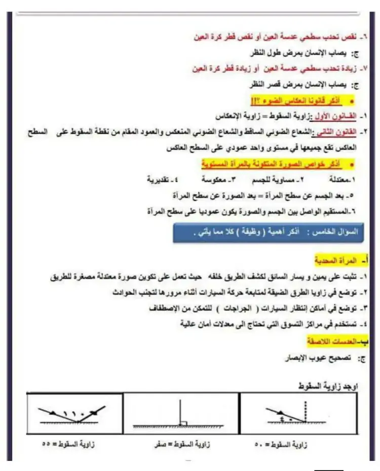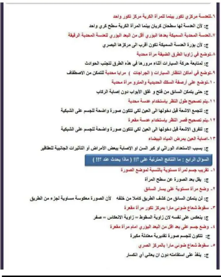 ج: لتفرق الأشعة قبل دخولها إلى العين لكي تتكون صورة واضحة للجسم على الشبكية.