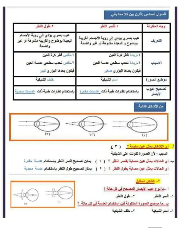 ج: لتجمع الأشعة قبل دخولها إلى العين لكي تتكون صورة واضحة للجسم على الشبكية.