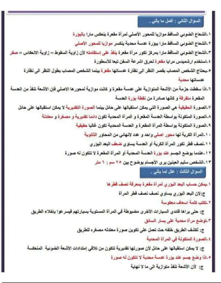 ج: لأن العدسة لها سطحان كريان بينما المرآة الكرية سطح كري واحد.