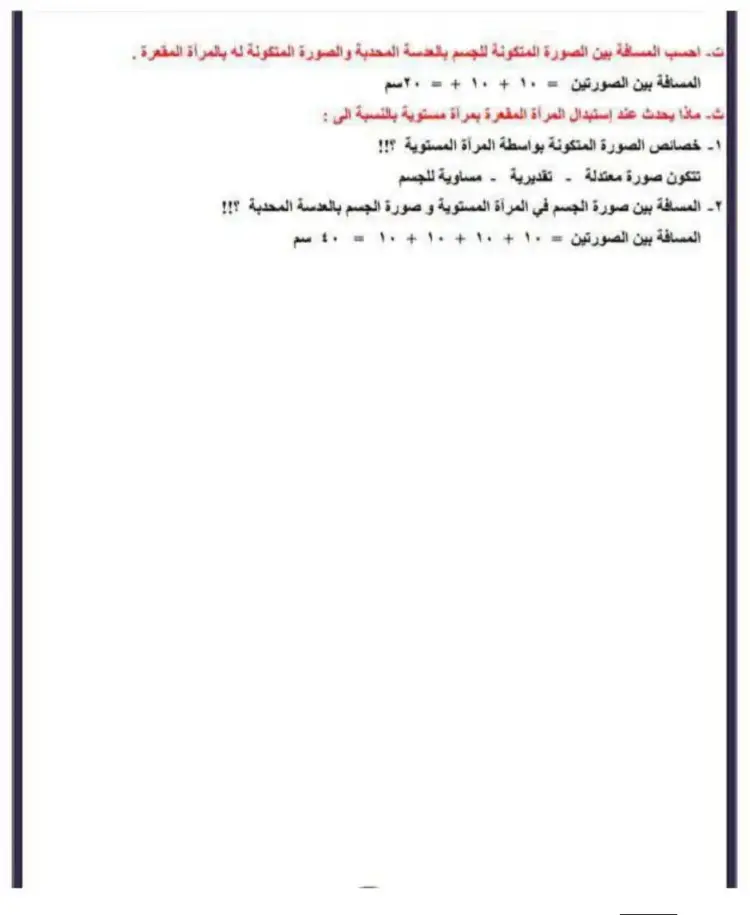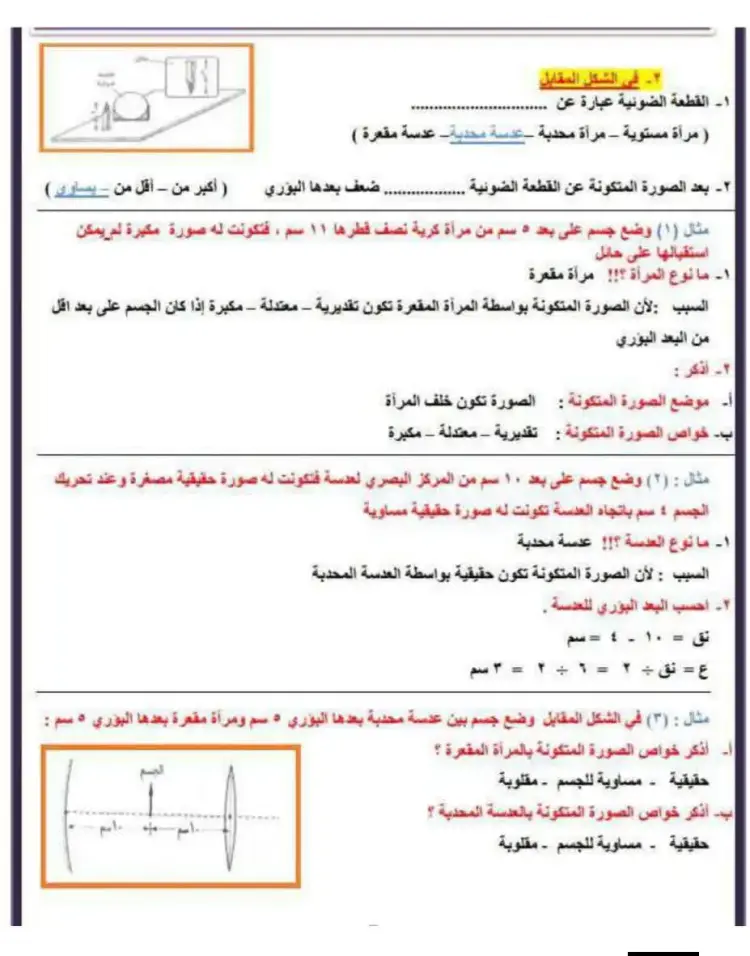 الصورة المتكونة بواسطة العدسة المقعرة والمرآة المحدبة تكون دائماً تقديرية ومصغرة ومعتدلة.