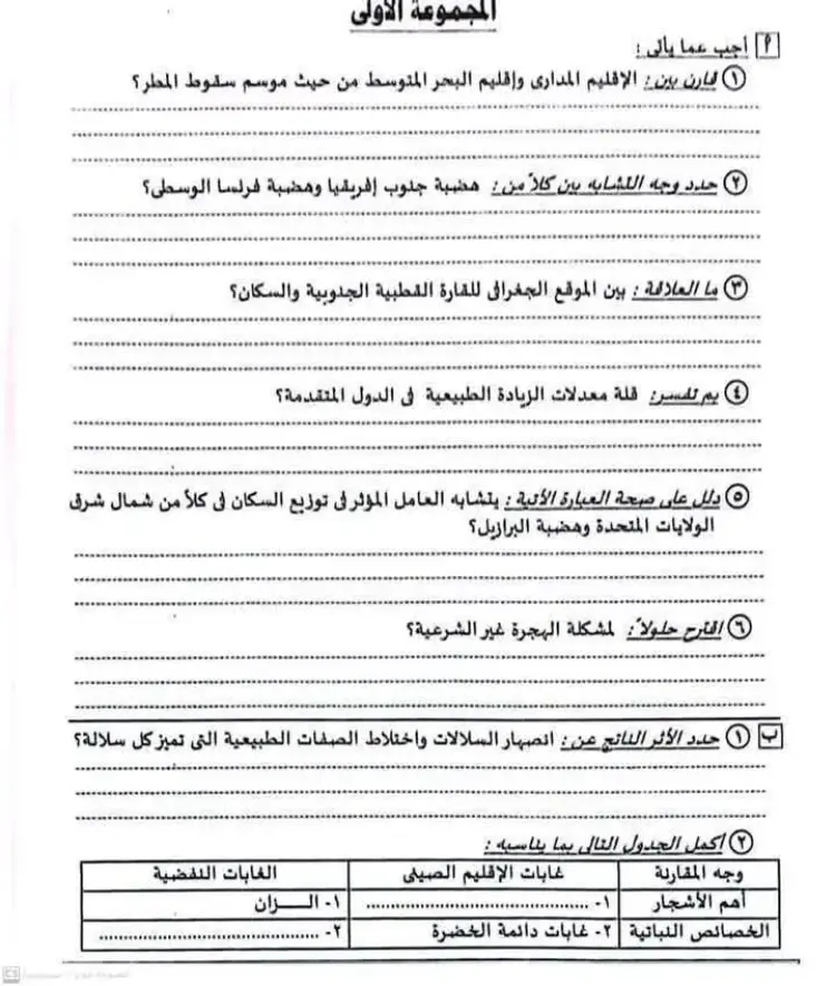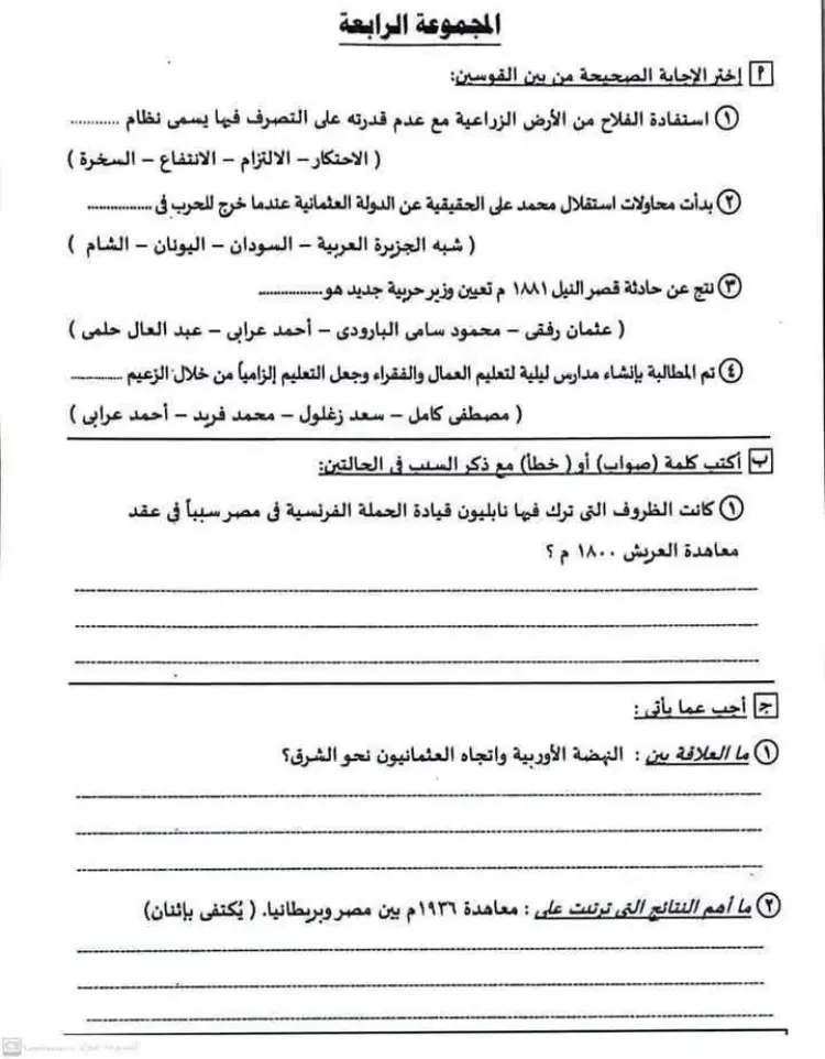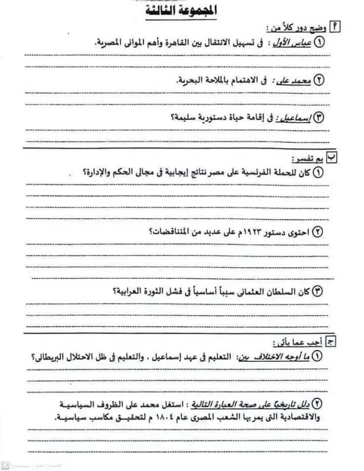 نموذج امتحان دراسات الصف الثالث الاعدادي مارس 2025