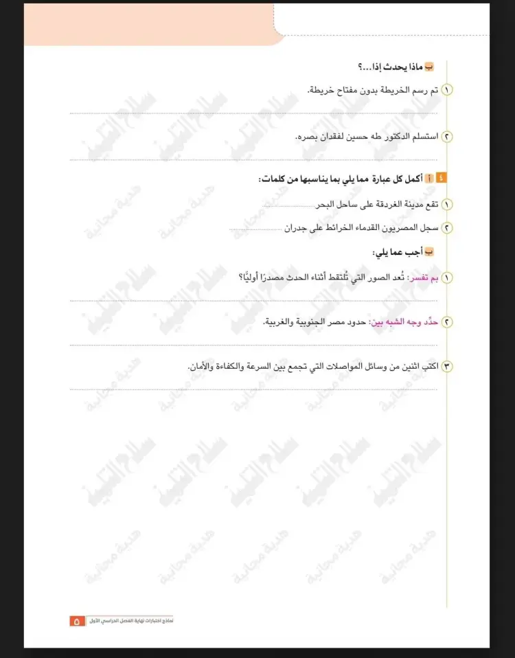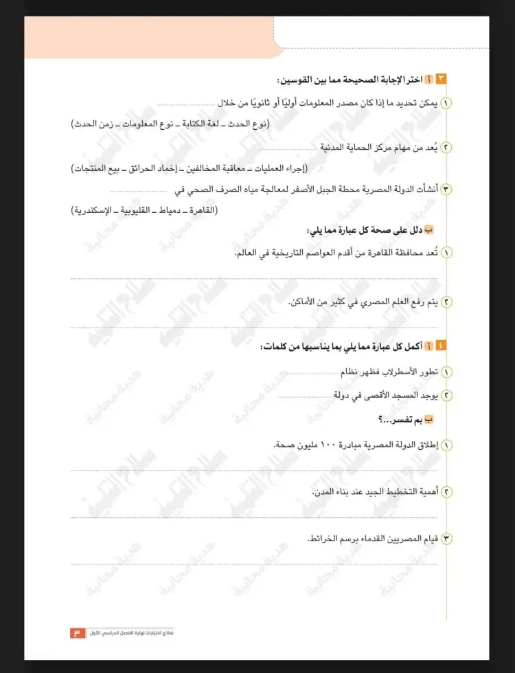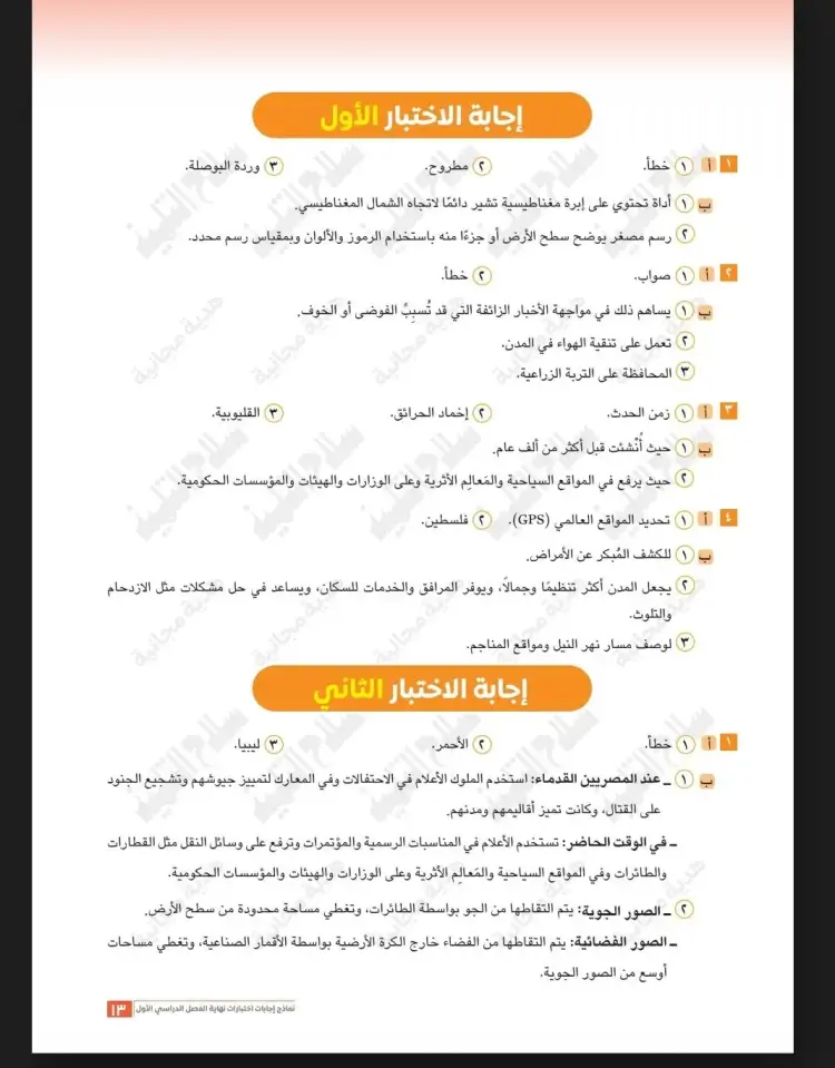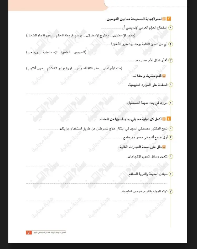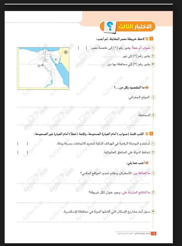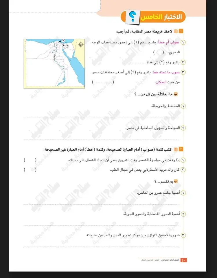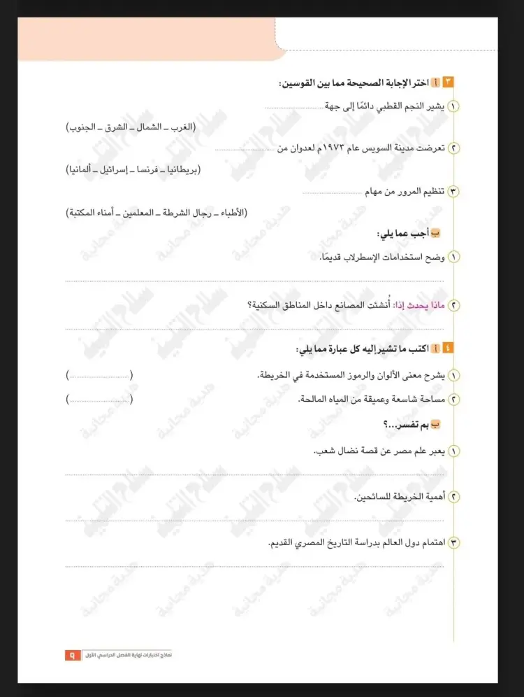 جاءت أسئلة نماذج امتحانات سلاح التلميذ رابعة ابتدائي دراسات الترم الأول 2026 بالإجابات على النحو التالي: