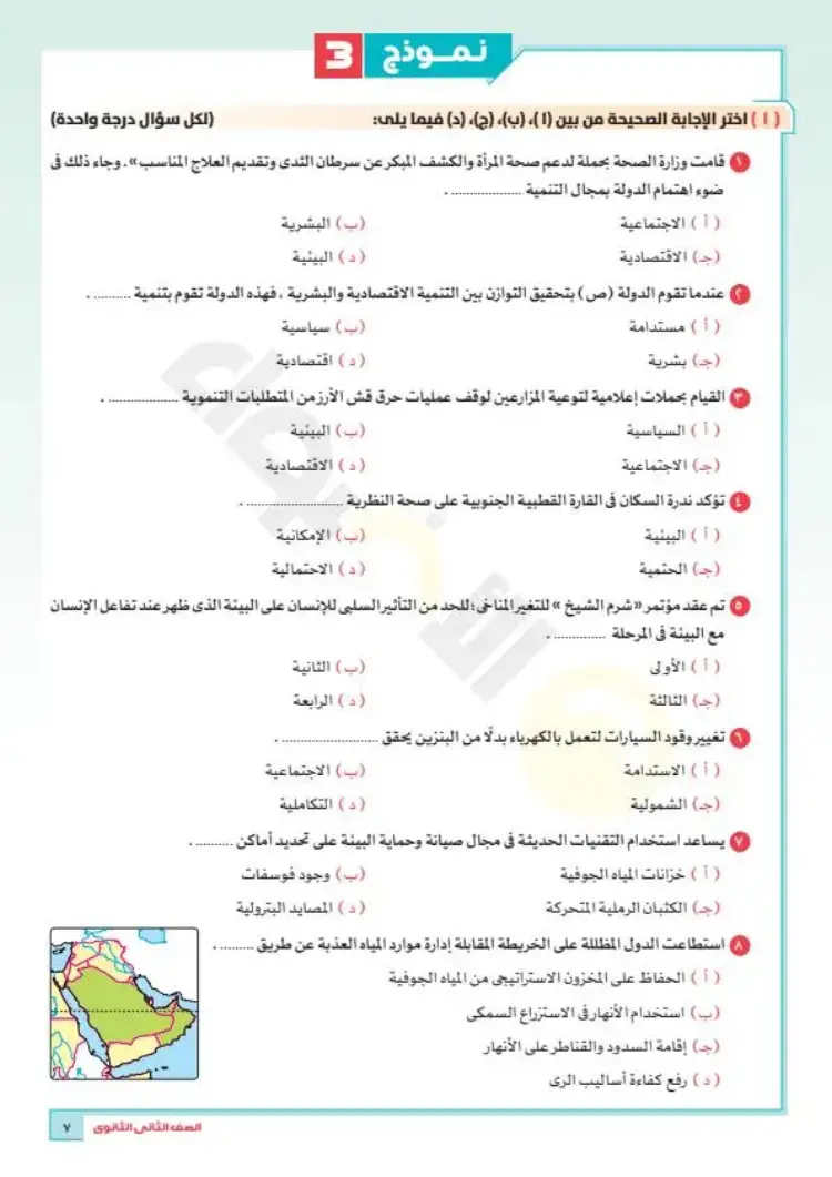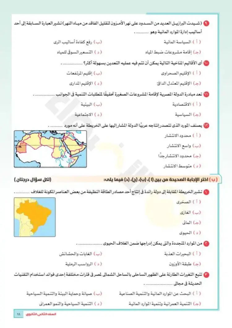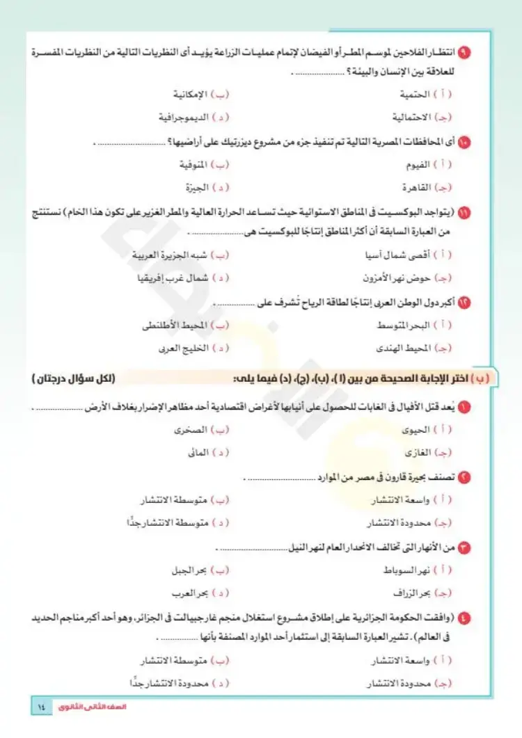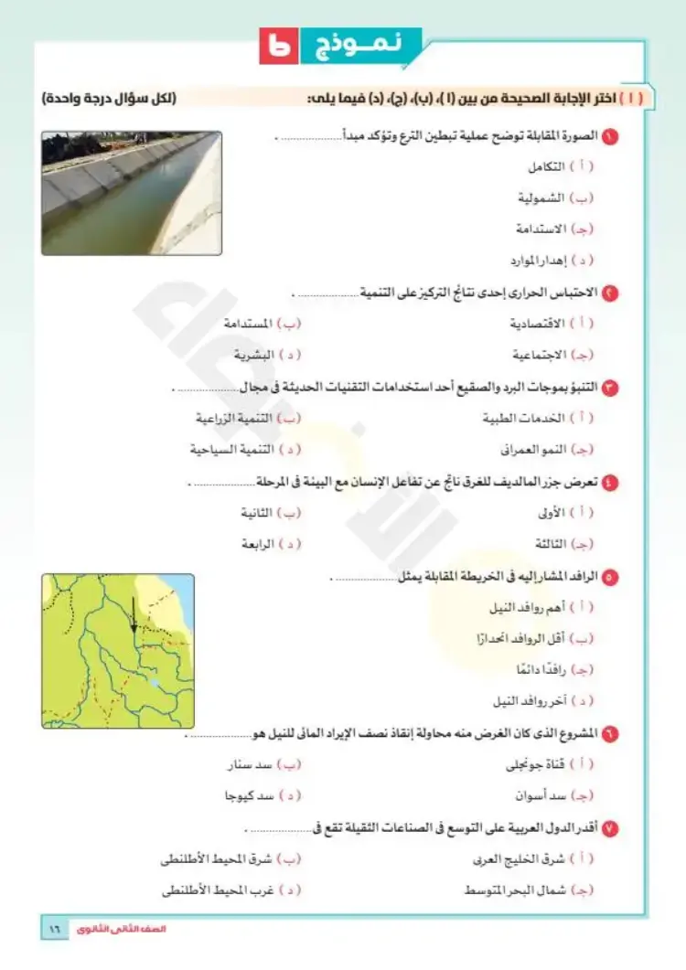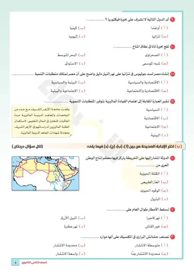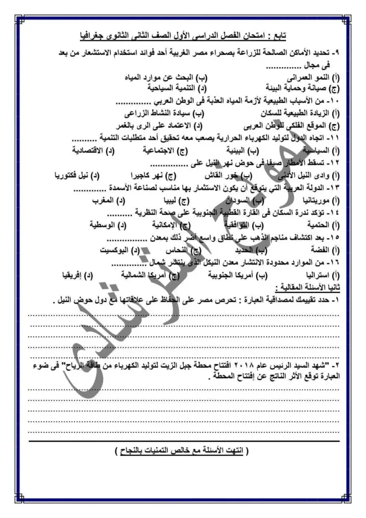 نماذج امتحانات جغرافيا تانية ثانوي ترم أول 2026