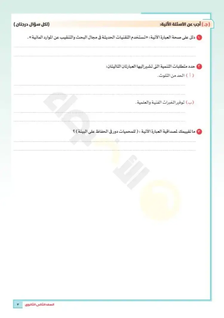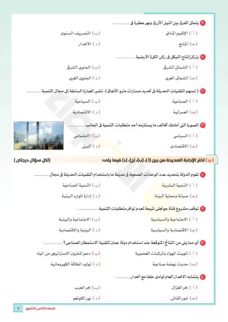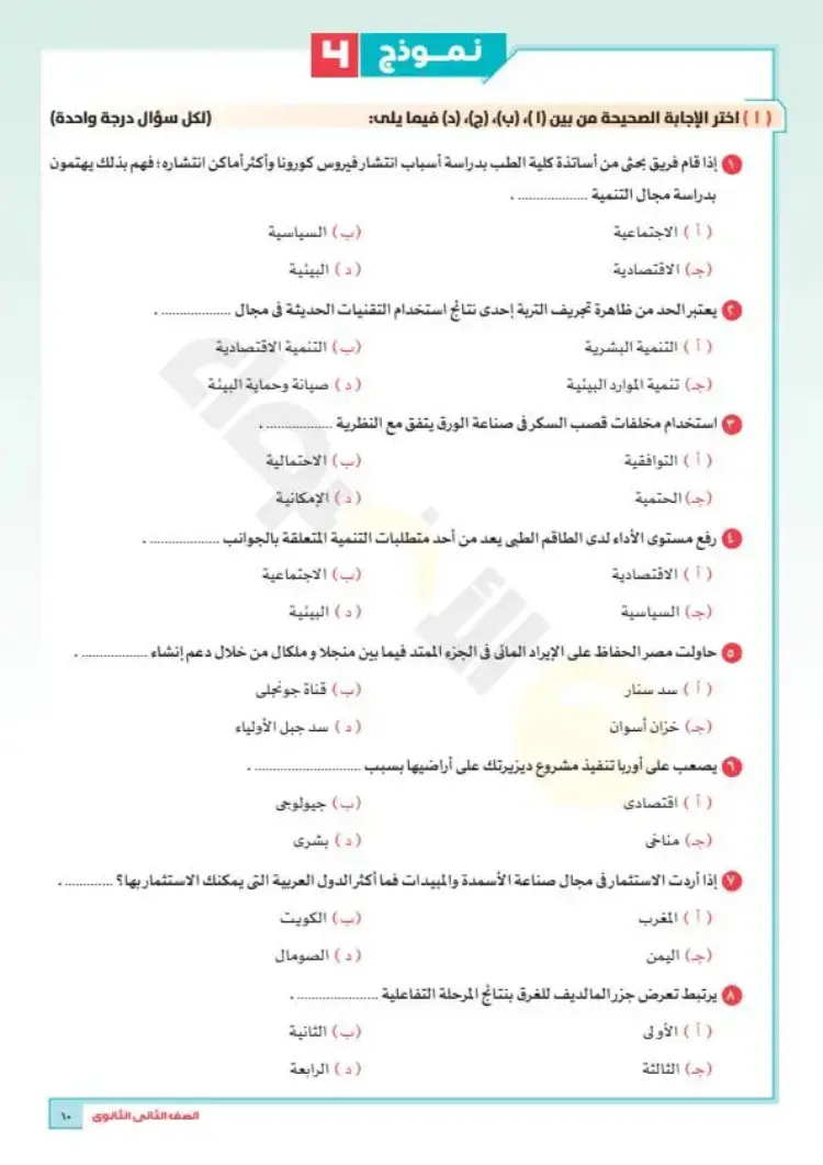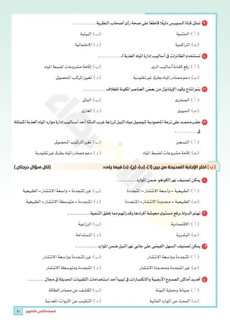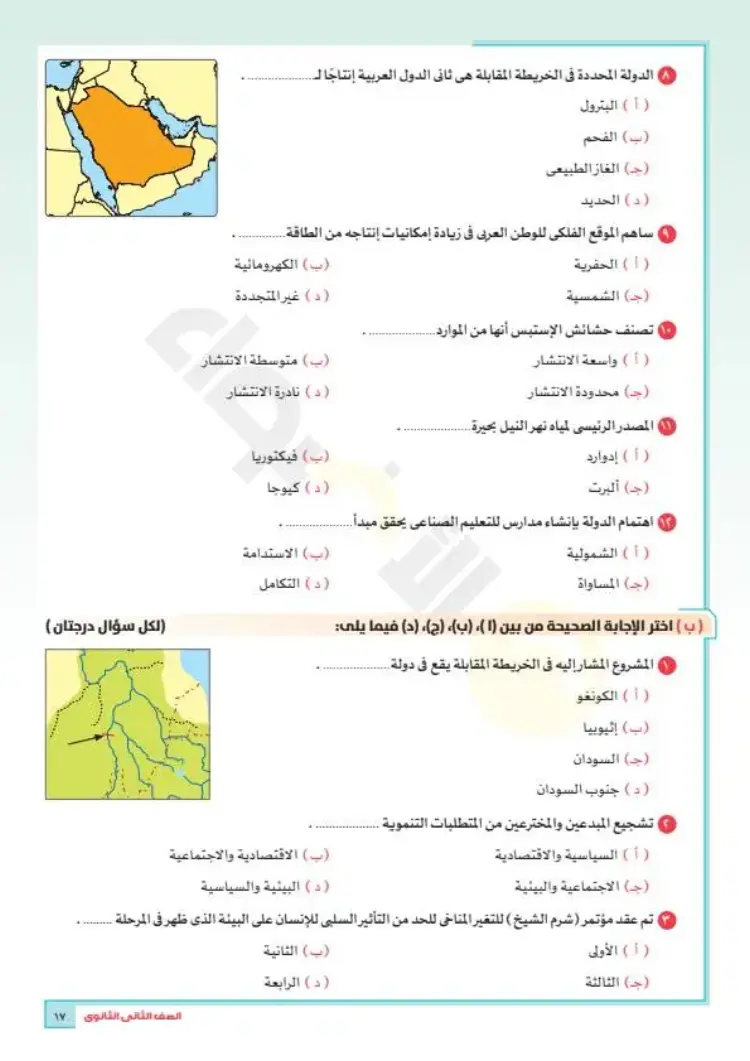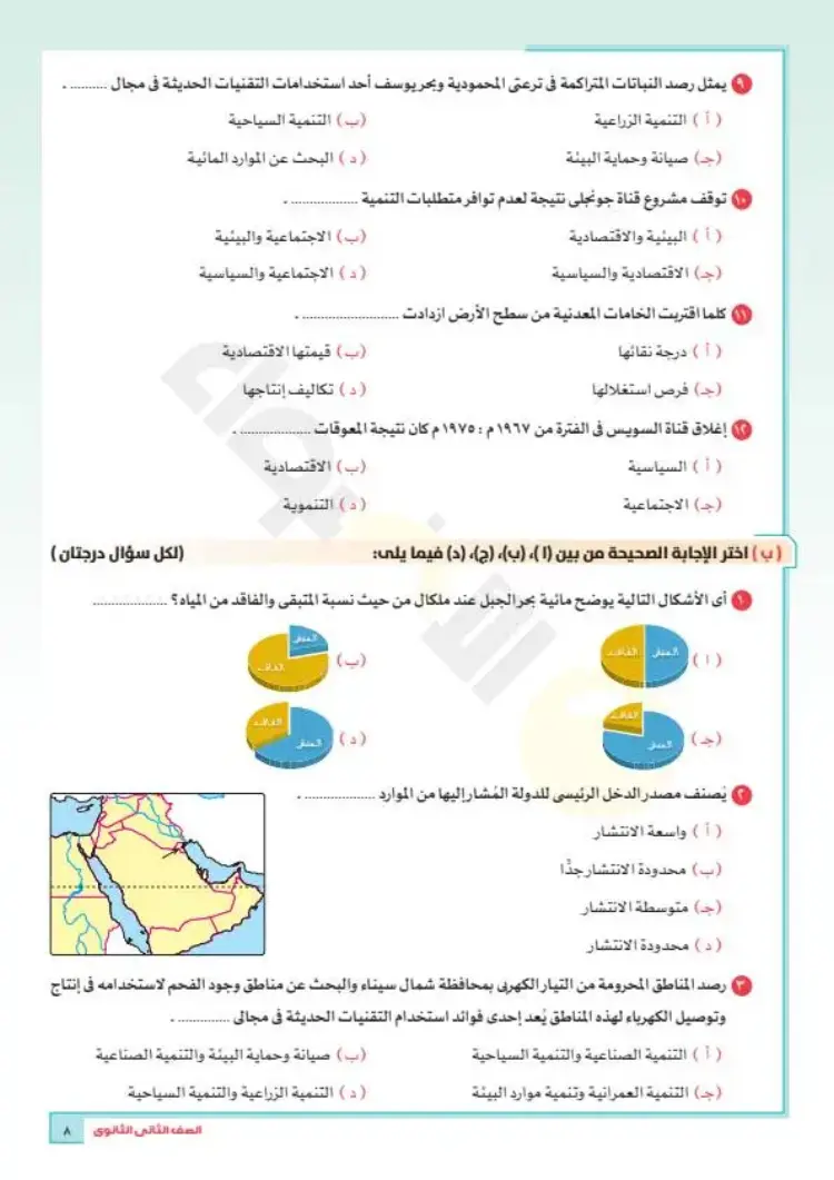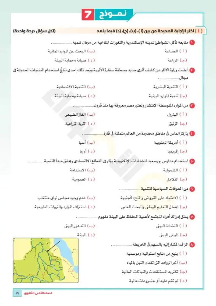نماذج امتحانات جغرافيا تانية ثانوي ترم أول 2026