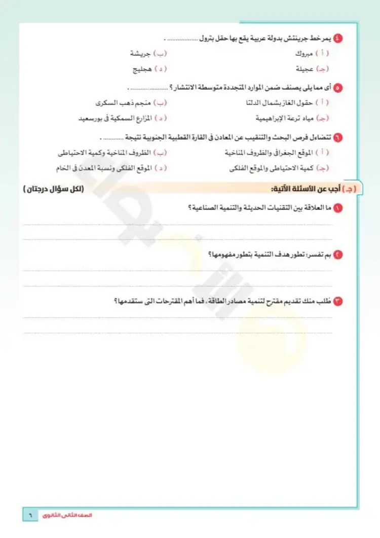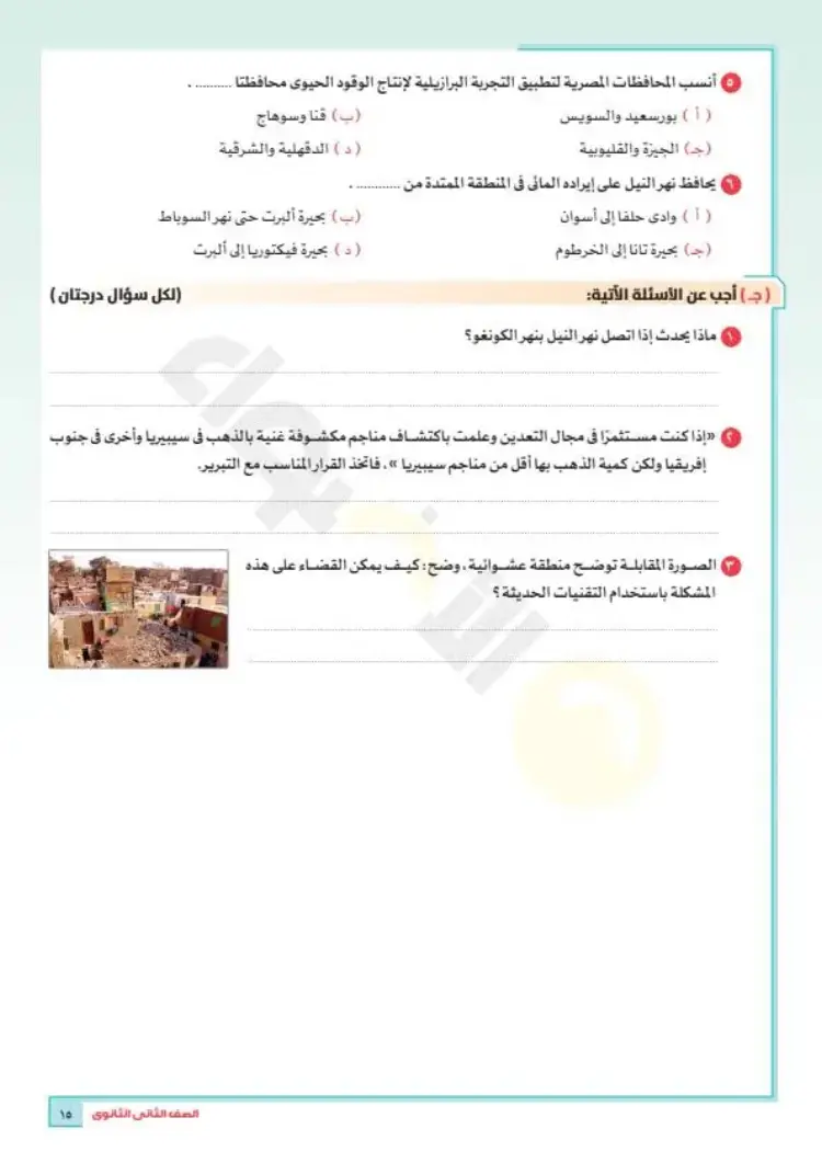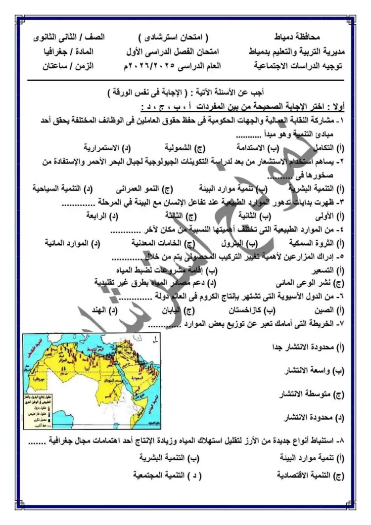 امتحان الجغرافيا الاسترشادي للصف الثاني الثانوي الفصل الدراسي الأول لمحافظة دمياط: