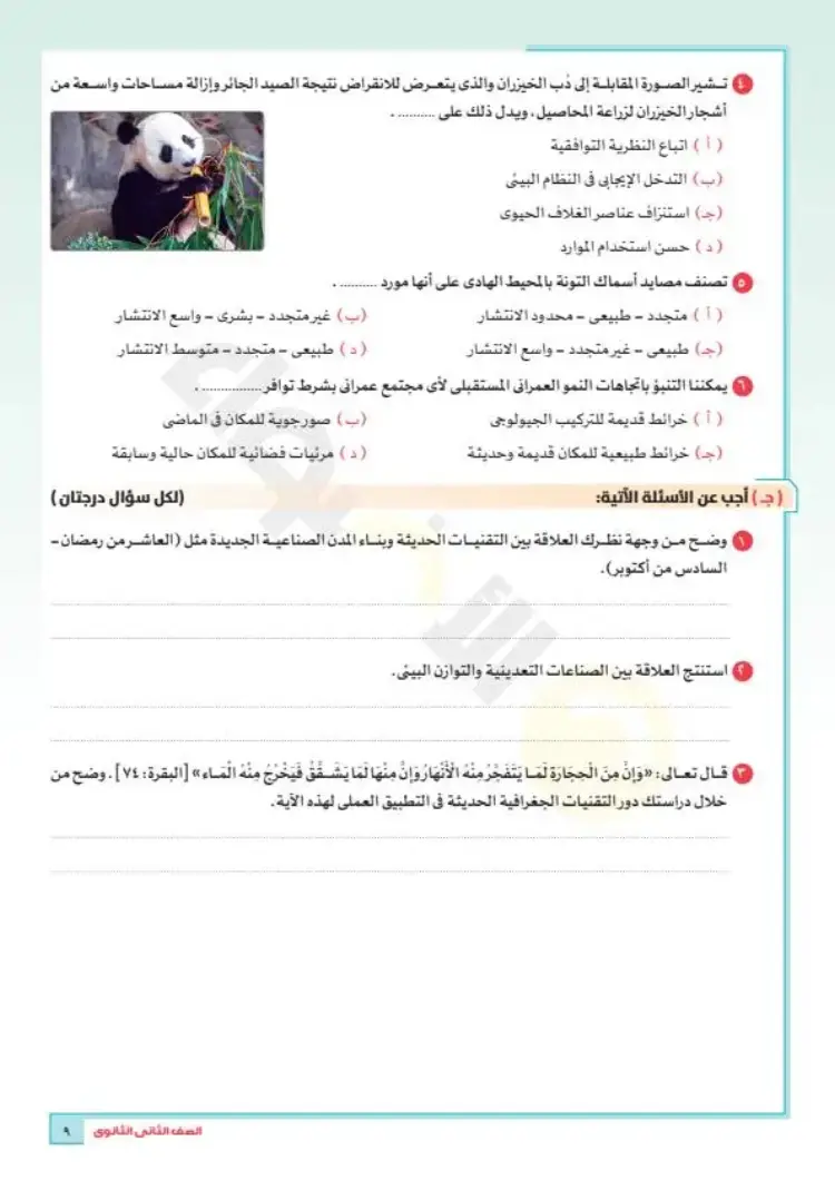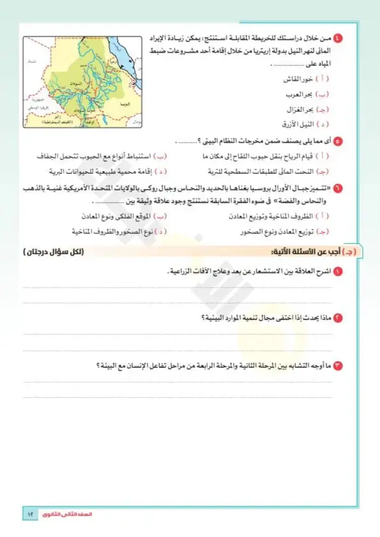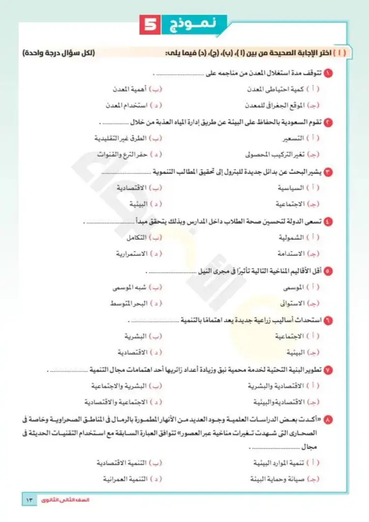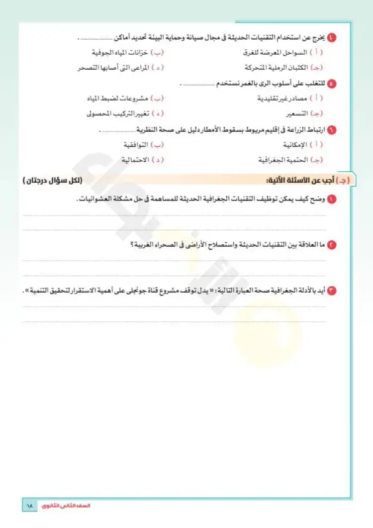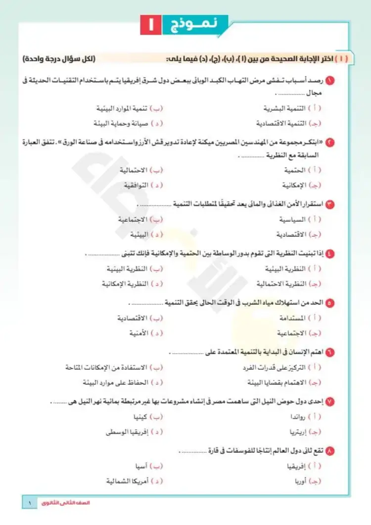 النماذج الاسترشادية للصف الثاني الثانوي 2026 جغرافيا الترم الأول